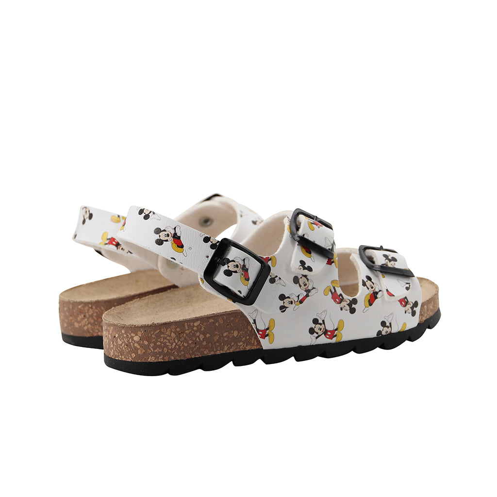 A sunny-day staple with Disney charm, these white sandals feature an all-over Mickey Mouse print and adjustable double buckle straps for a secure fit. The cork-style footbed and textured sole offer comfort and grip, while the ankle strap adds extra support for active little feet. Perfect for warm-weather adventures with a playful twist.