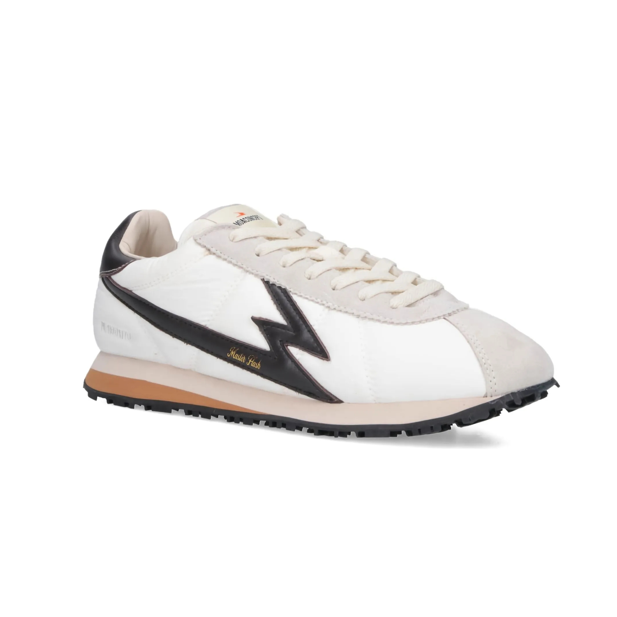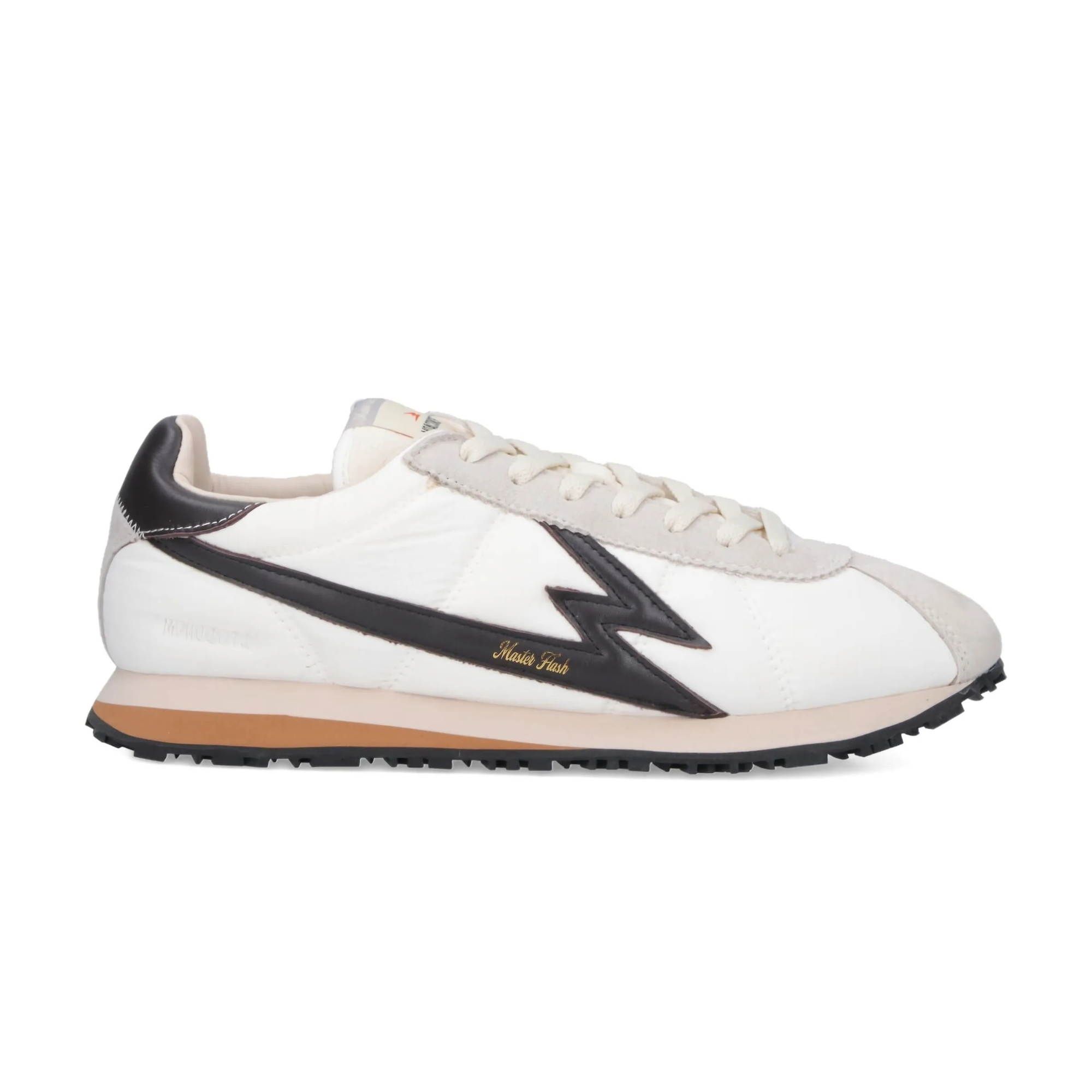 A dynamic blend of vintage styling and graphic edge, these white sneakers feature a bold black lightning bolt and gold “Master of Arts” branding for standout appeal. The layered sole and suede toe cap nod to retro running silhouettes, while the cushioned interior and textured outsole ensure comfort and grip. Perfect for everyday wear with a fashion-forward twist.