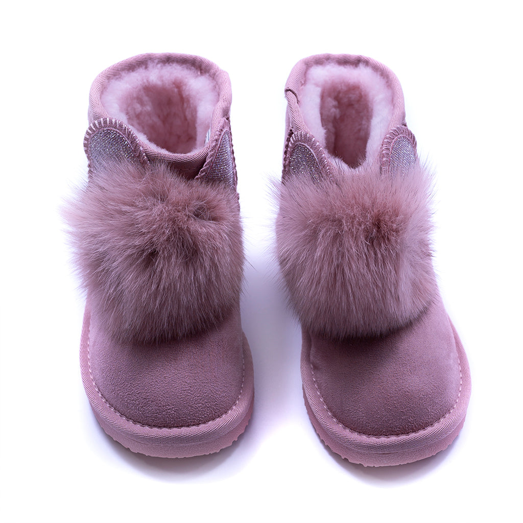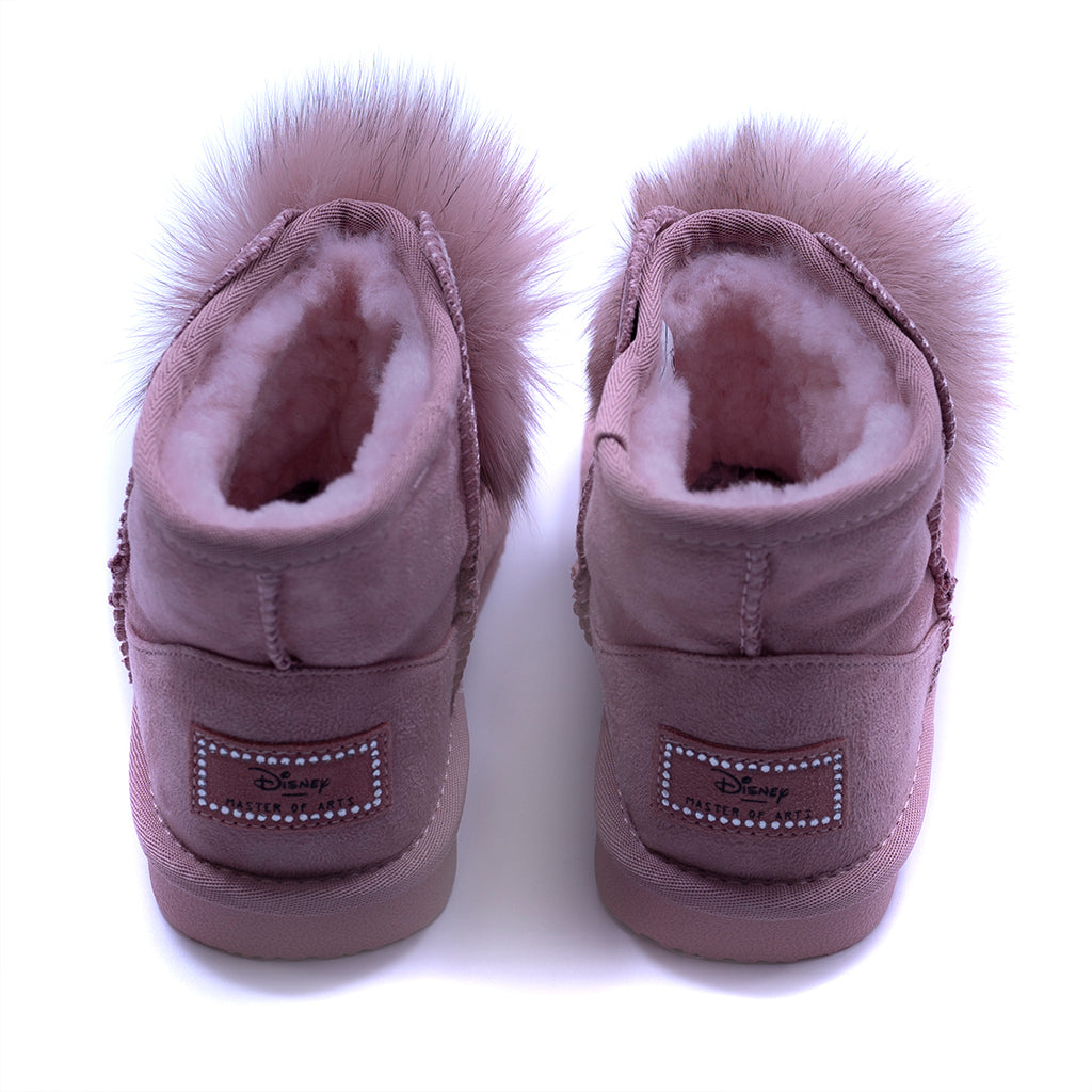 Soft, snug, and irresistibly charming, these pale pink boots are designed for winter adventures with a touch of sparkle. Featuring plush faux fur lining and oversized pom-poms at the front, they’re finished with glittery butterfly appliqués for a whimsical flourish. The sturdy rubber sole ensures grip and durability, making them perfect for chilly days and festive outings.