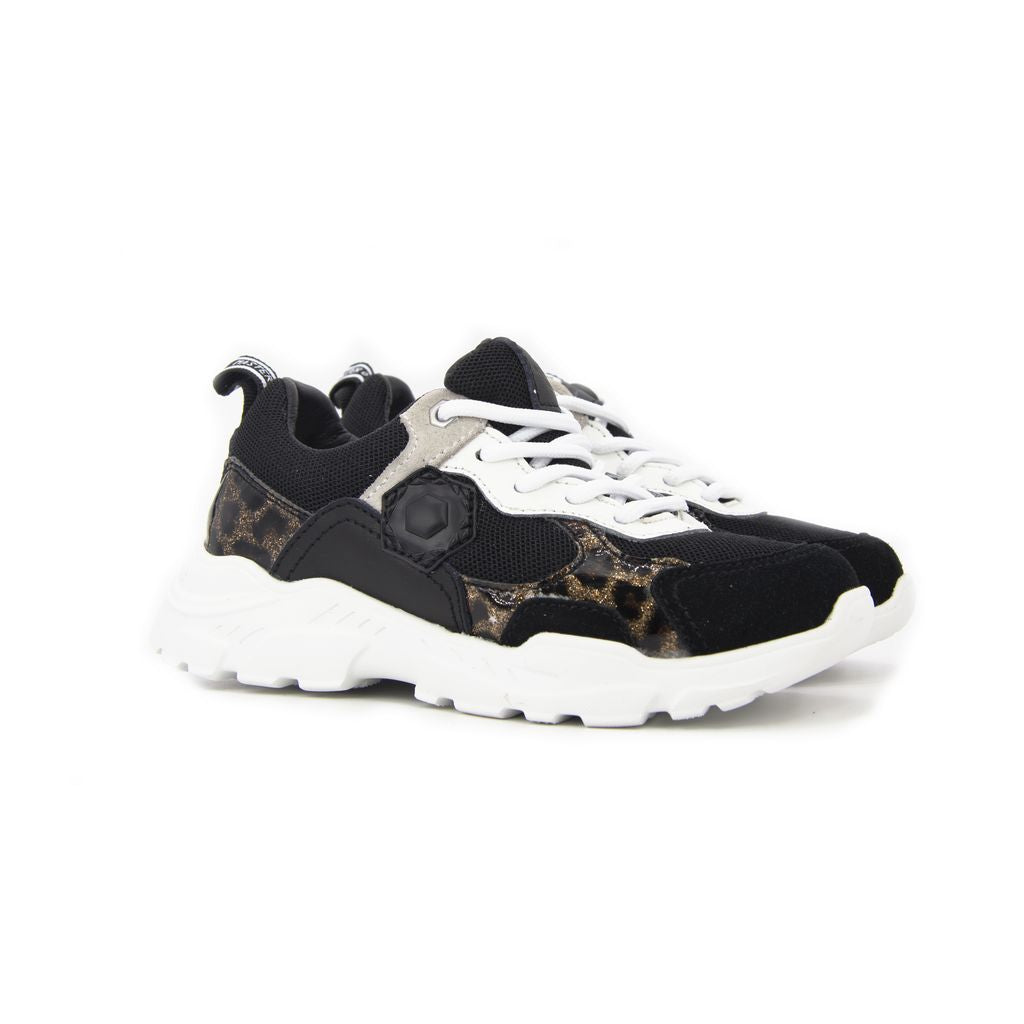 A statement sneaker with streetwise edge, this lace-up pair features a black upper accented by marbled side panels and crisp white laces. The chunky sole and hexagonal logo patch add a graphic punch, while the pull tabs ensure easy on-off wear. Designed for comfort and impact, they’re perfect for active days and expressive styling.
