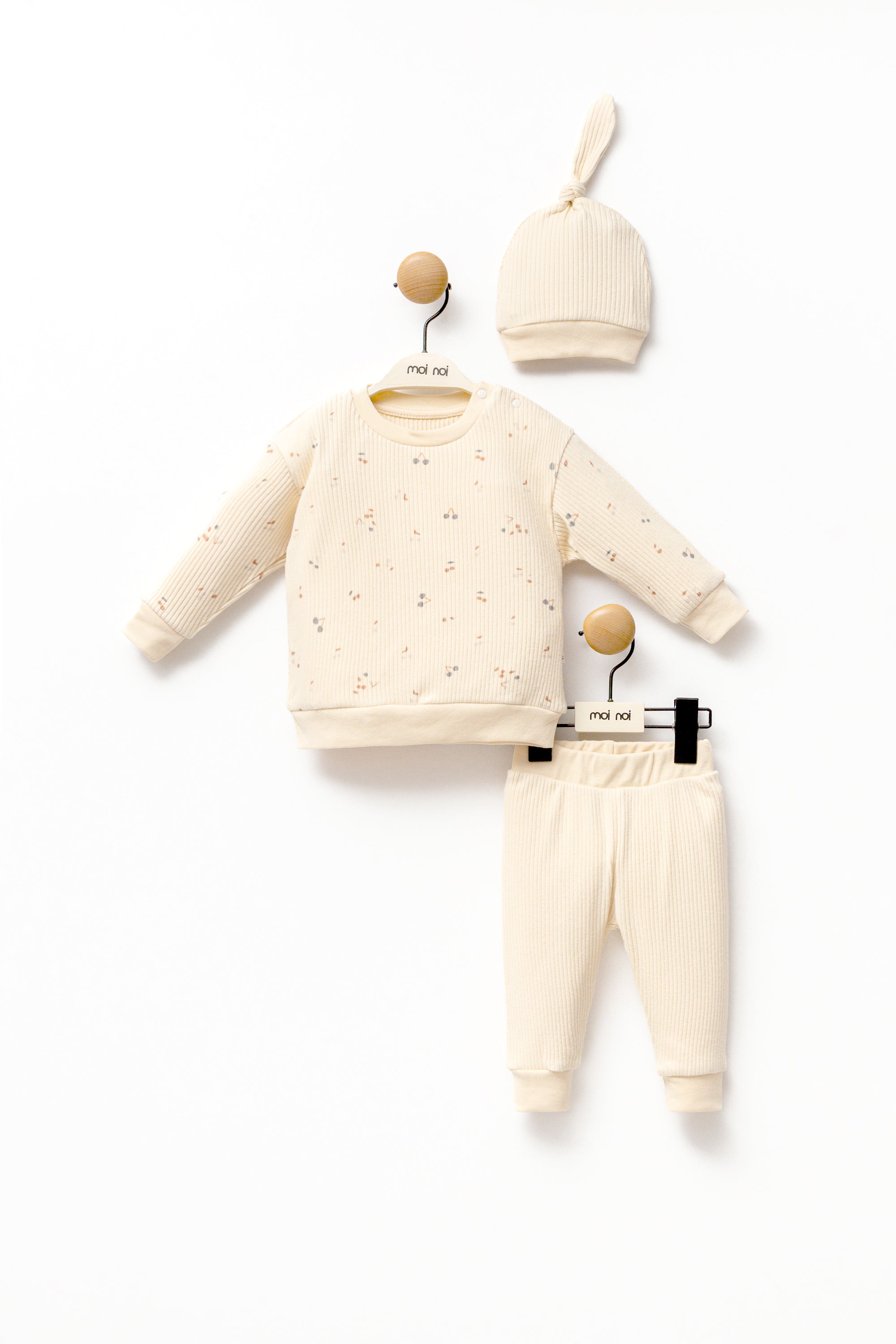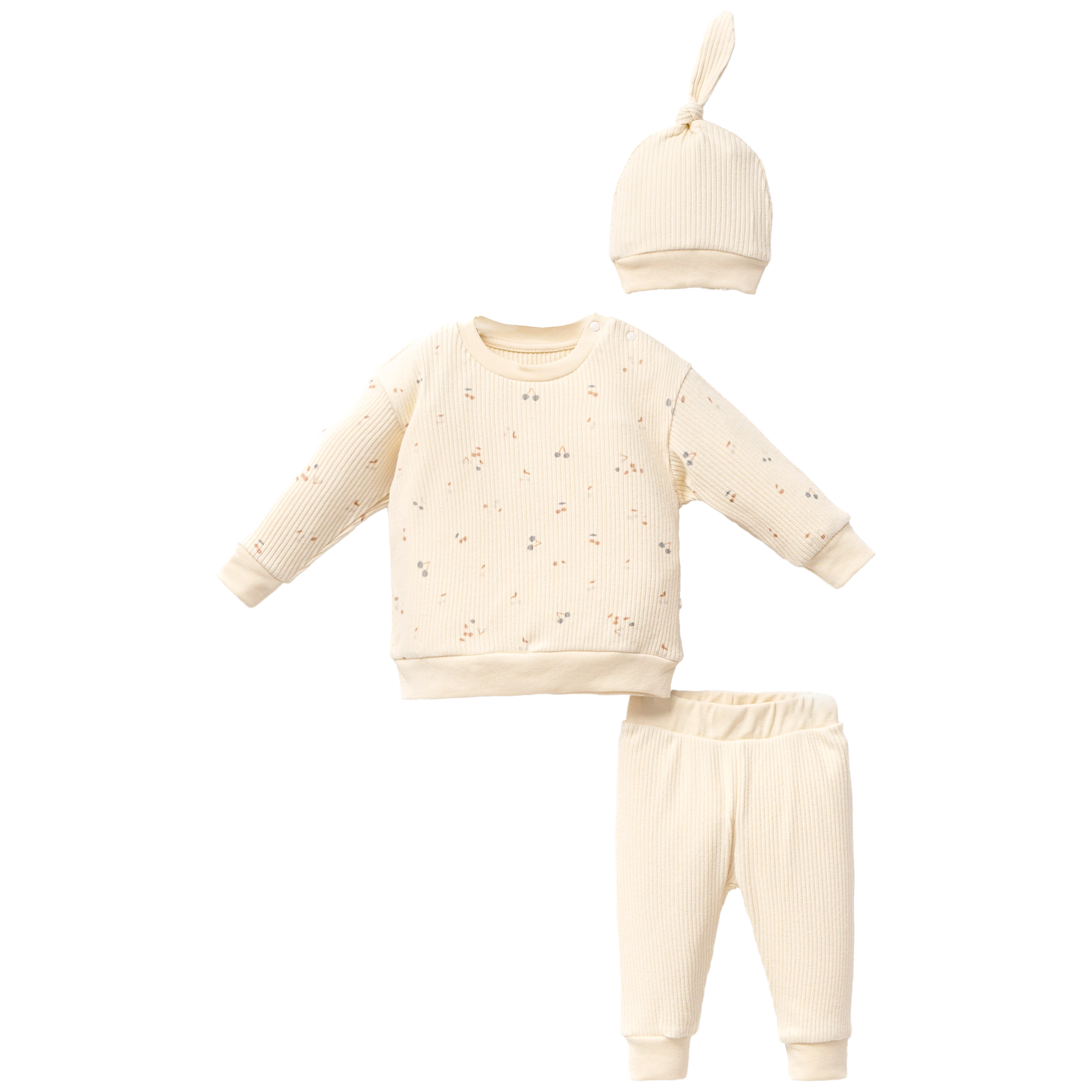 Beige Leaf Print Outfit & Hat