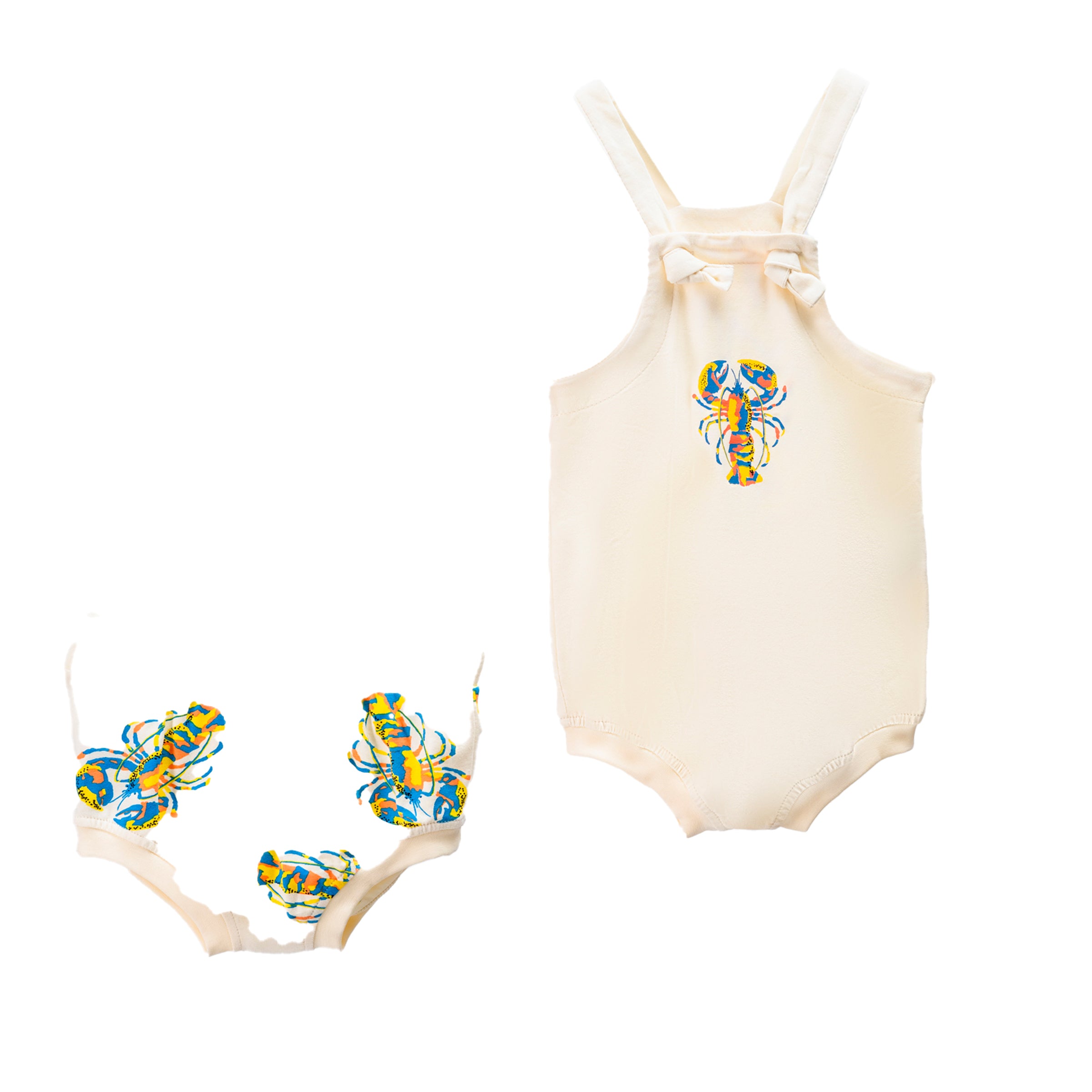 Beige Lobster Graphic Sleeveless Babysuit Outfit