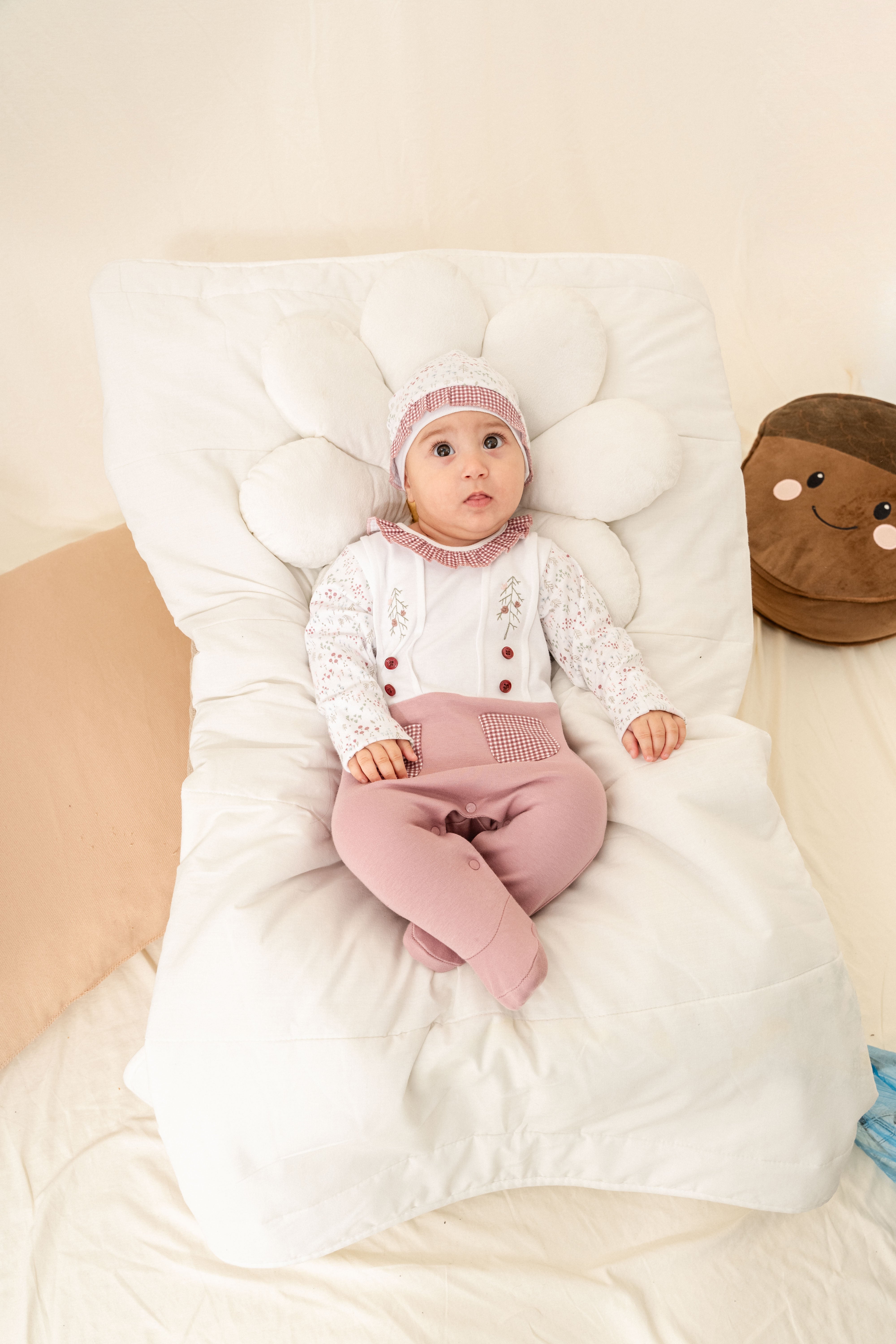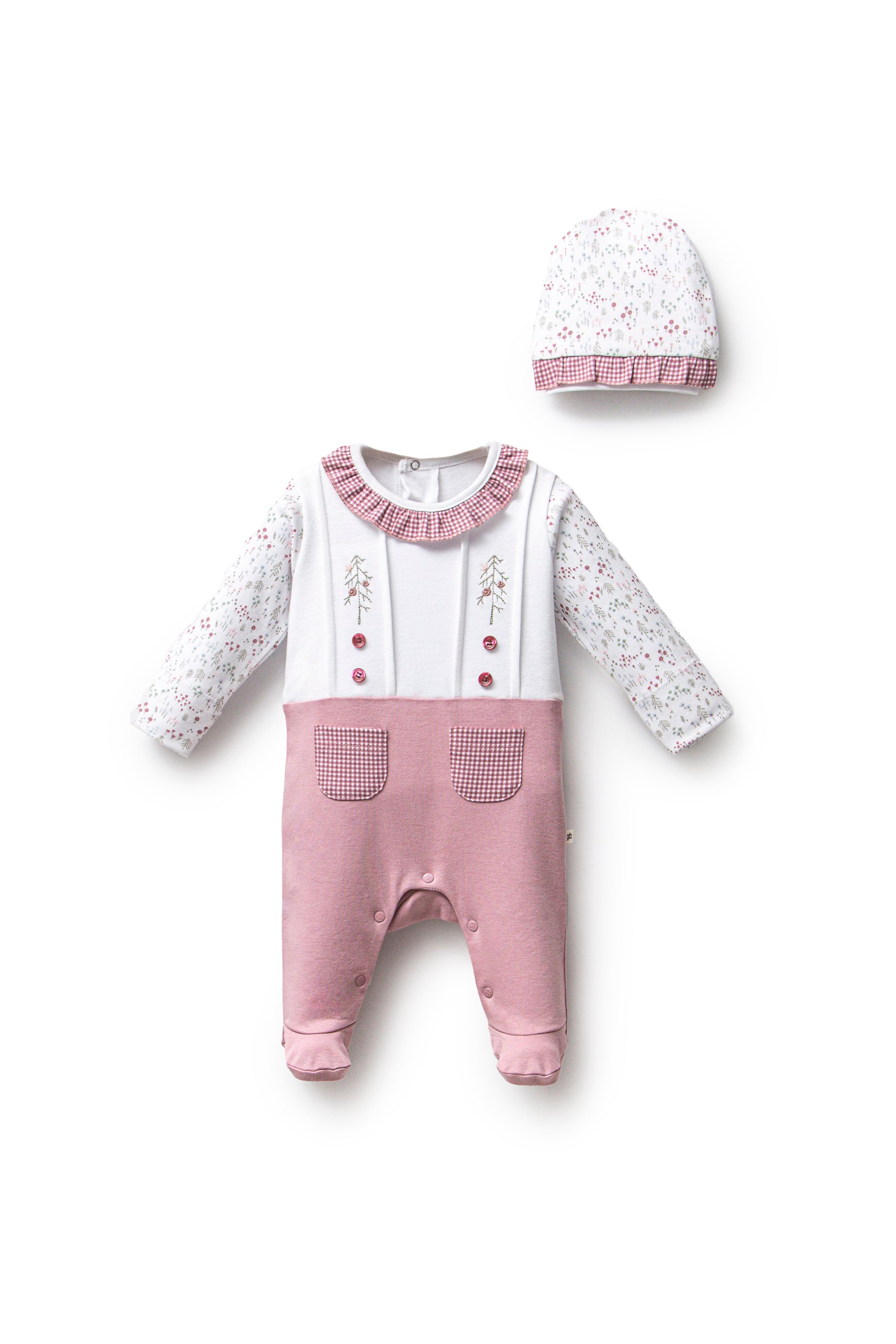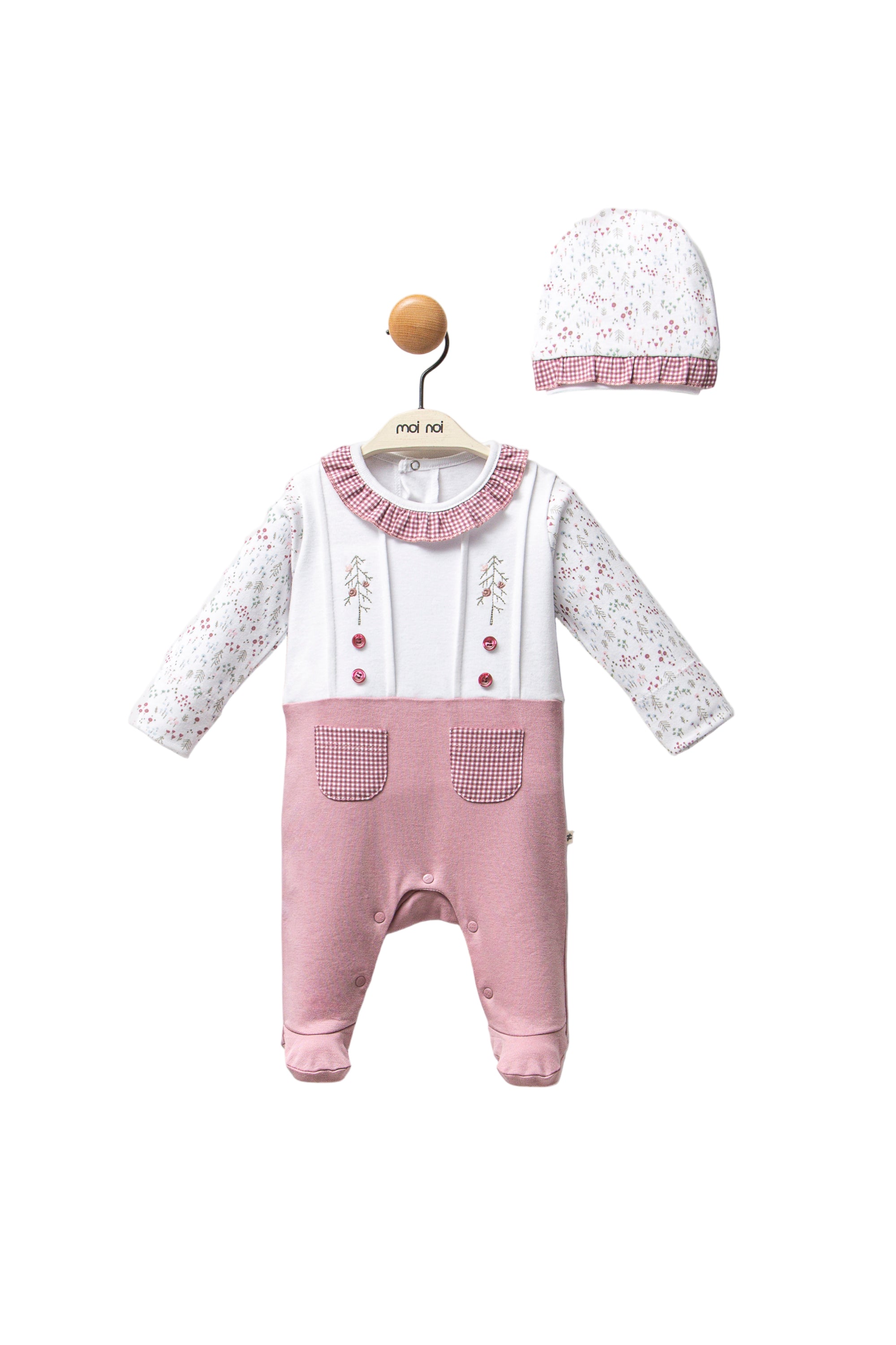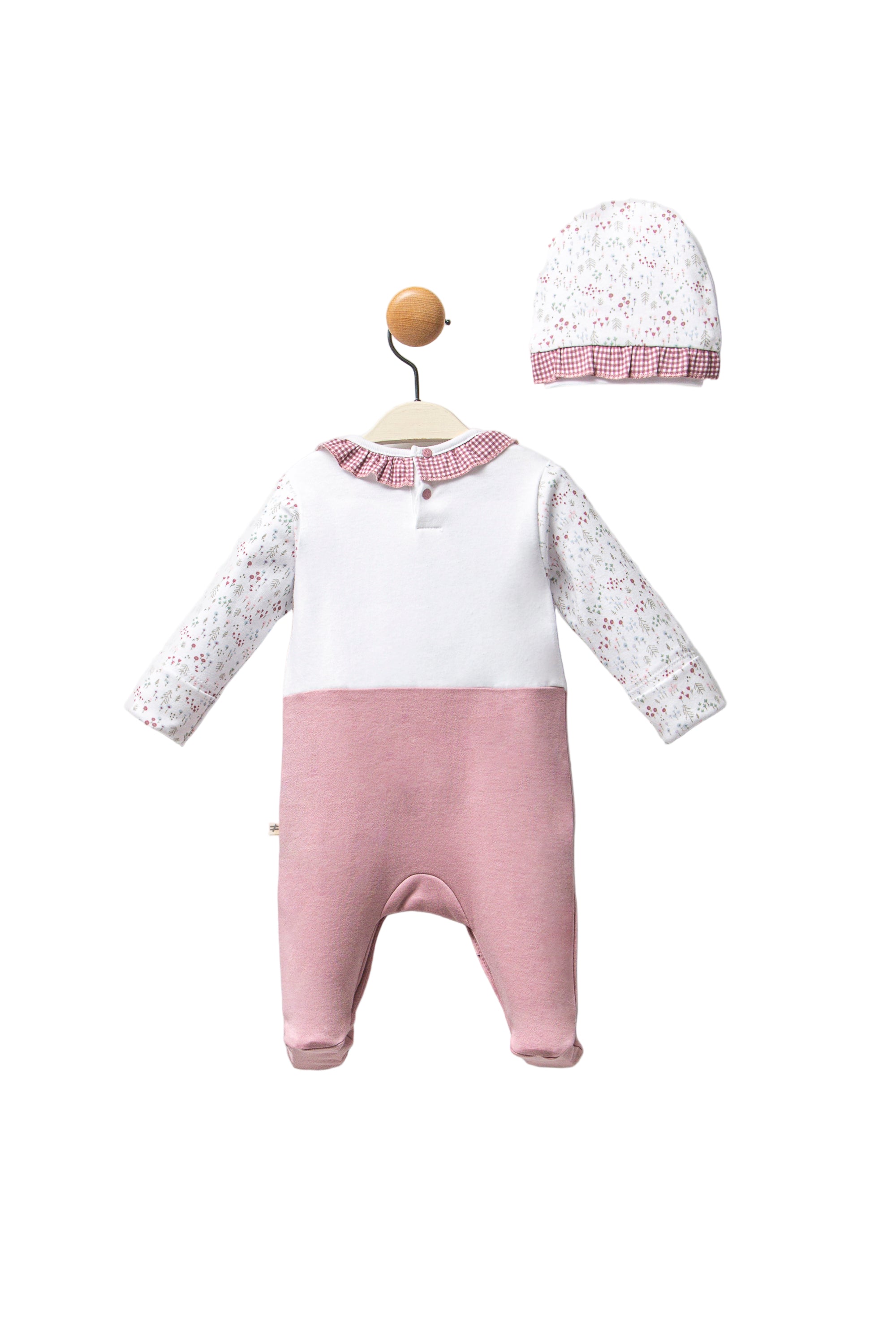 Mauve Gingham Flower One-Piece Set