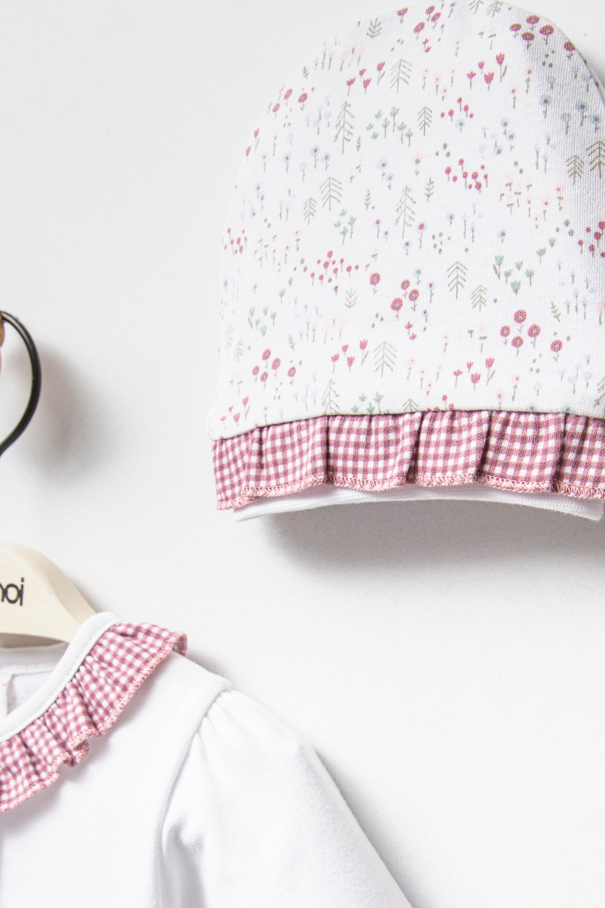 The Pink Gingham Flower Ruffle Set captures sweet vintage charm with its soft pink gingham pattern and delicate floral accents. Featuring playful ruffle details, this coordinated set pairs a comfy top with matching bottoms for a stylish and comfortable look.