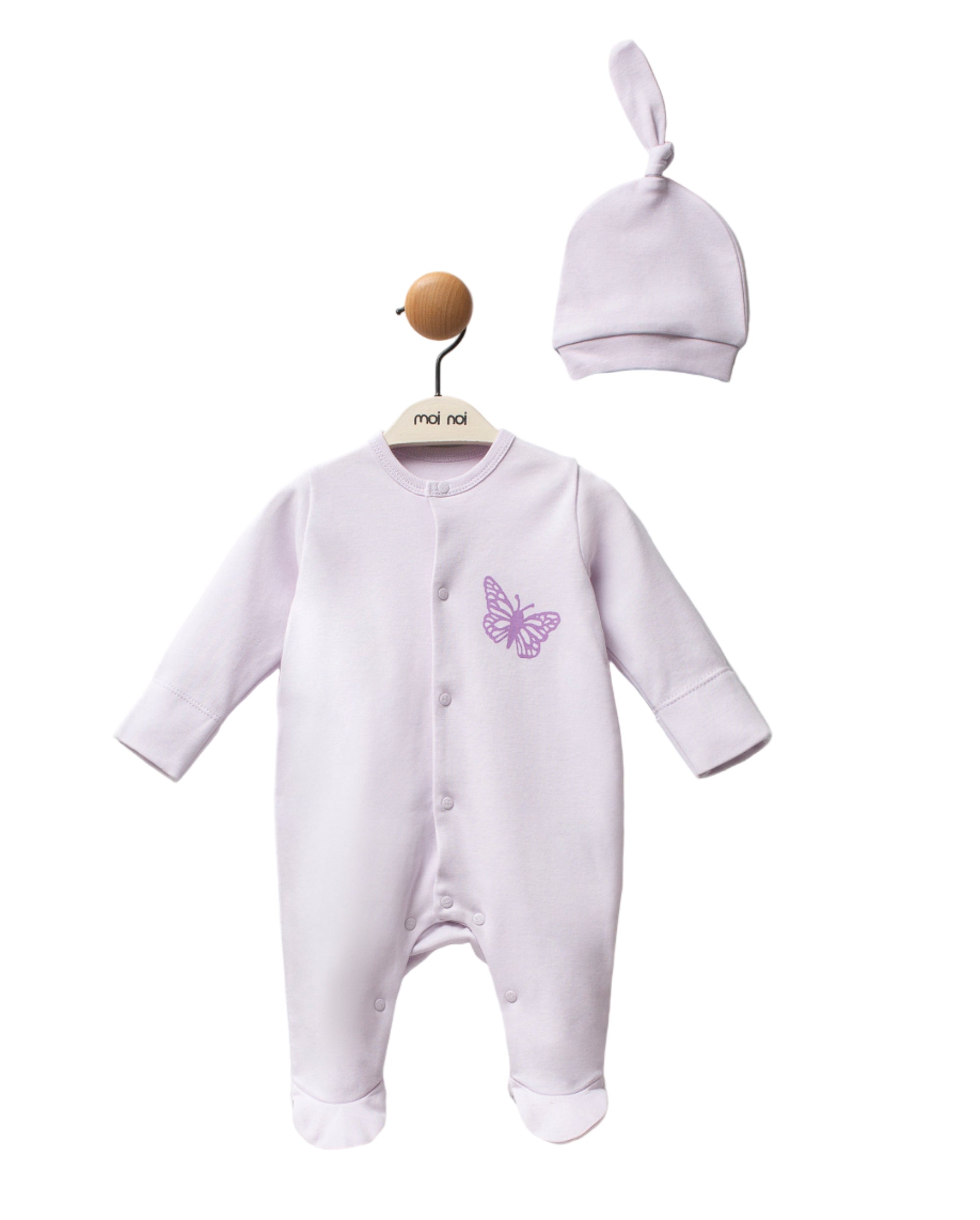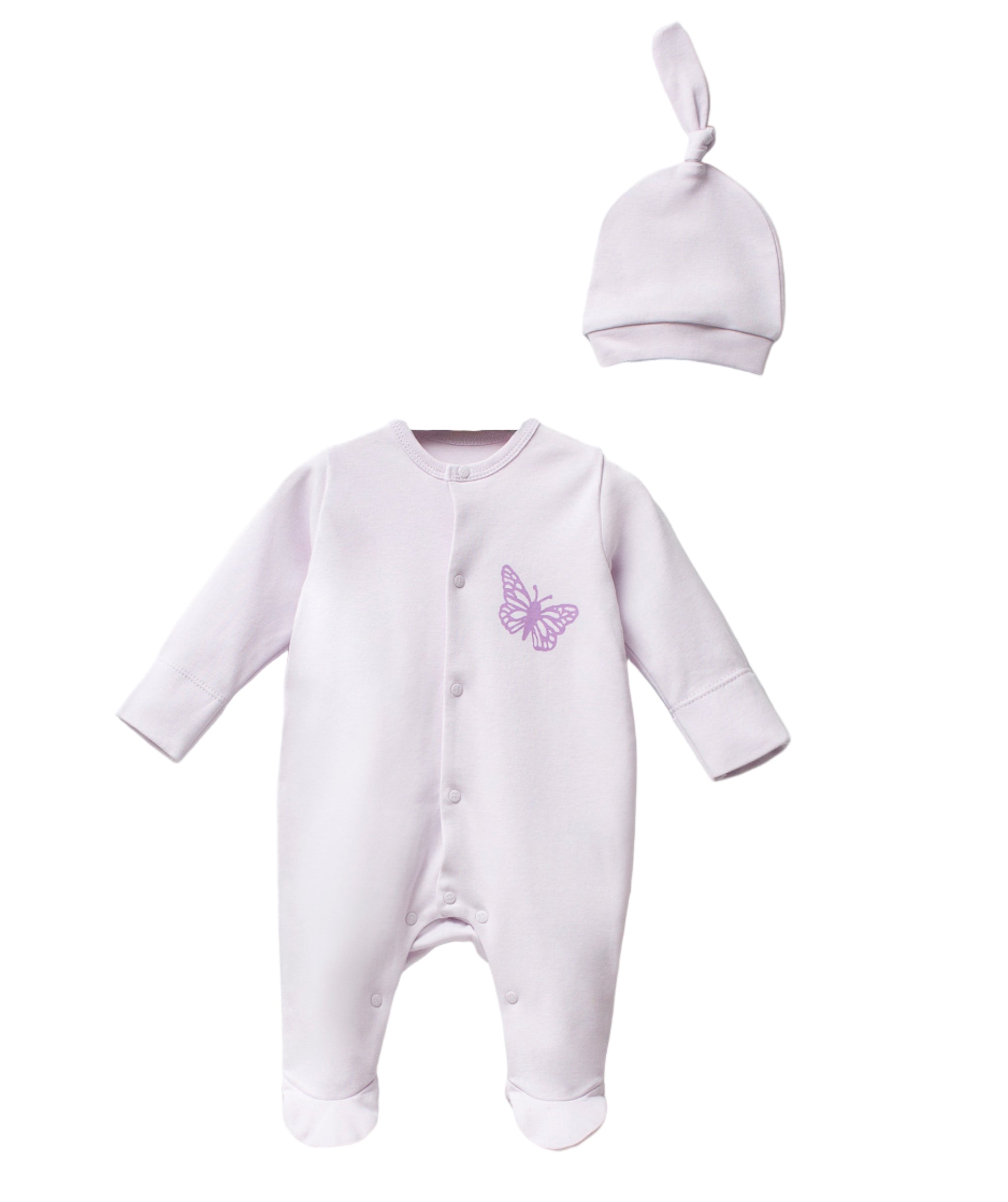 The Lilac Purple Butterfly Set dances with soft hues and whimsical butterfly accents. Featuring a harmonious blend of lilac and purple tones, this matching top and bottom combo offers a charming and comfortable outfit for playful days and special moments alike.