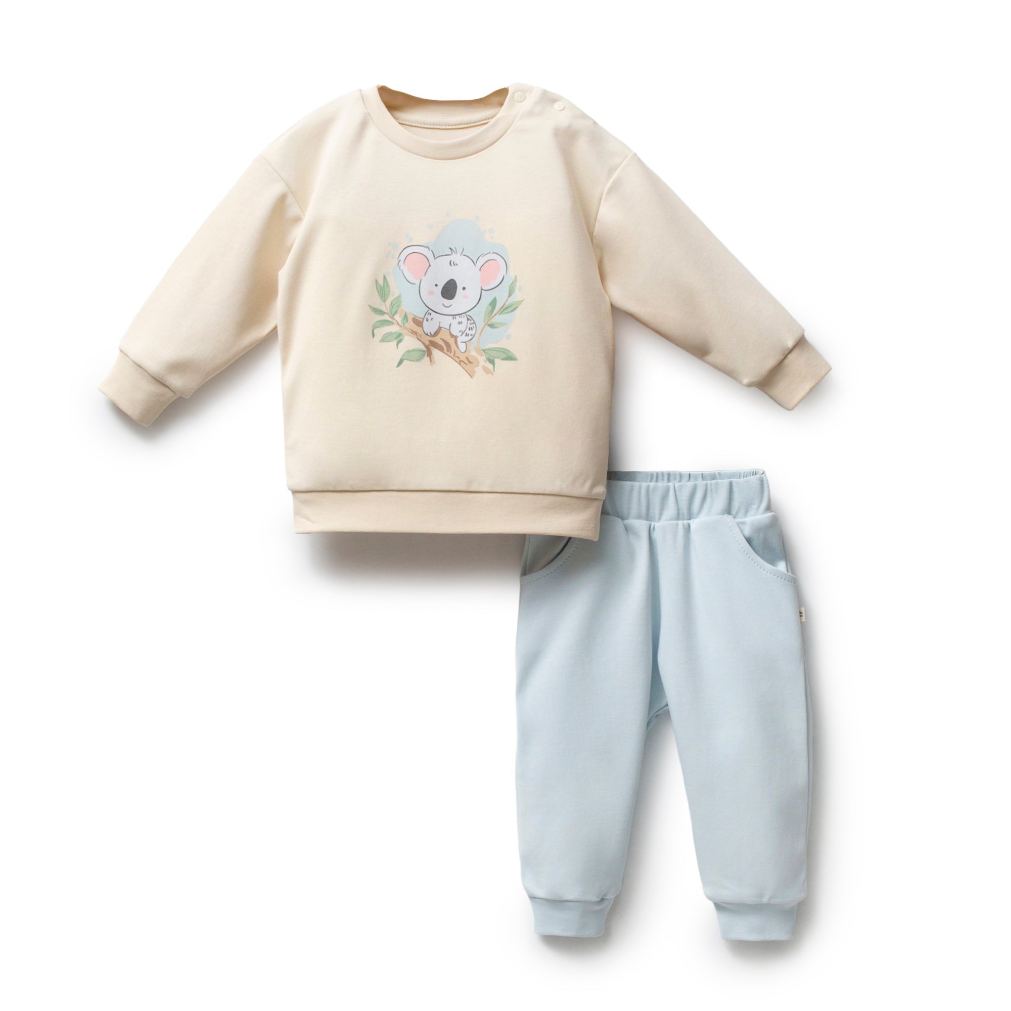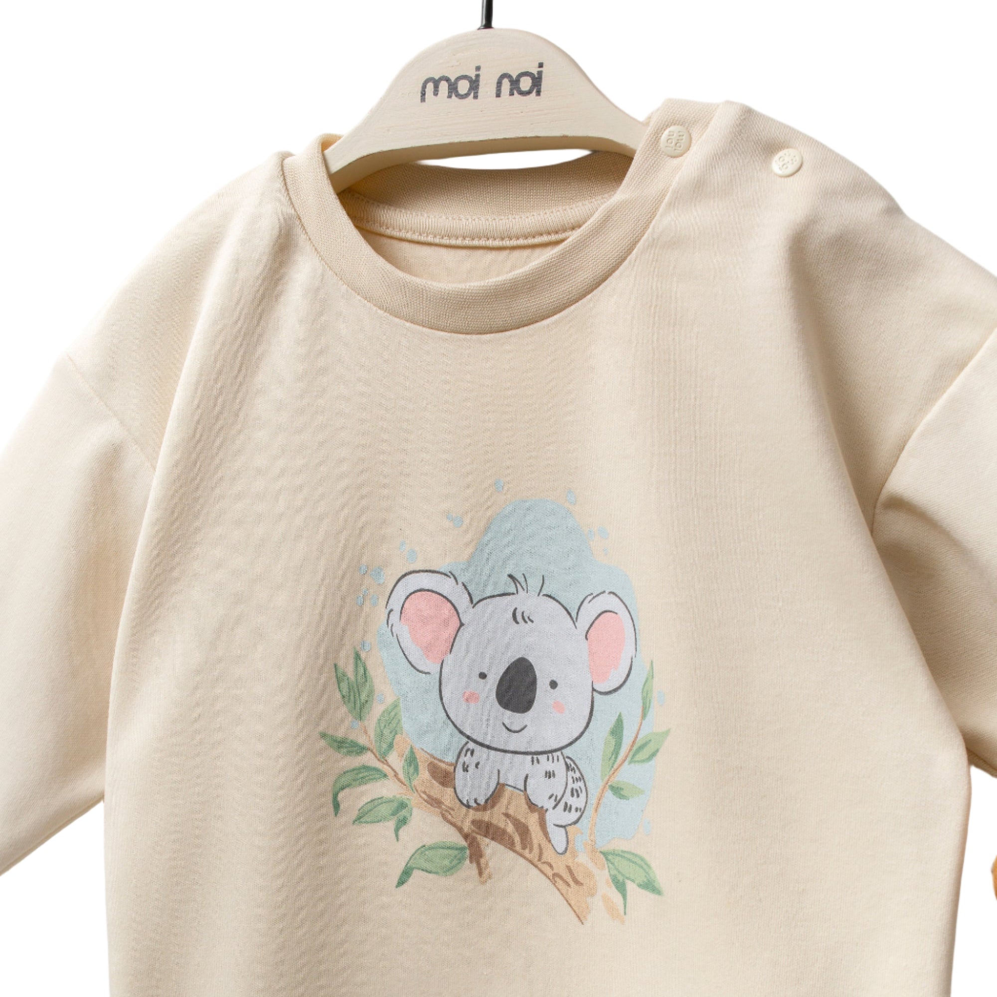 The Beige Koala Sweat Set blends cozy comfort with adorable style. Featuring a soft beige tone and a playful koala graphic, this matching sweatshirt and sweatpants combo is perfect for lounging, playtime, or casual outings.