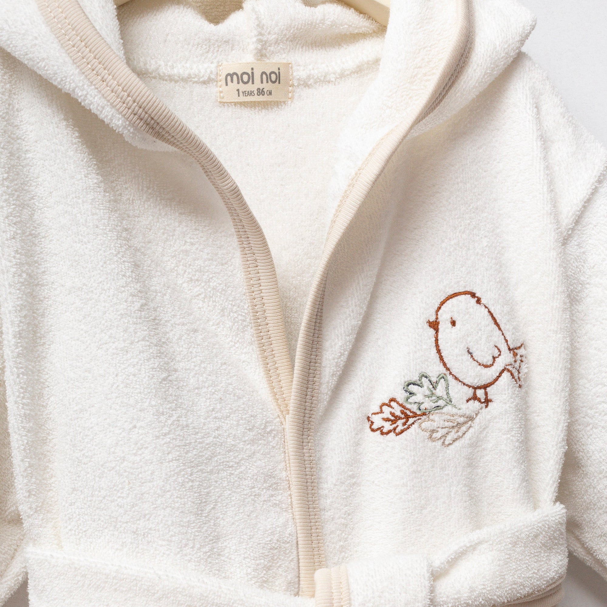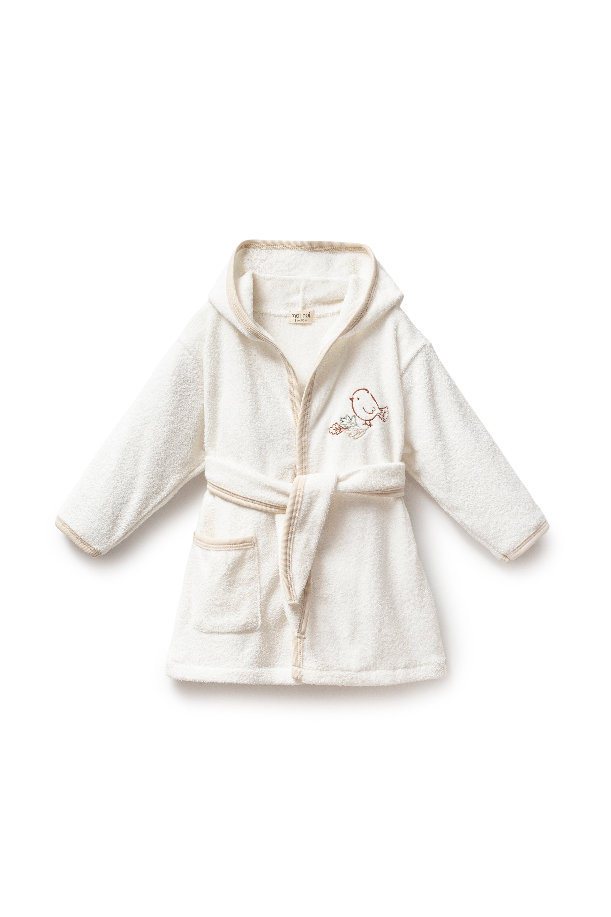 The Beige Autumn Bird Robe captures the cozy spirit of fall with its warm beige tone and charming bird print. Soft and plush, it wraps little ones in comfort while bringing a touch of nature-inspired whimsy to their routine.