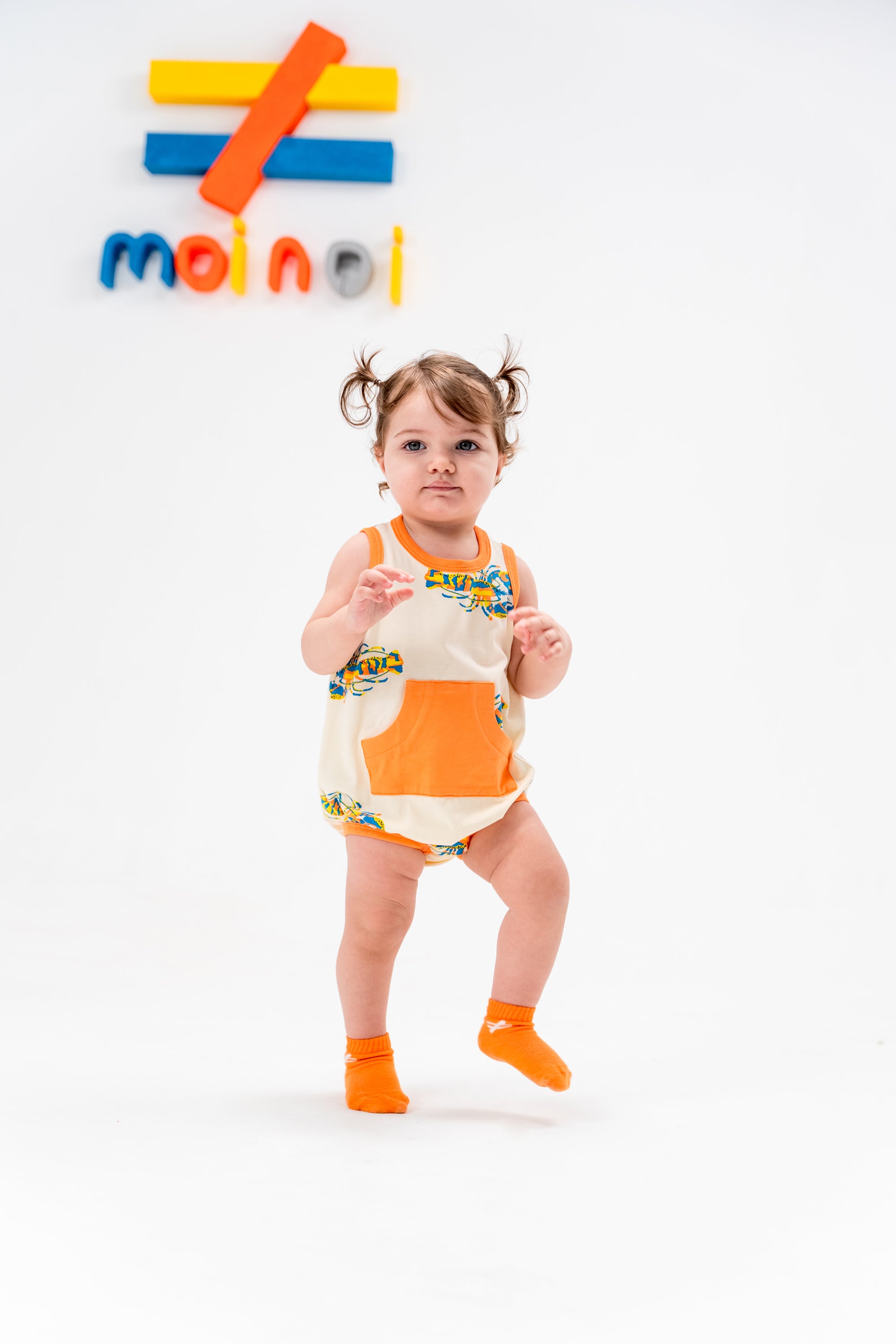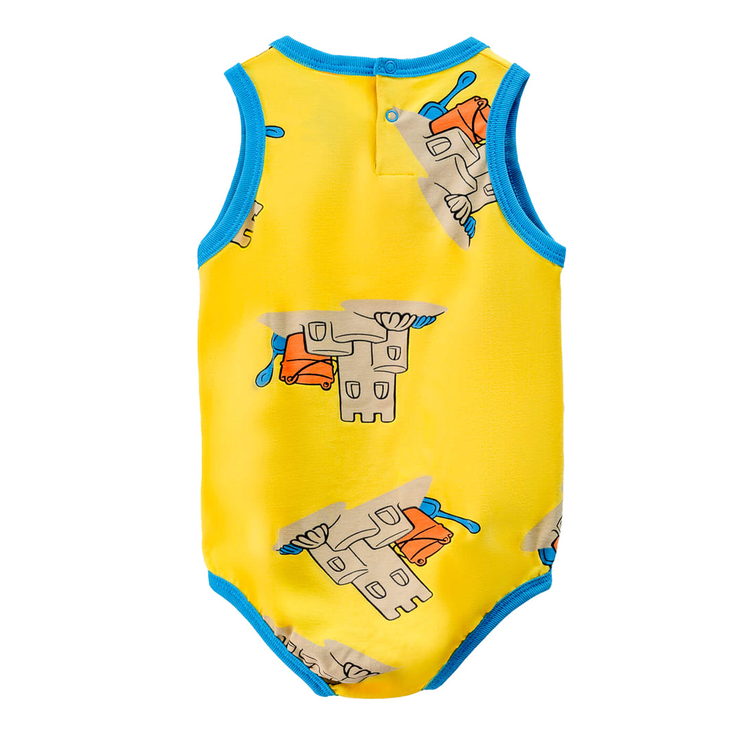 Yellow Sand Castle Print Sleeveless Bodysuit