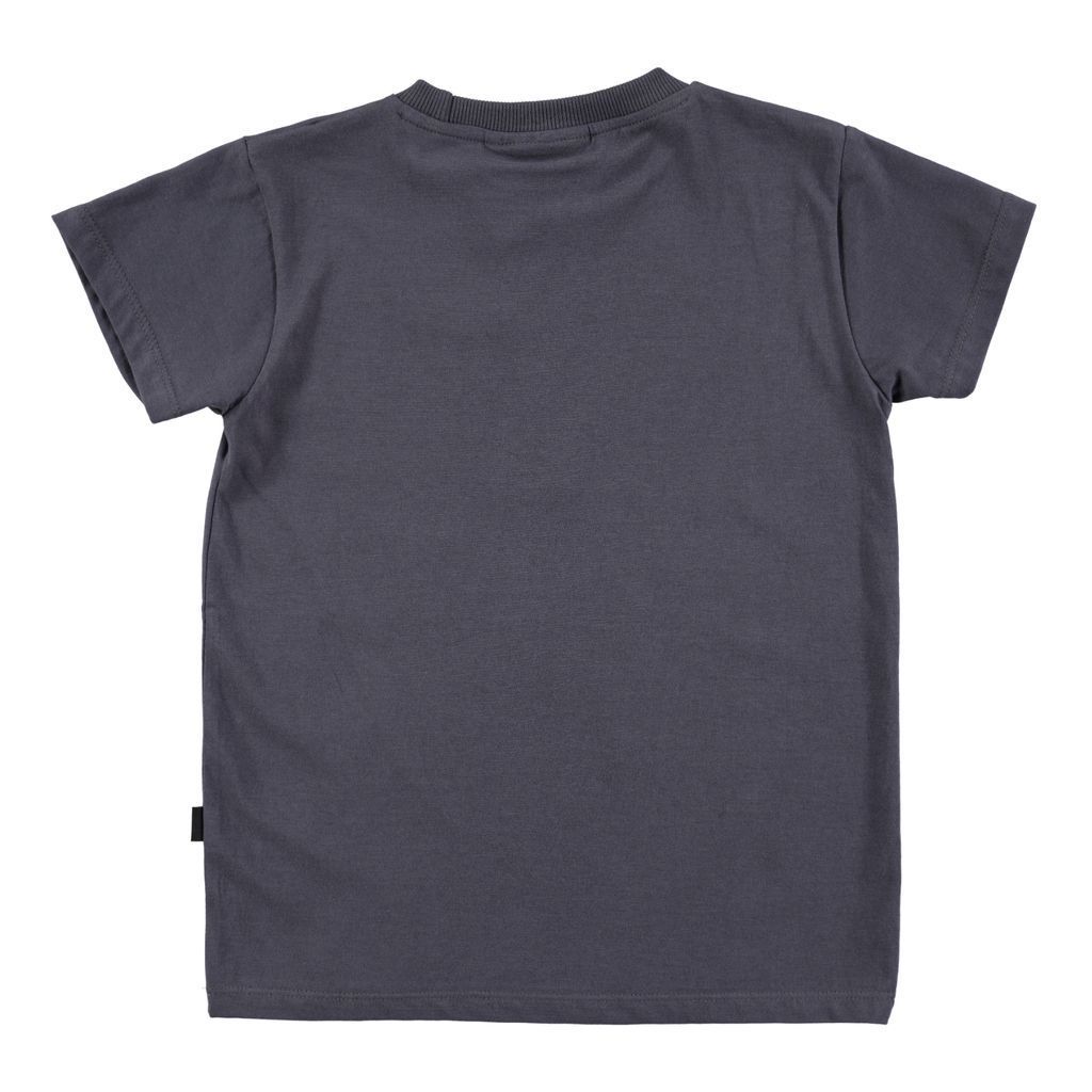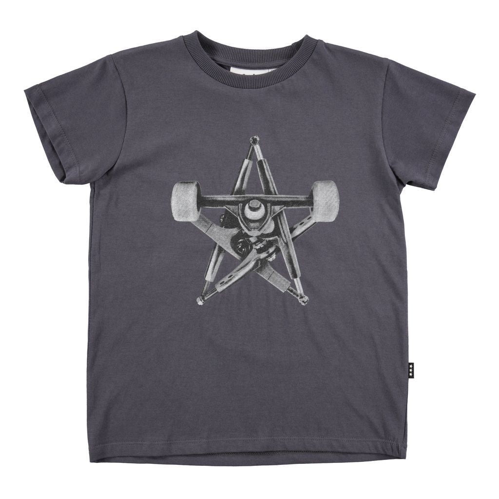- Charcoal short-sleeved T-shirt with skateboard star graphic
