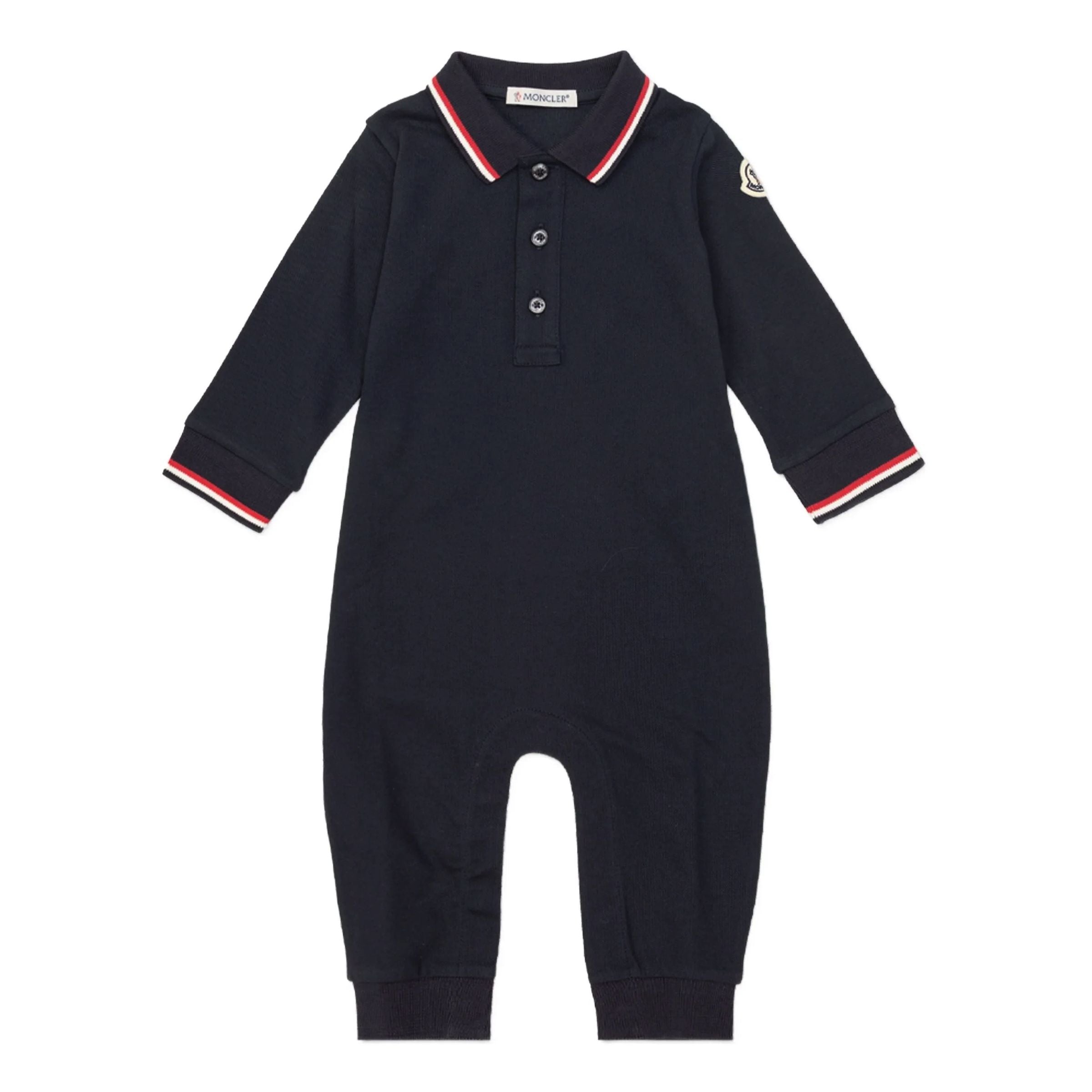Tricolour-Trimmed Cotton Piquet Baby Grow