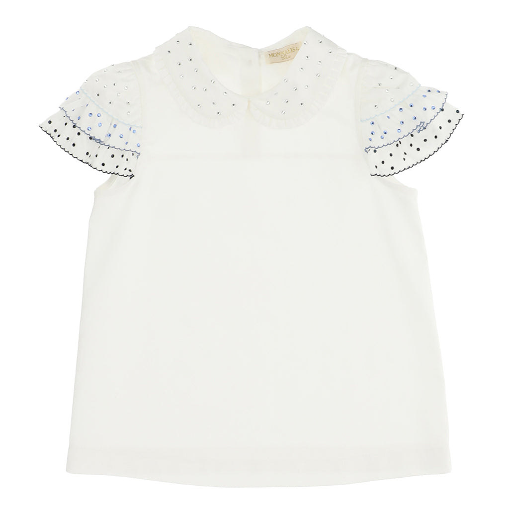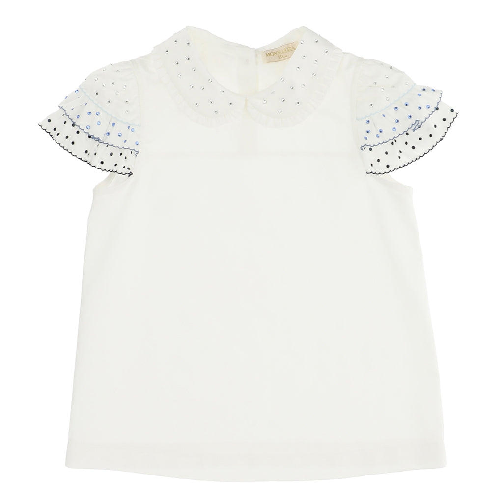 MONNALISA-797605R6-7004-0156-CREAM/BLUE-SATEEN SHIRT W/ RHINESTONES