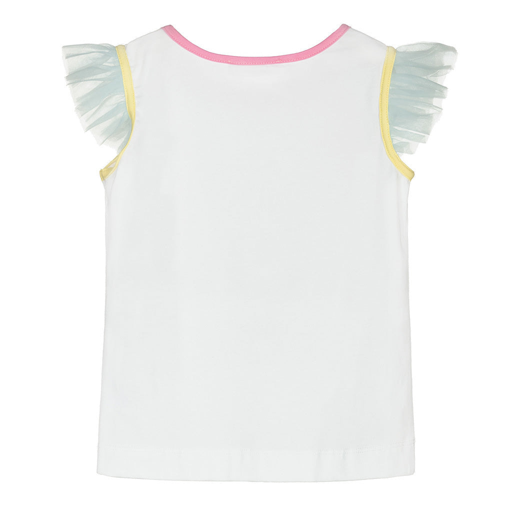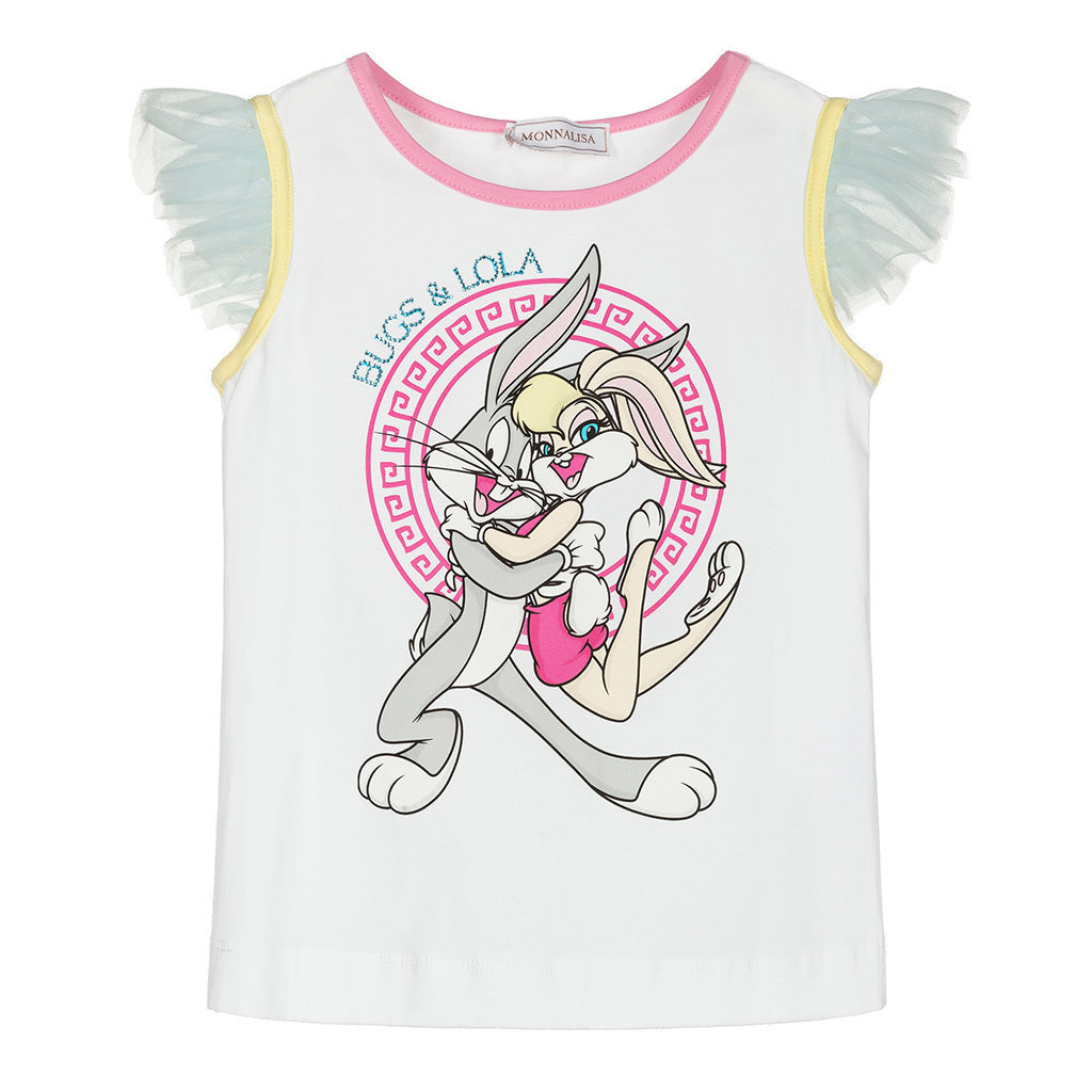 White Lola Print Ruffle T-Shirt