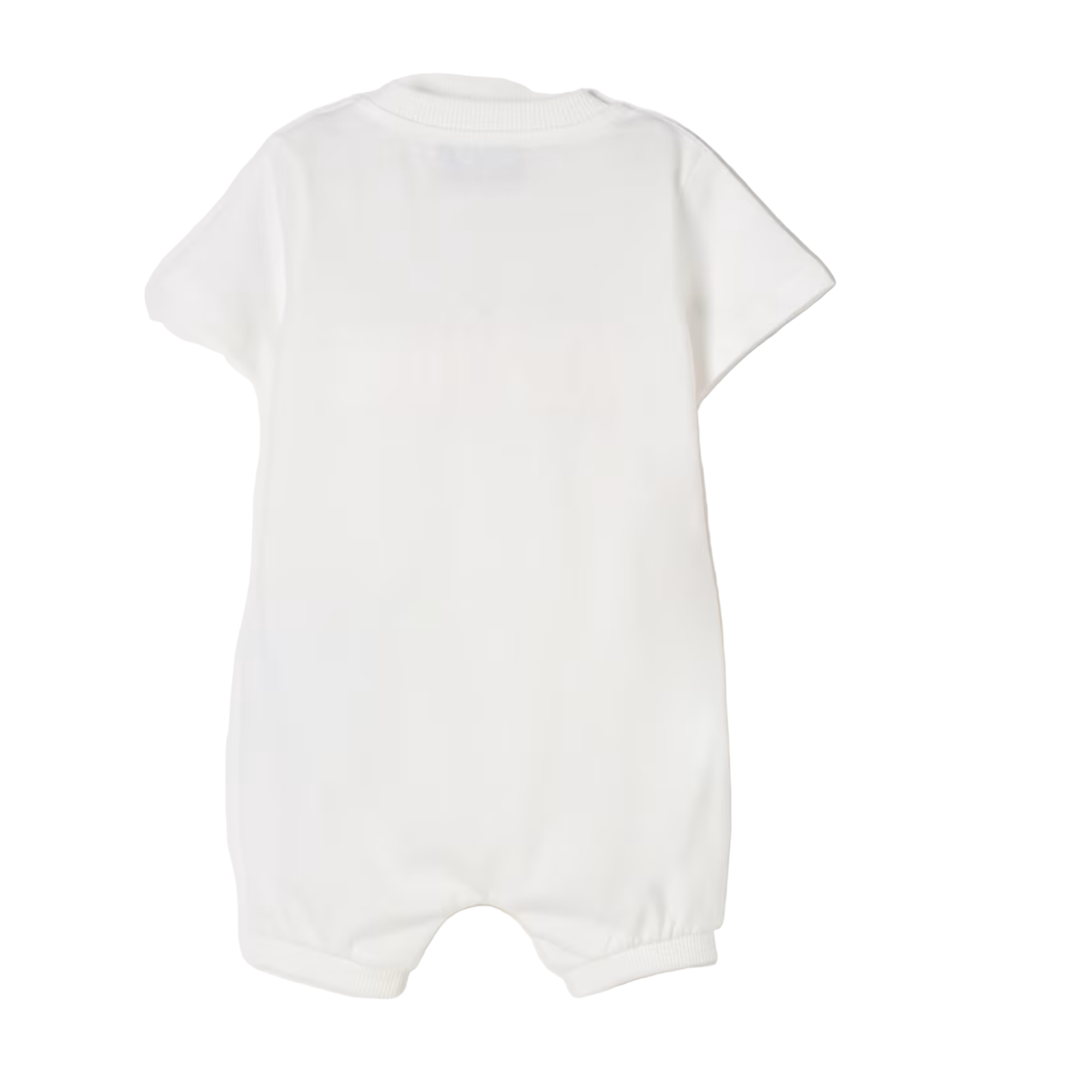 Moschino’s Bear Logo Print Romper brings joyful charm to baby essentials. Crafted in soft cotton jersey, this short-sleeve style features the iconic Moschino teddy peeking over bold, multicolored block lettering. Snap closures ensure easy changes, making it perfect for gifting or everyday wear.