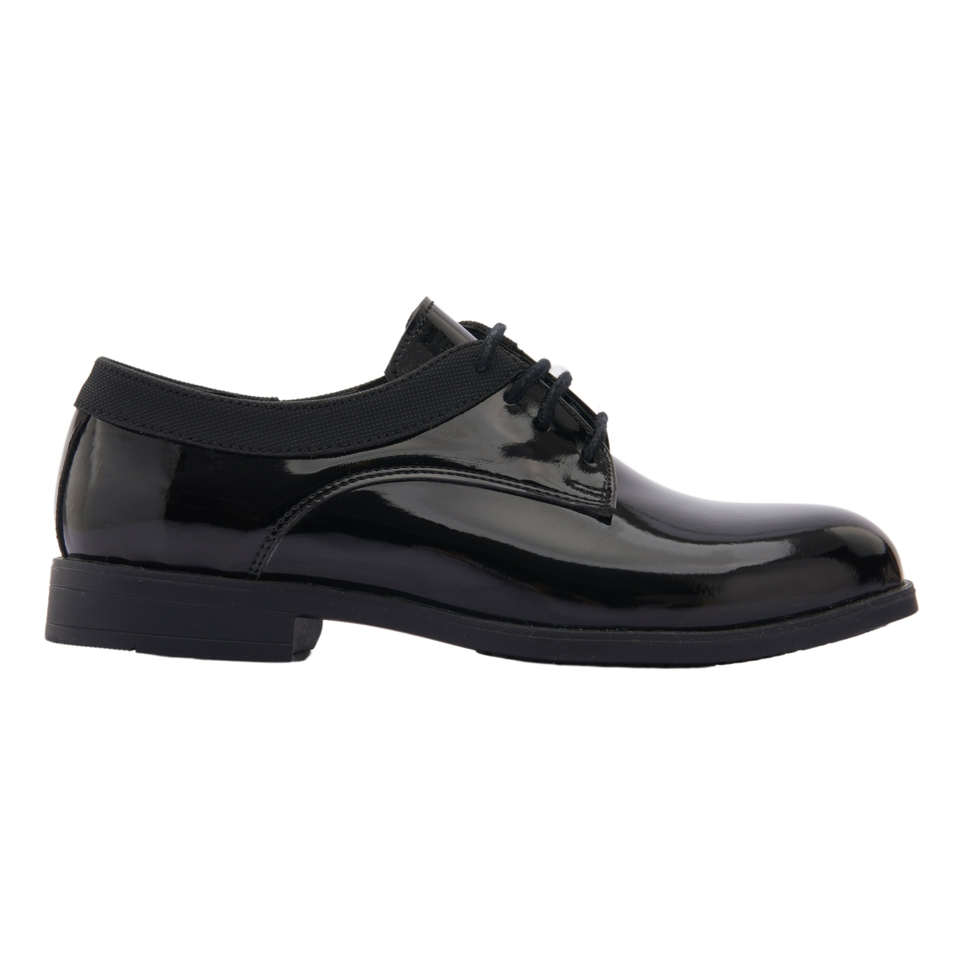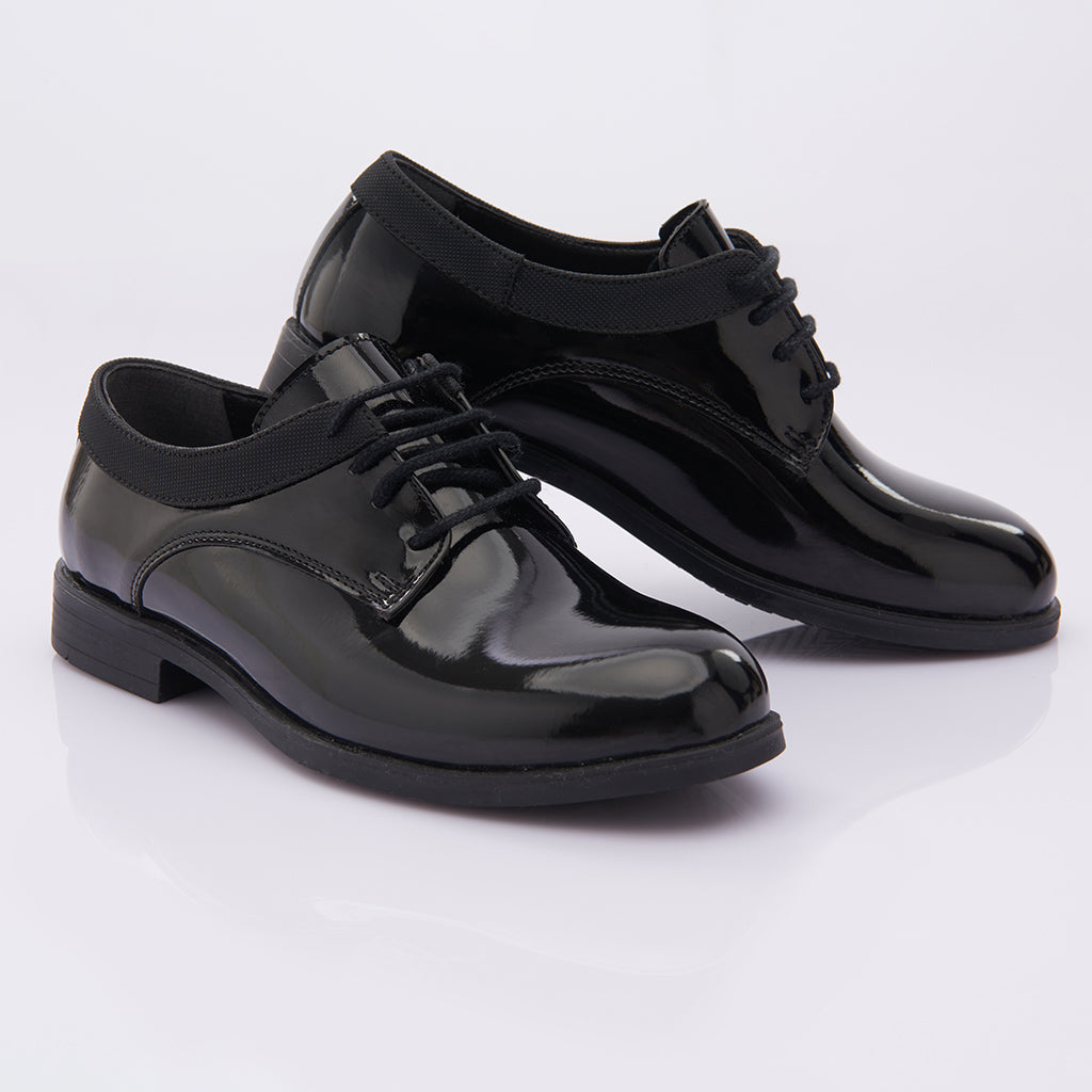 Step up your little one's style game with the black cap toe oxford shoe from Moustache. Imagine the delight on your child's face as he dons these shiny, polished shoes for the first time. The clean and glossy patent finish catches the light beautifully, ensuring he stands out in any crowd.