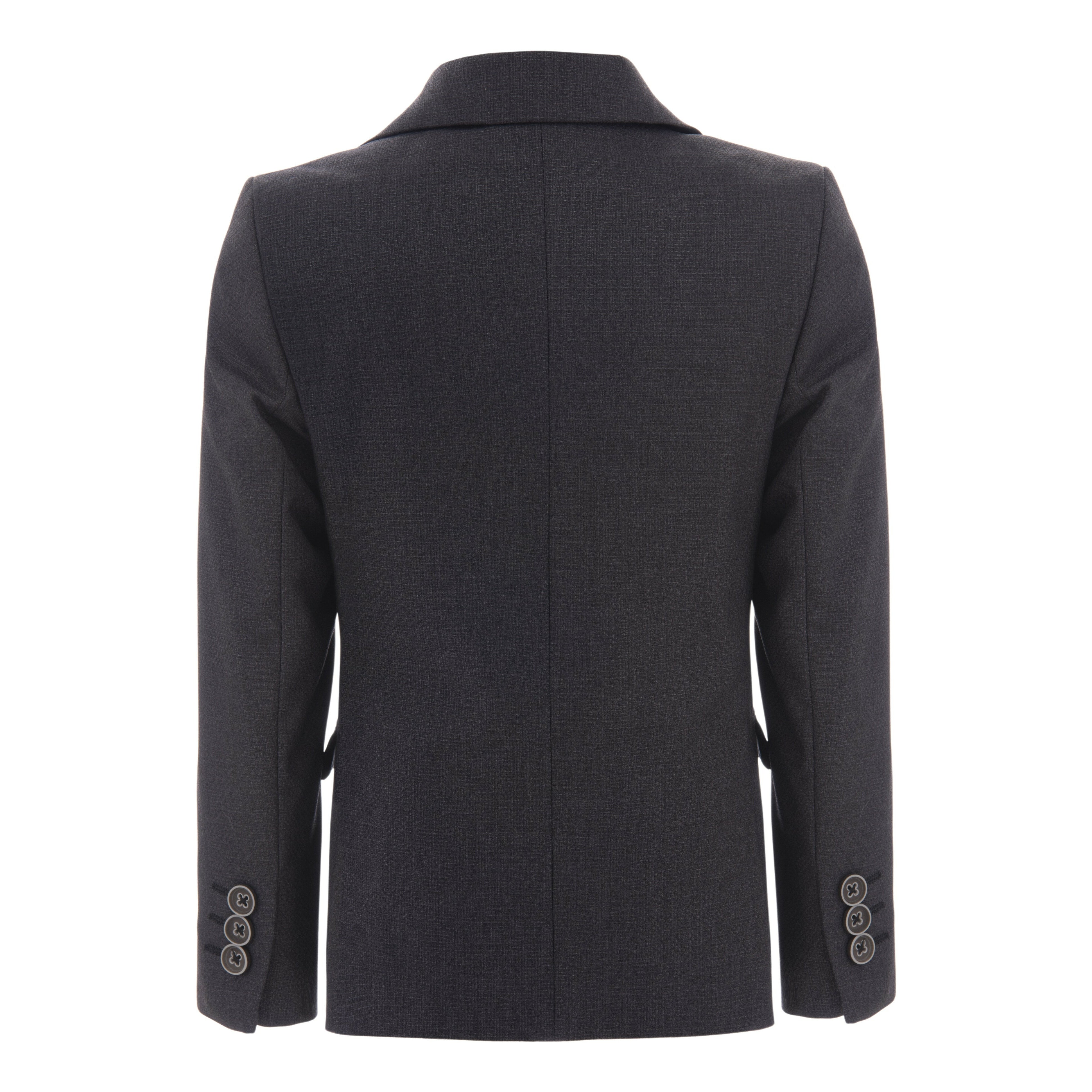 This versatile gray twill peak lapel blazer can be styled in various ways. Pair it with any shirt and pants from the collection for a casual or sophisticated look, making it perfect for any special occasion. The gray color and embroidered design make this blazer a timeless addition to your child's wardrobe, suitable for both formal events and everyday wear.