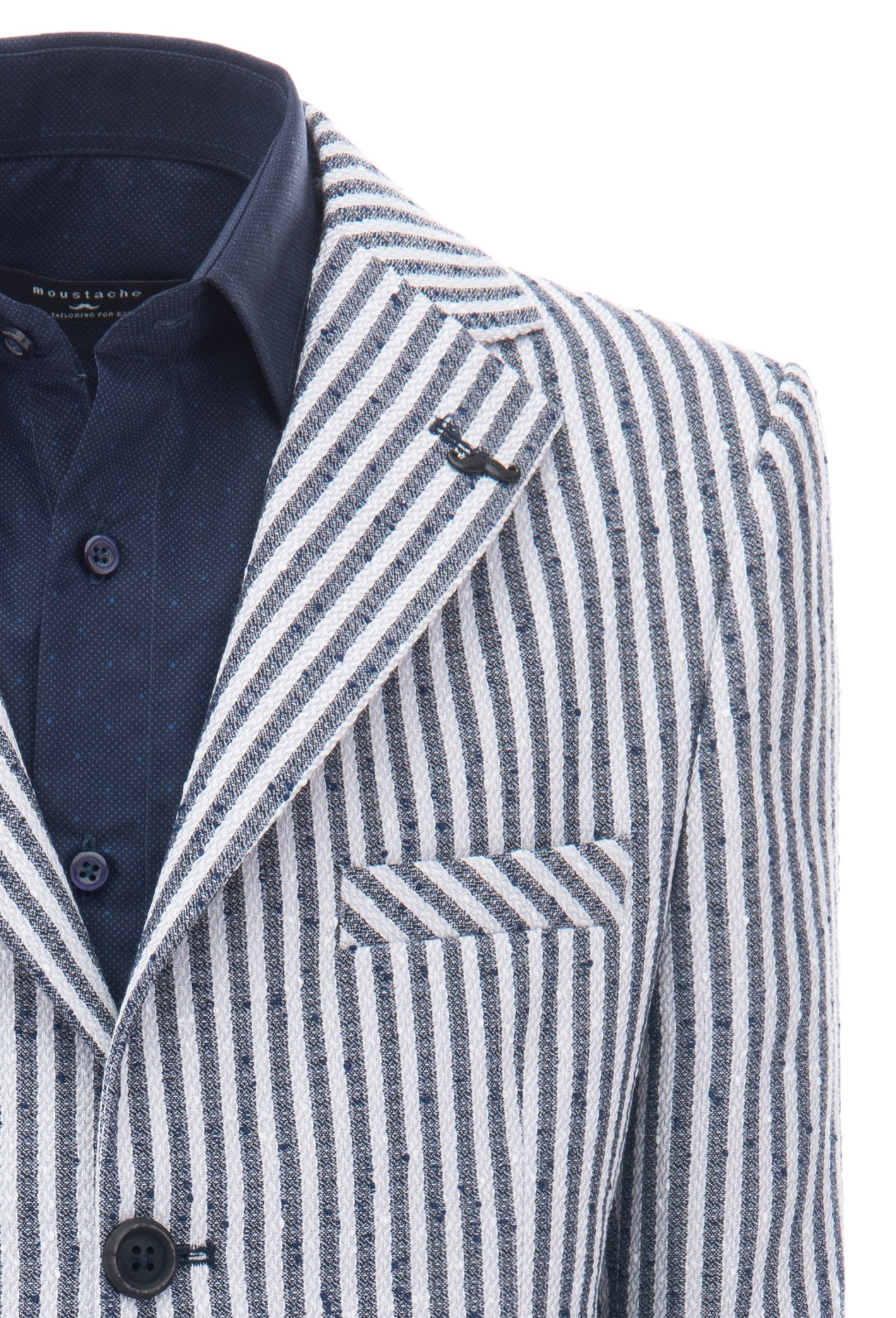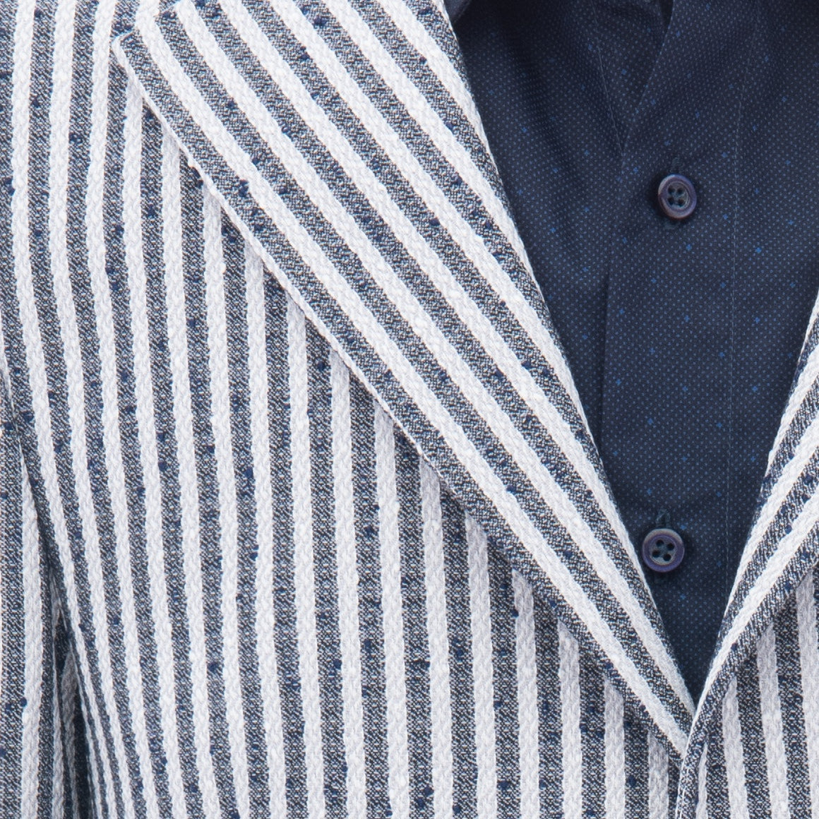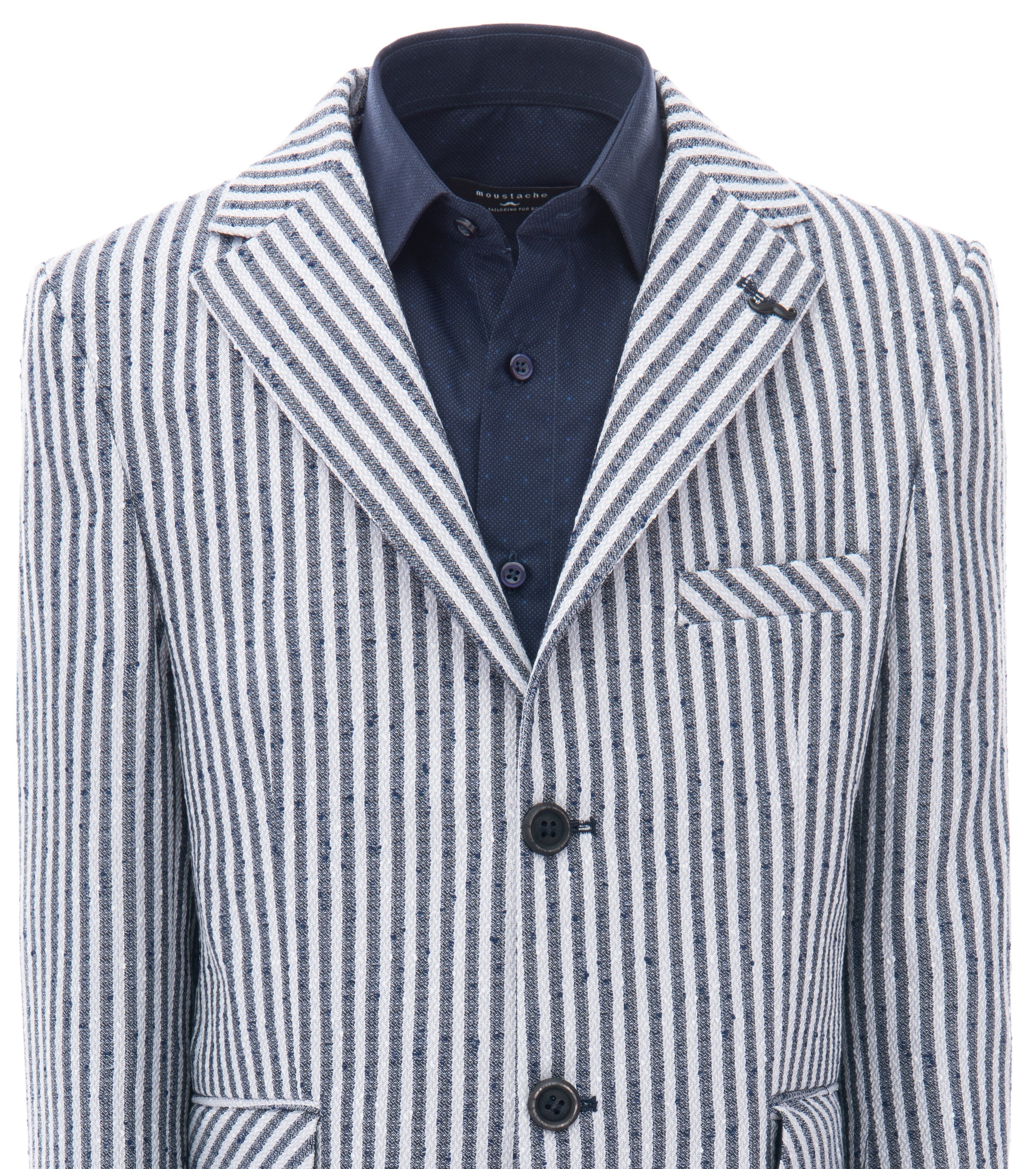 Additionally, the gray and navy striped peak lapel blazer stands out with its elegant design. Included are dual pockets with double button closure. The blazer is crafted from high-quality materials, ensuring a comfortable and tailored fit that enhances your child's silhouette.
