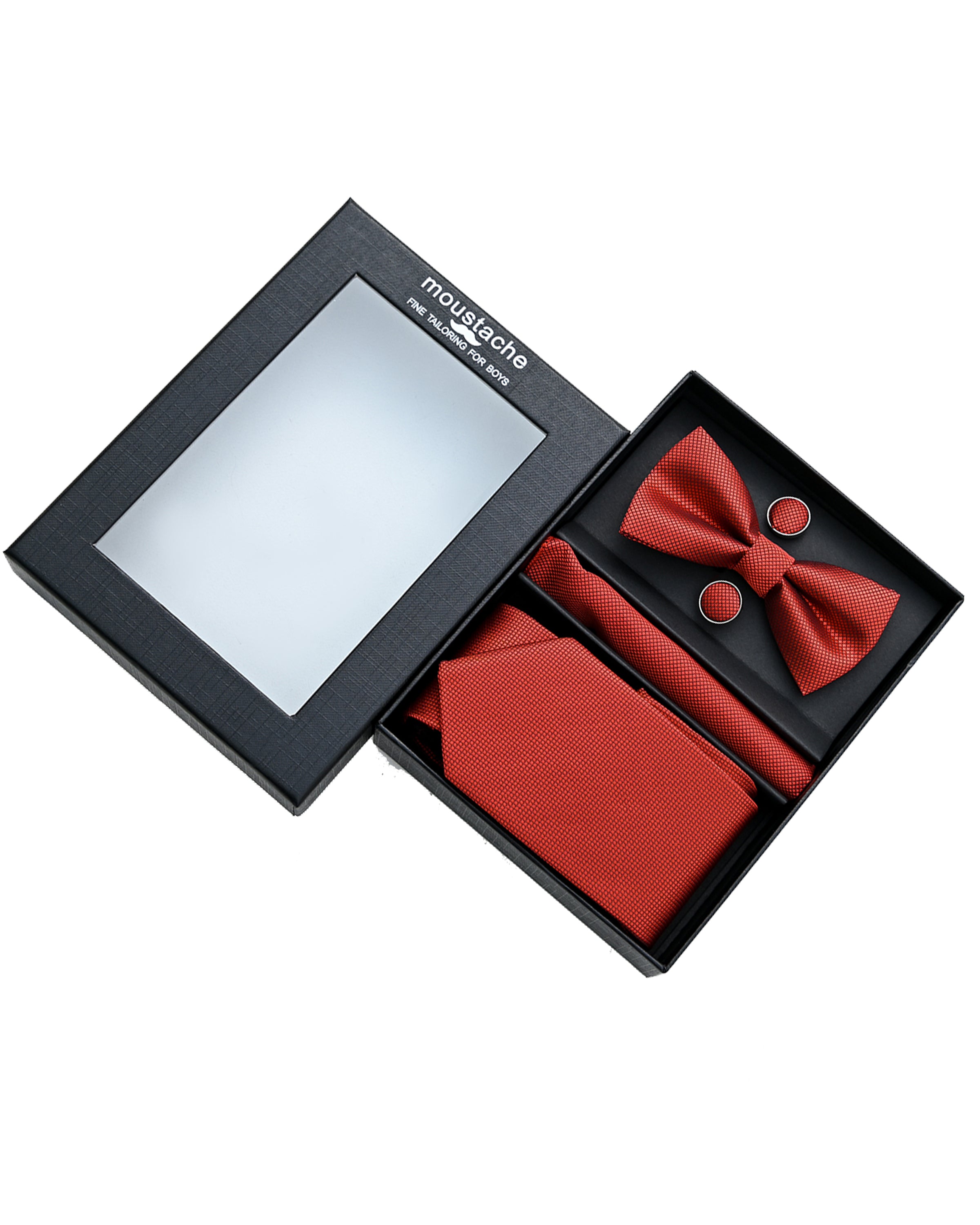 - Set includes matching tie, pocket square, bowtie and cufflinksÂ