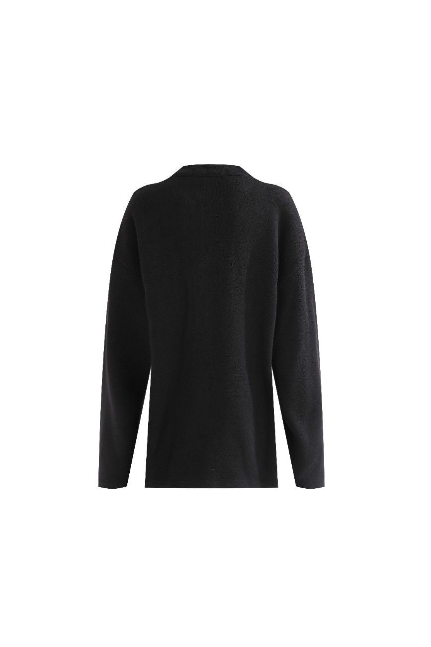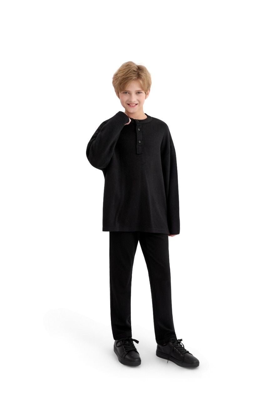 Jet Black Three-Button Henley Top