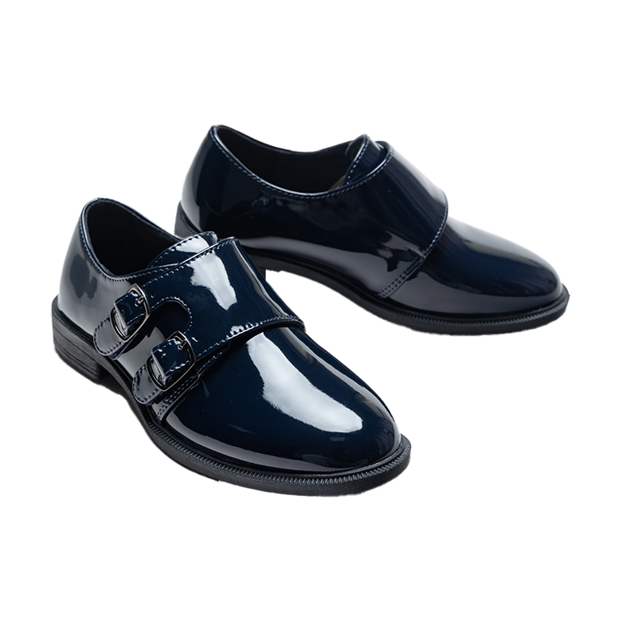 Perfect for weddings, parties, or formal outings, the Navy Patent Buckle Dress shoes by Moustache add a dashing finish to any outfit, making them an essential piece for timeless style.