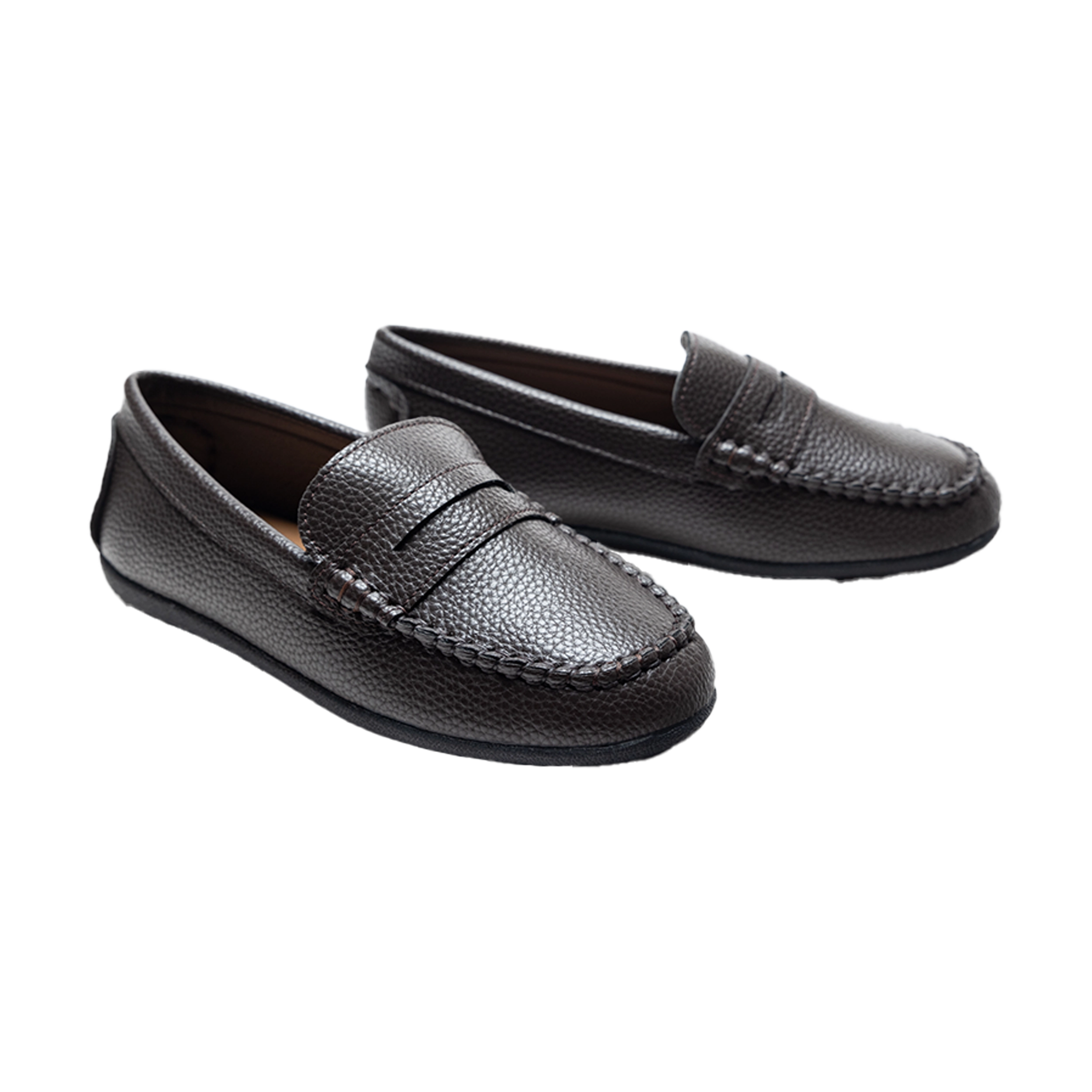 Introducing the Mocha Faux Leather Penny Loafers by Moustache, a refined option for little boys who embrace timeless sophistication with a modern twist. Crafted from smooth mocha brown leather, these loafers showcase a rich, matte finish that exudes warmth and understated elegance, perfect for both formal settings and elevated everyday wear.