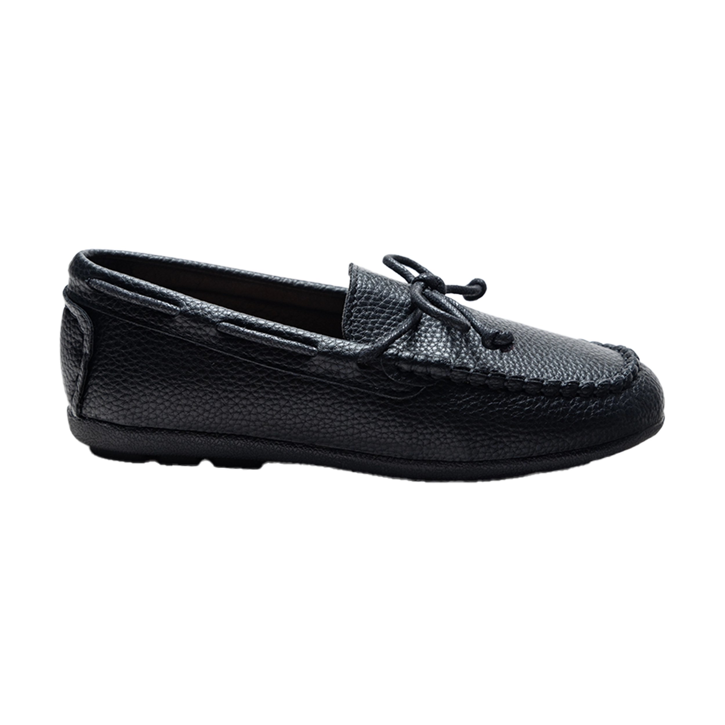 Ideal for young gentlemen who appreciate a mix of elegance and comfort, the Black Faux Leather Laced Loafers by Moustache are a must-have addition to any wardrobe, offering effortless style for every occasion.