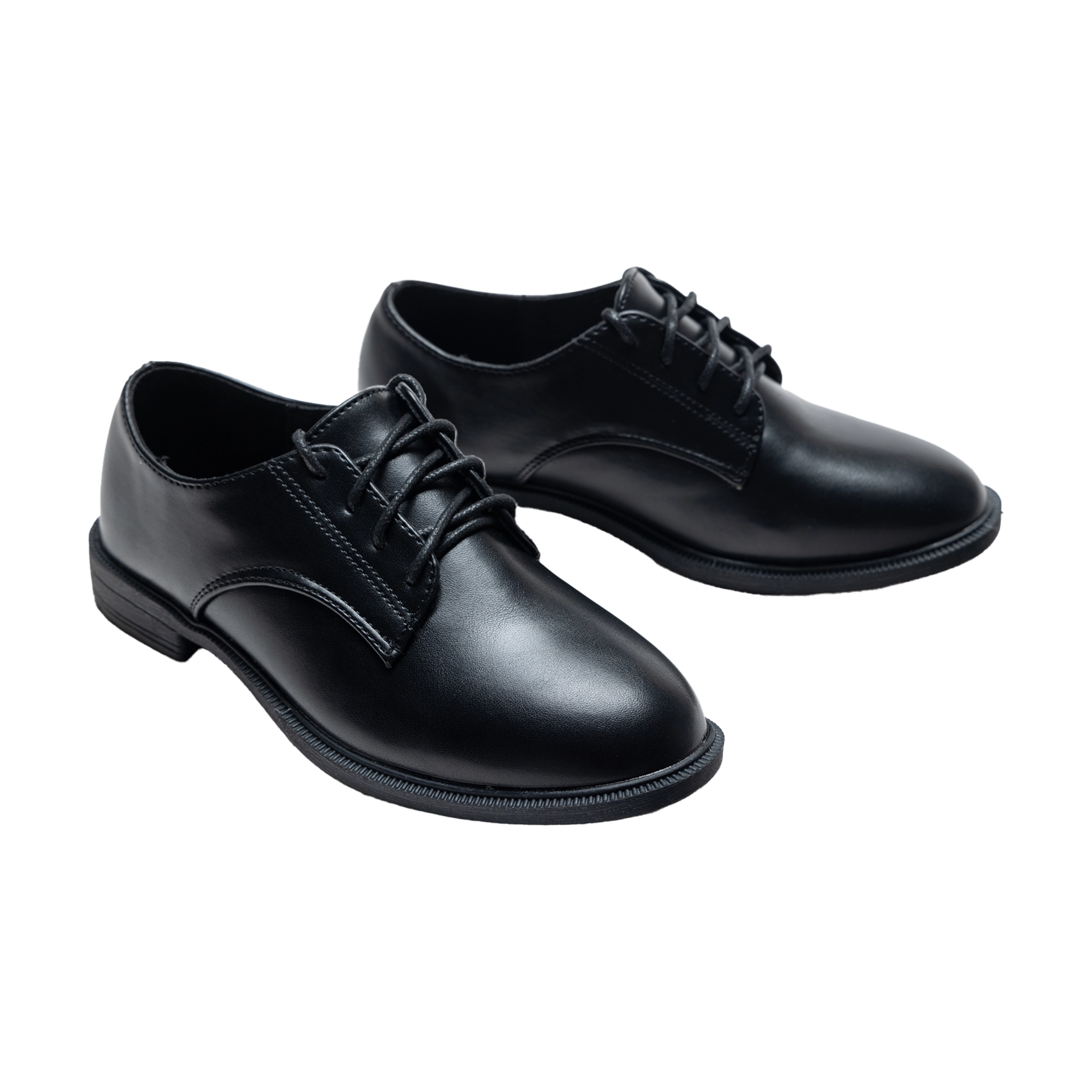 Ideal for young gentlemen who appreciate both style and practicality, the Black Derby Dress Shoes by Moustache are an essential addition to any wardrobe, offering effortless sophistication for any special occasion.