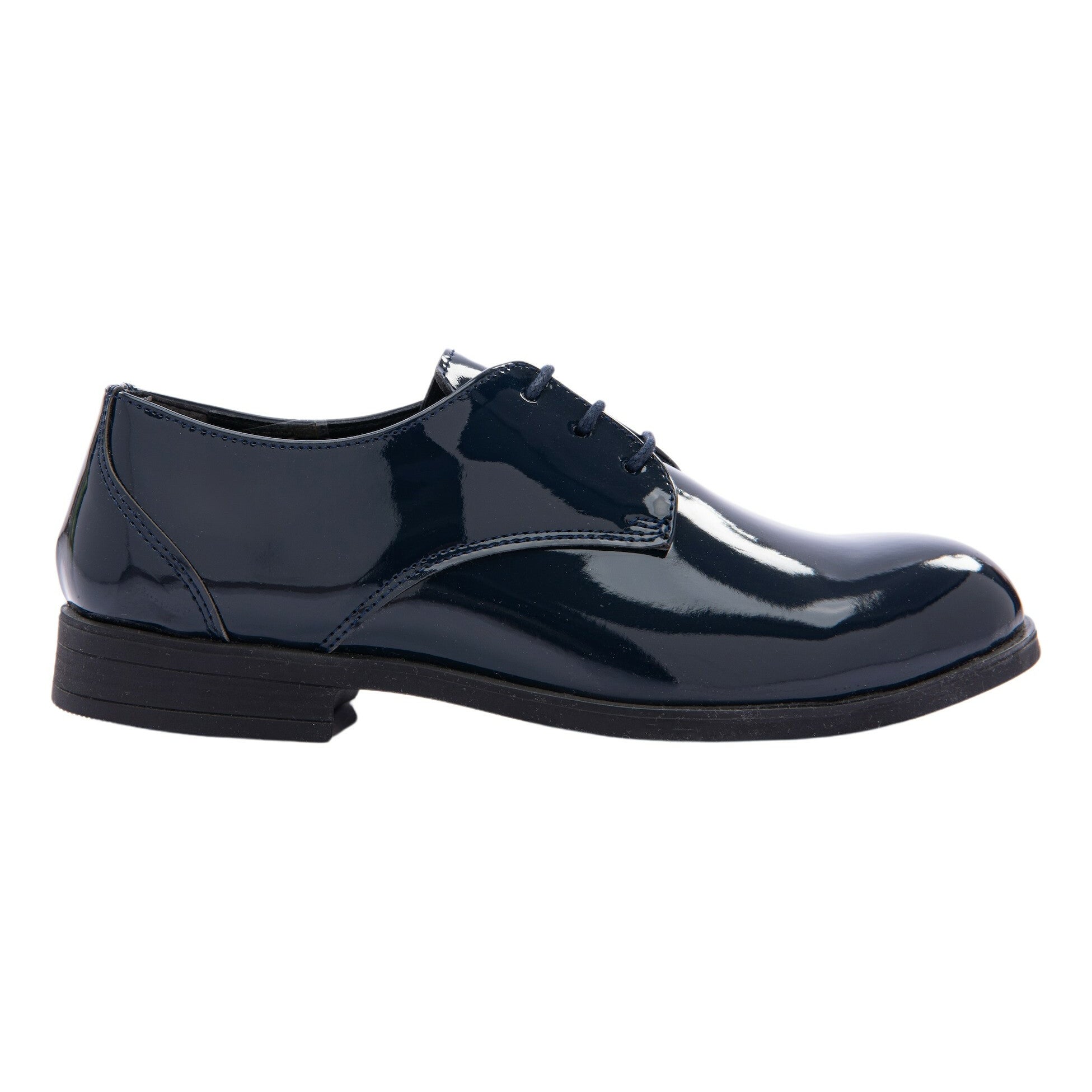 Elevate your little one's formal footwear with the navy open lace patent dress shoes from Moustache. These sophisticated lace-ups exude timeless elegance, perfect for any special occasion.