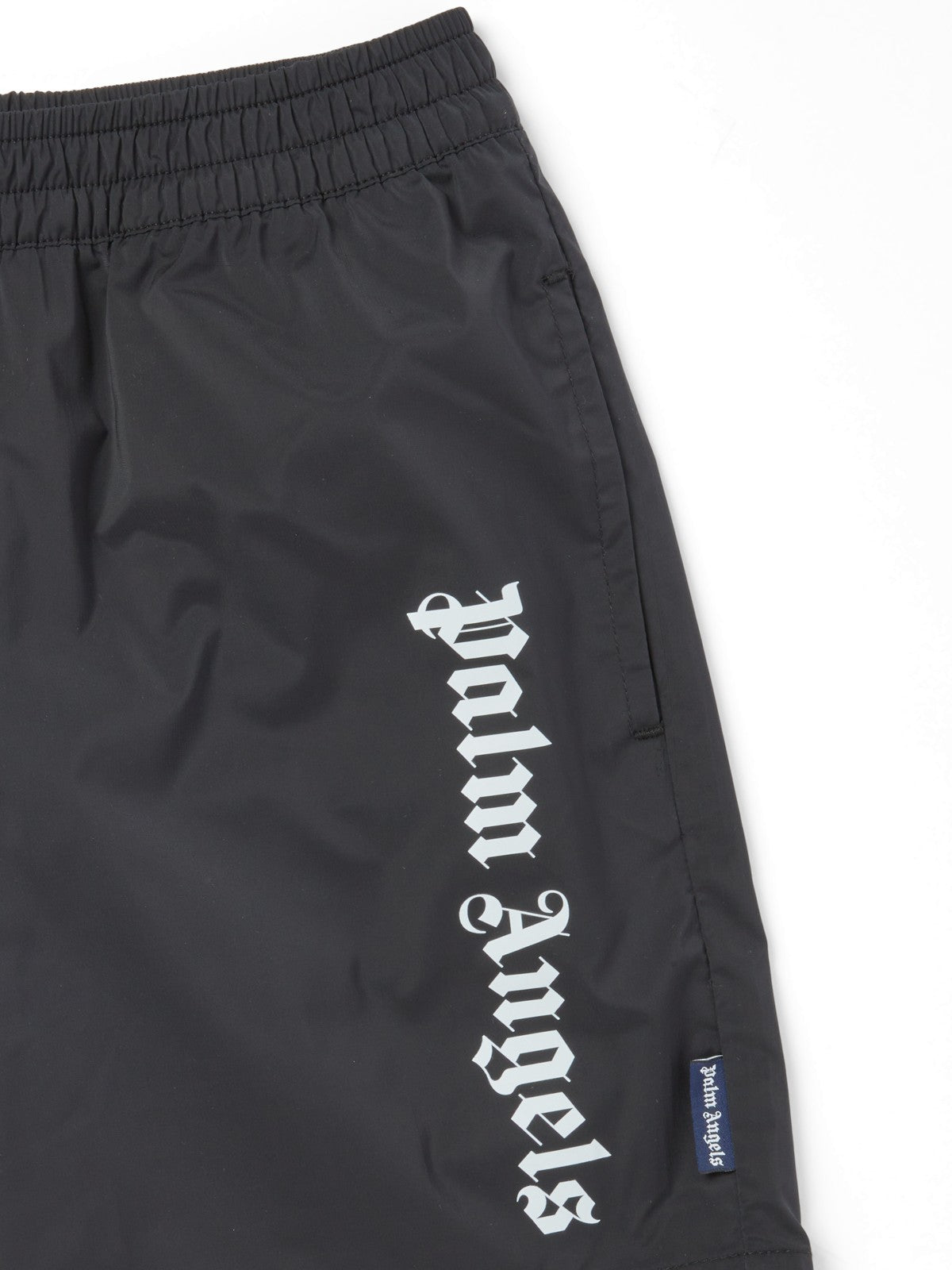 The bold, oversized Palm Angels logo across the front delivers unmistakable brand attitude and instant visual impact. Set against a sleek black backdrop, it creates a striking contrast that makes styling effortless. Pair them with graphic tees, tanks, or an open shirt layered over swimwear for a relaxed yet elevated look that works in any warm-weather setting.