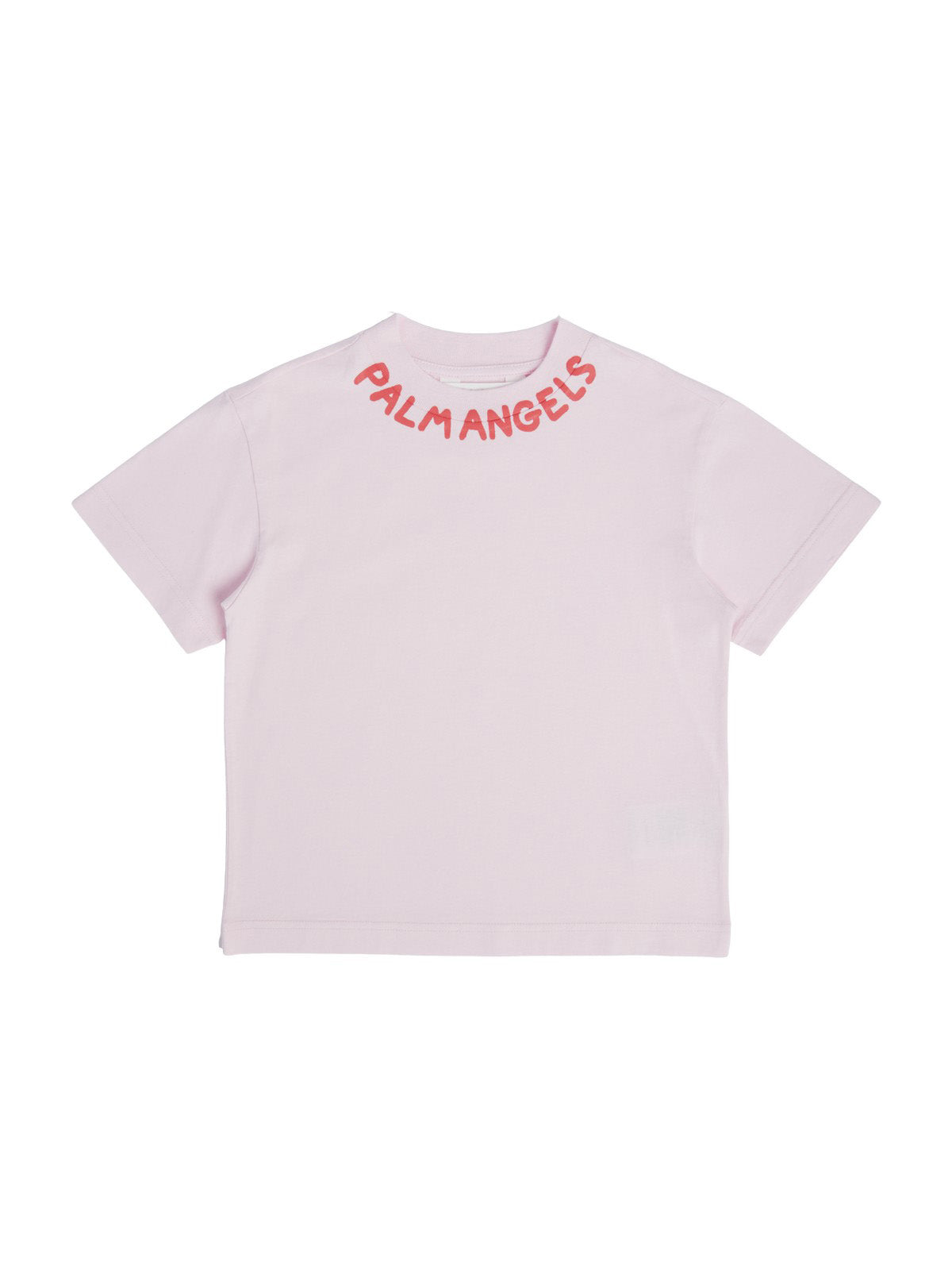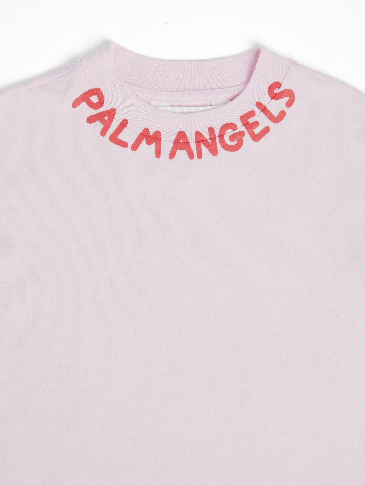 Crafted from soft, breathable cotton in a warm rose pink shade, this short-sleeved tee is comfortable and style-forward. Its standout feature is the black screenprinted Palm Angels logo. The logo wraps around the neckline, creating a striking, high-contrast edge that draws instant attention.