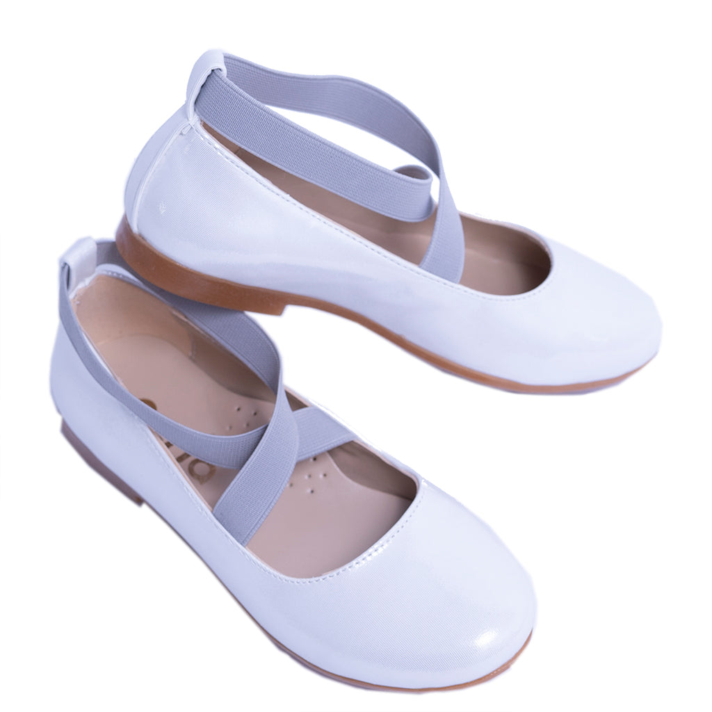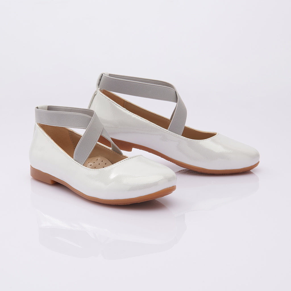PERLA-V50B-WHITE/GREY-SATIN BALLERINA FLATS