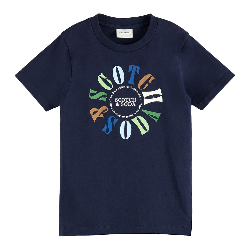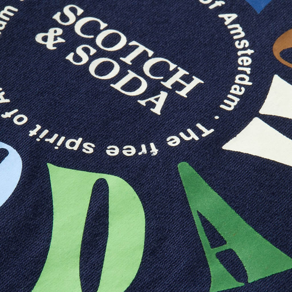 A graphic-forward staple with heritage flair, this navy short-sleeved tee features a bold circular logo print in vibrant tones. The layered typography and “Spirit of Amsterdam” motif celebrate brand identity with playful energy. Crafted in soft cotton jersey, it’s ideal for everyday wear with a standout twist.