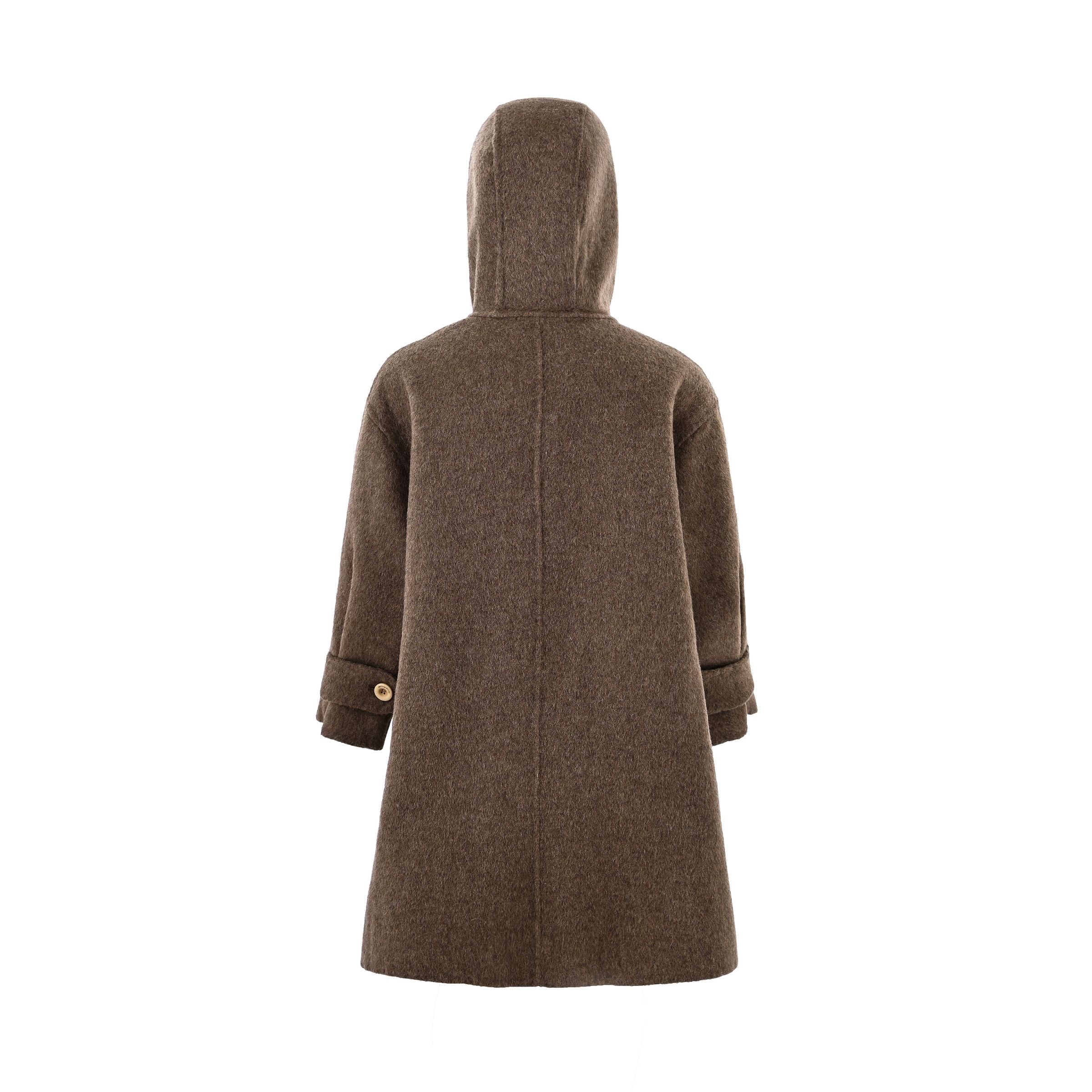 Brown Hooded Wool Coat & Mittens Set