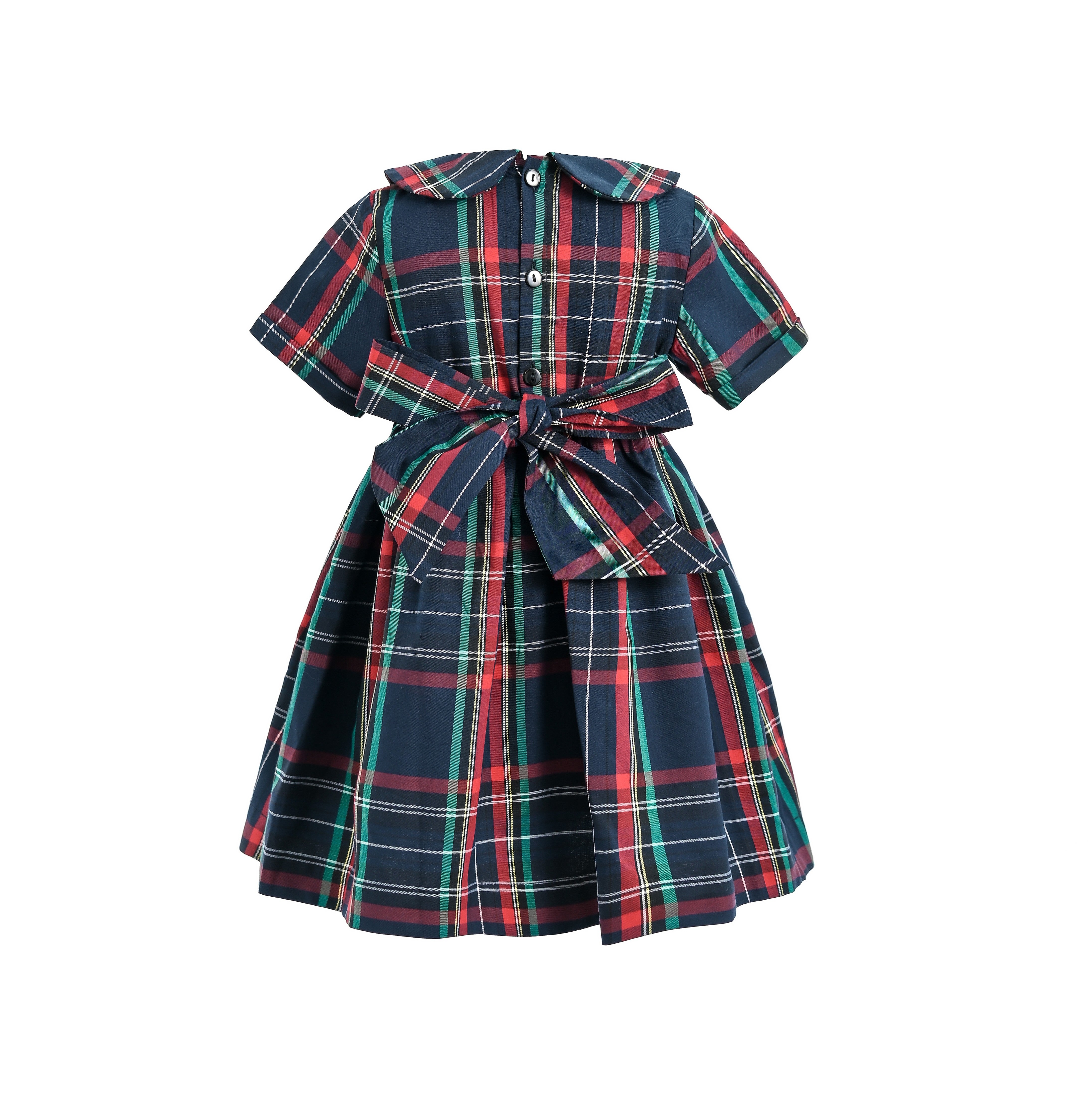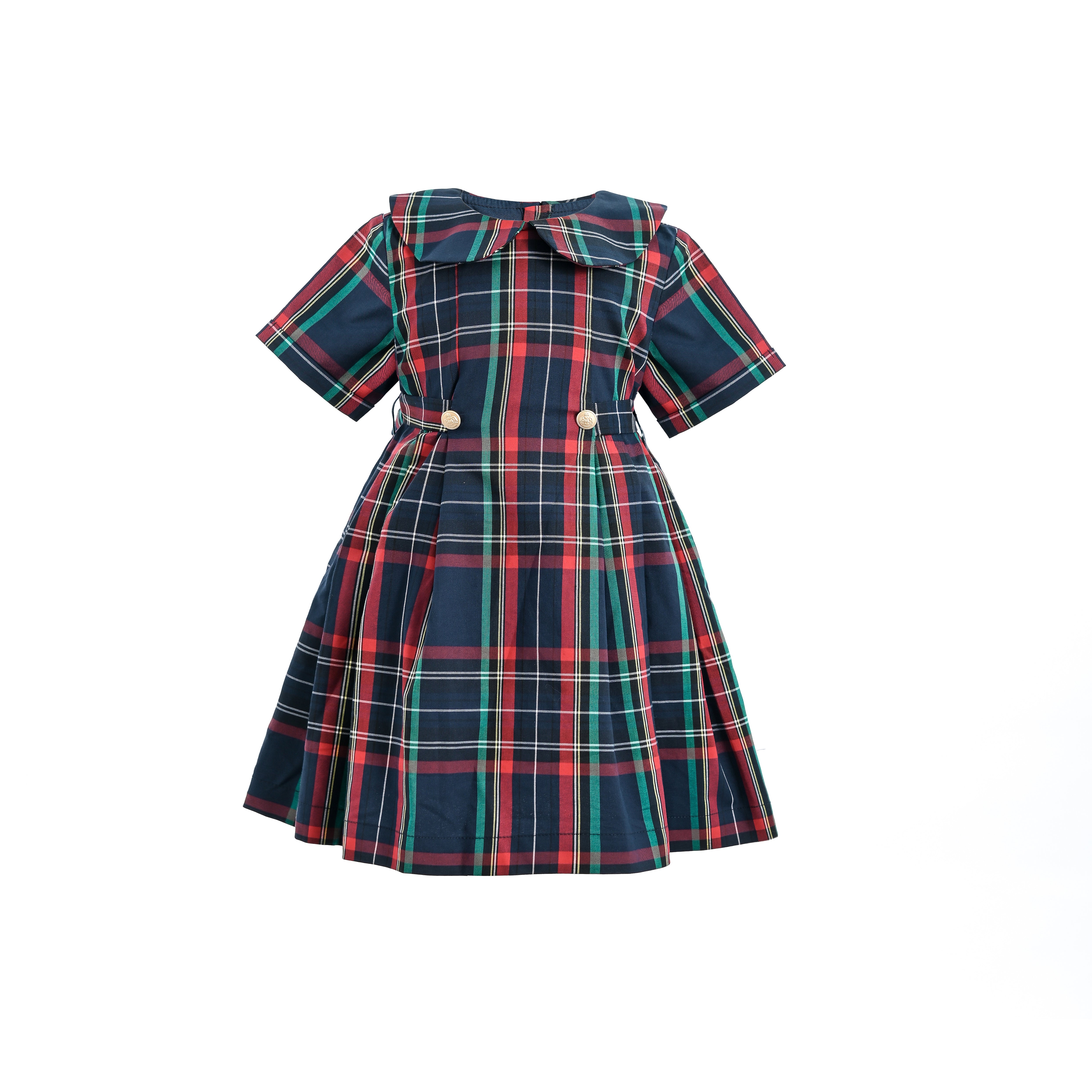 Navy & Red Plaid Button-Waist Dress