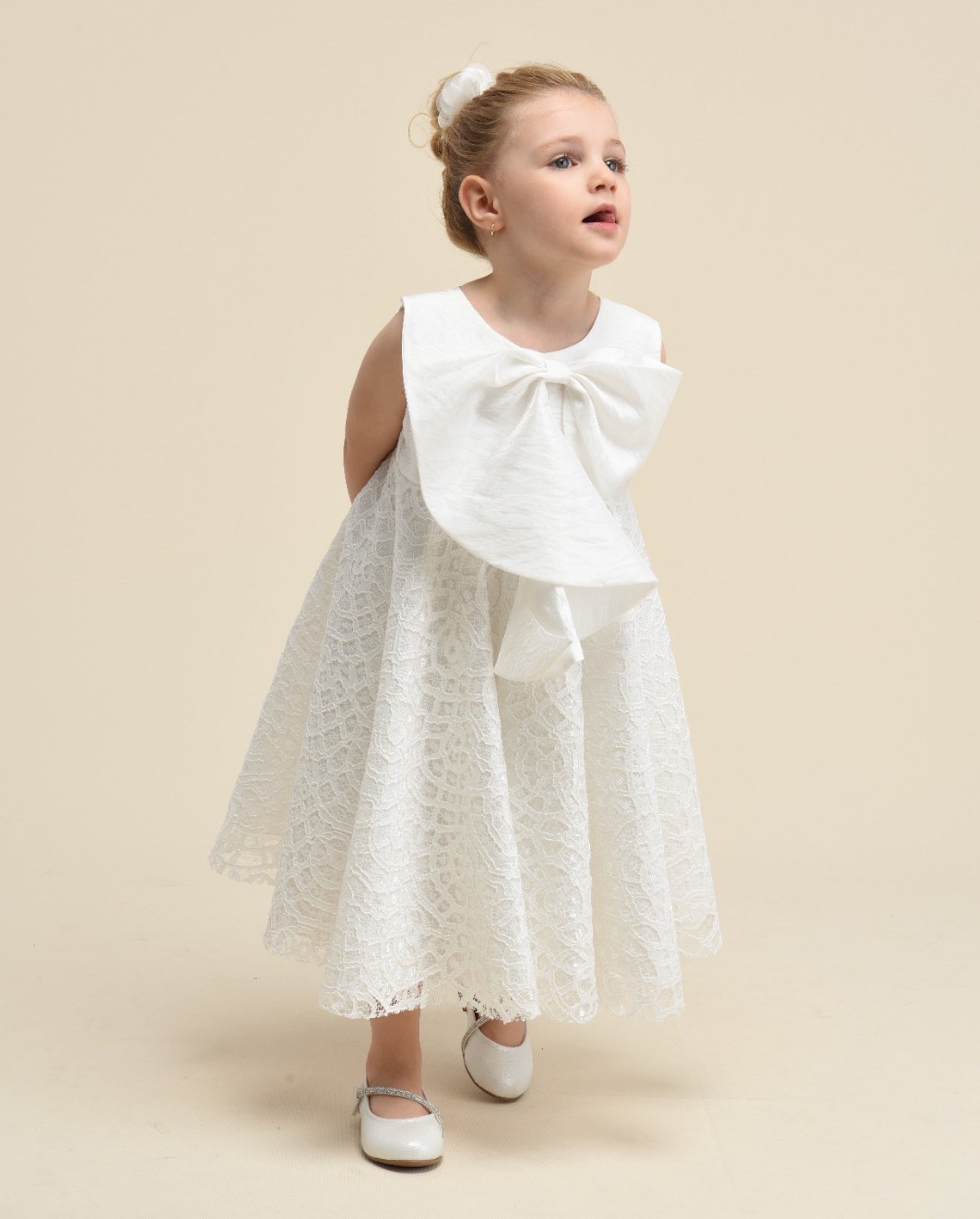 The Cream Pamela Embroidered Dress for kid and baby girls from Tulleen is an elegant and subtle choice for any special occasion. This dress features a sleeveless cut with a high-waisted embroidered skirt, adding a touch of sophistication. Moreover, the lightweight tulle bow at the neck completes the look, adding a delicate and charming detail.