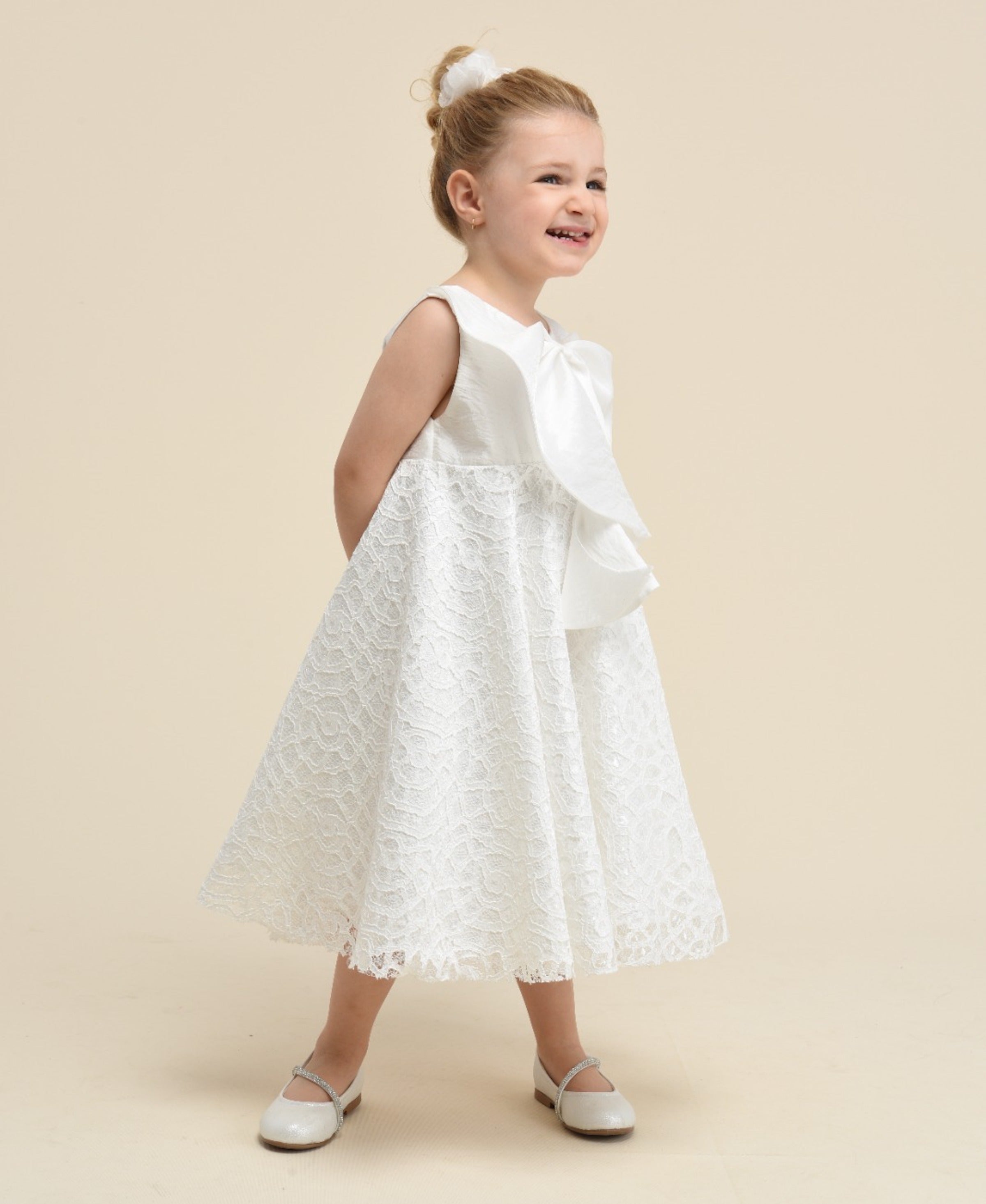 Additionally, it is designed to be dry cleaned only, maintaining its pristine and luxurious appearance over time. Overall, the Cream Pamela Embroidered Dress combines elegance, comfort, and beautiful design elements, making it a perfect addition to any young girl's wardrobe. This dress ensures your child looks and feels special at any event.