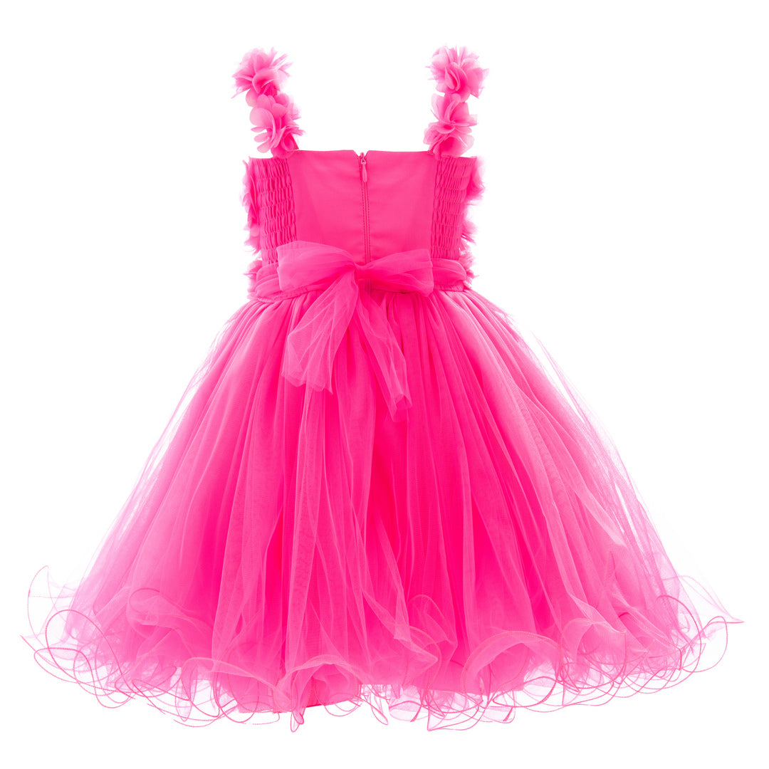 Overall, the Neon Pink Rose Campanula Dress combines bold elegance, comfort, and intricate design elements, making it a perfect addition to any young girl's wardrobe. This dress ensures your child looks and feels special at any event.
