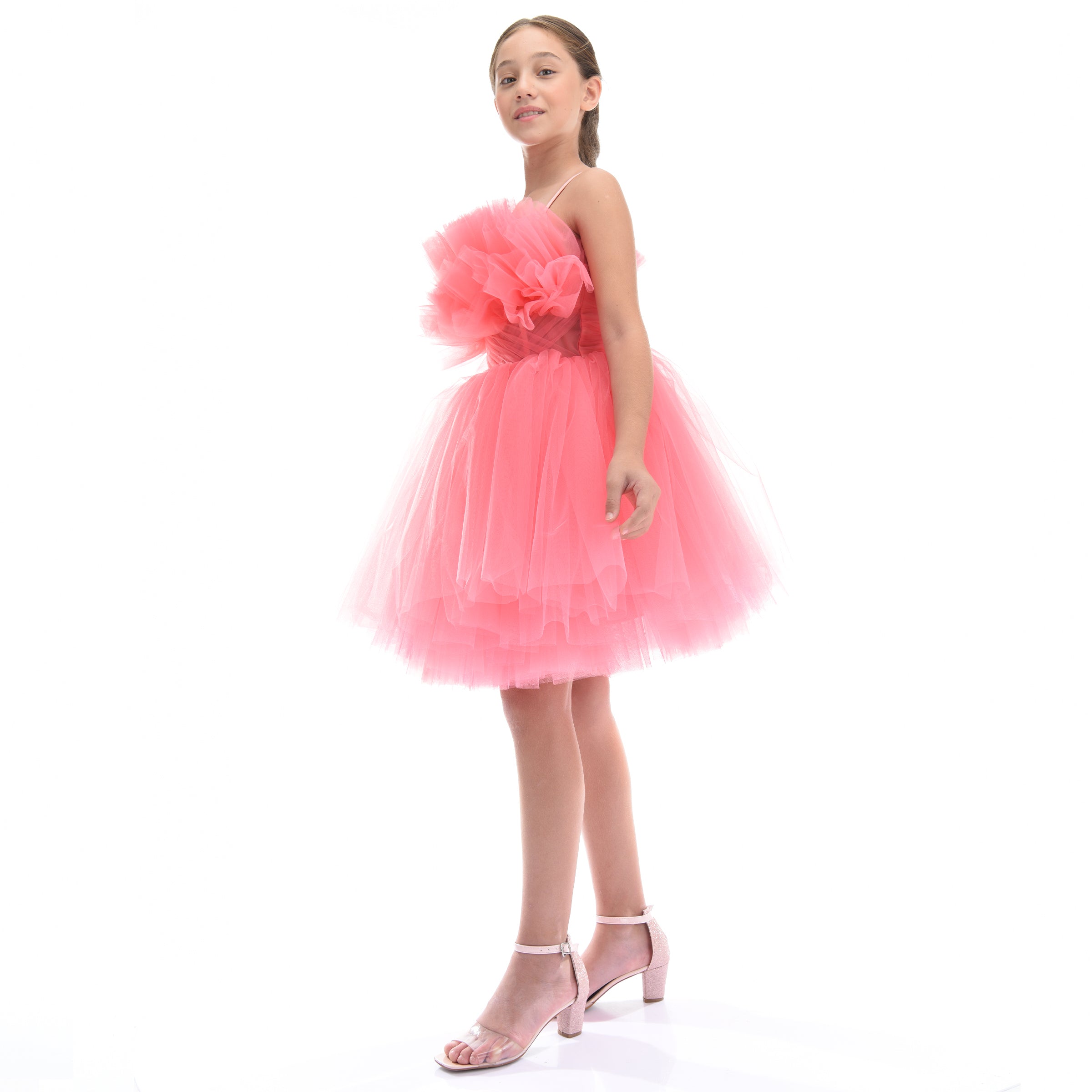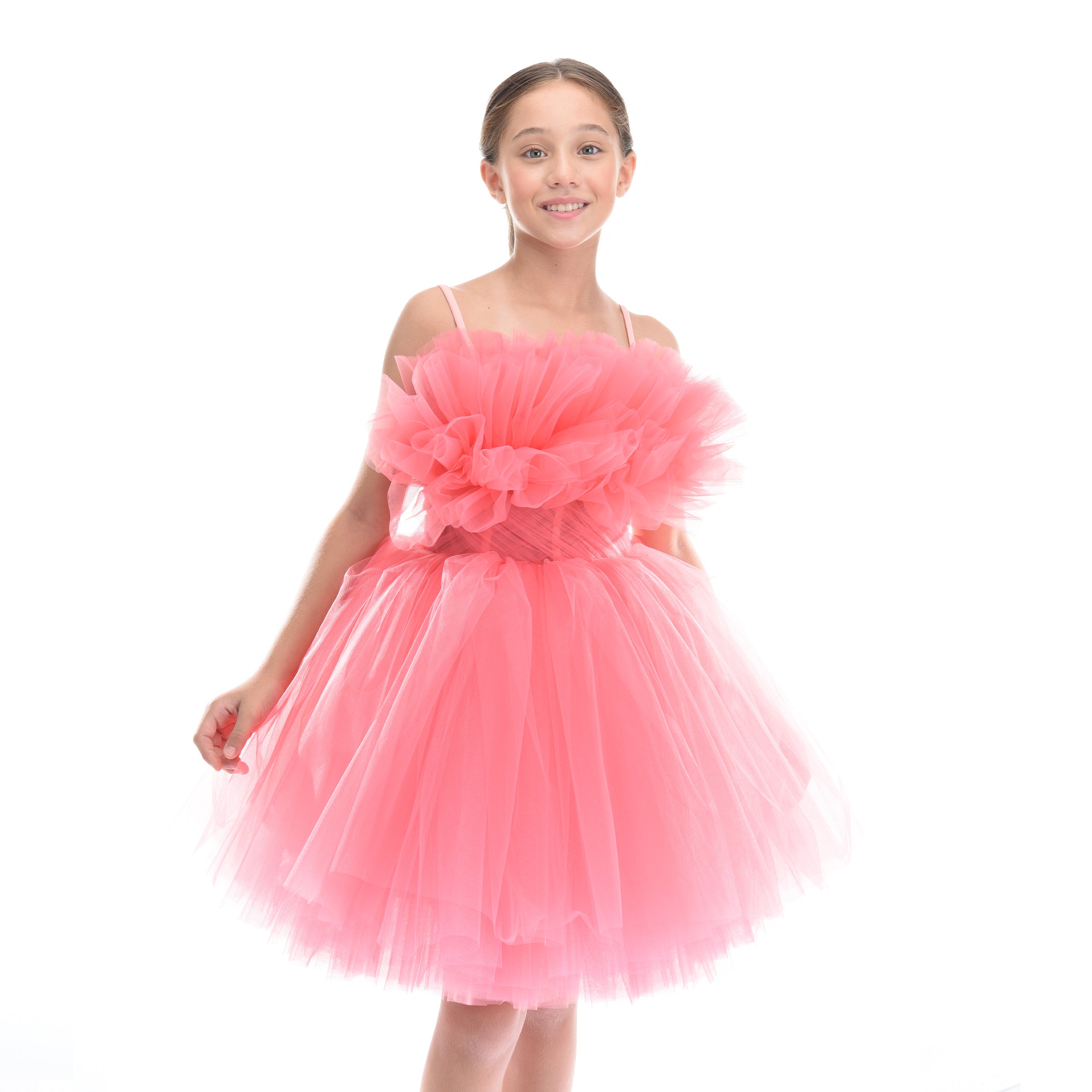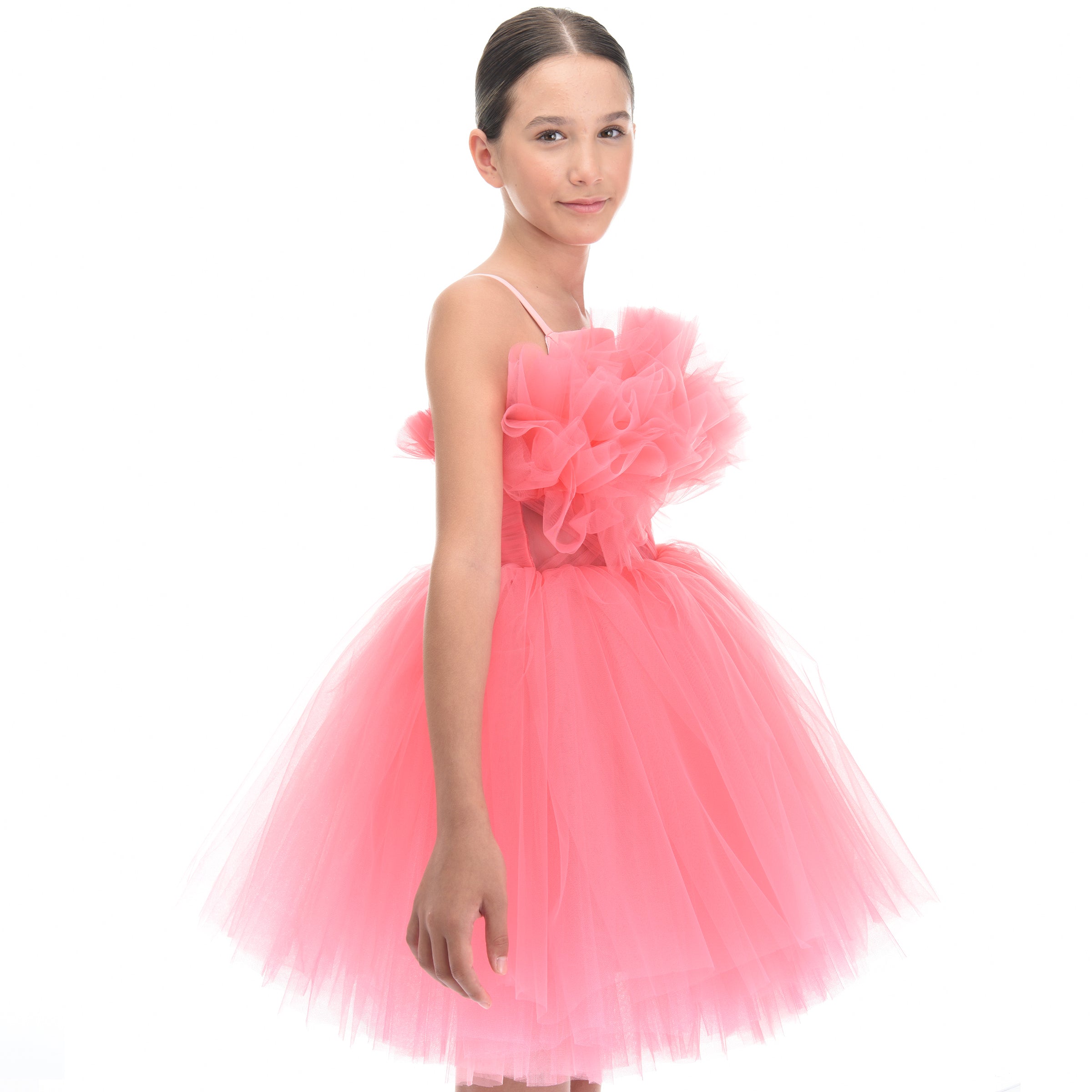 A must-have for the stylish young girl, the Pink Ruffle Scalleta Dress by Tulleen combines playful elegance with timeless appeal, making it an essential piece in any wardrobe.