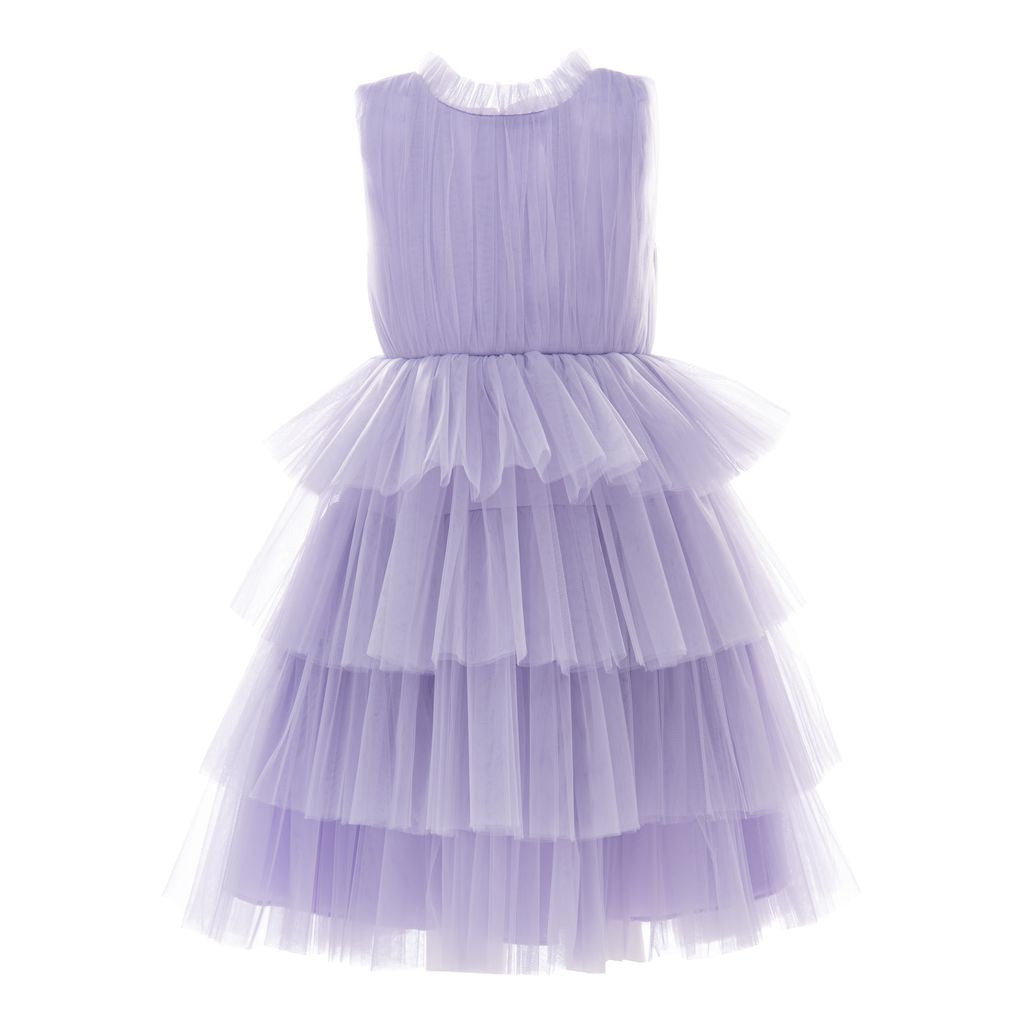 The Purple Farvue Sleeveless Tiered Tulle Dress for kid girls from Tulleen combines charm and elegance. This dress features a lightweight tulle sleeveless bodice, ensuring comfort and freedom of movement. Additionally, the layered tiers of tulle cascade from the hem down, creating a playful and enchanting silhouette.