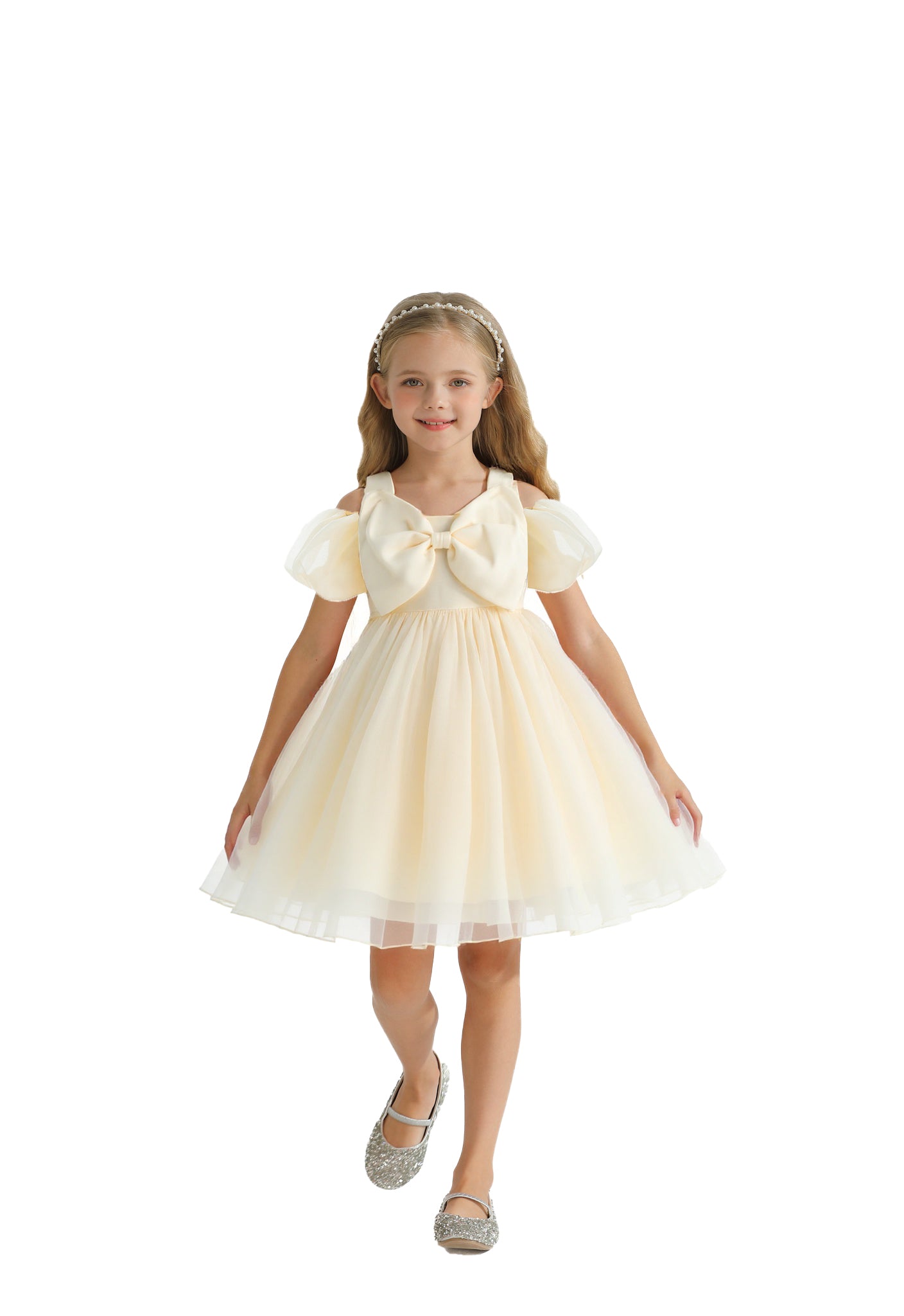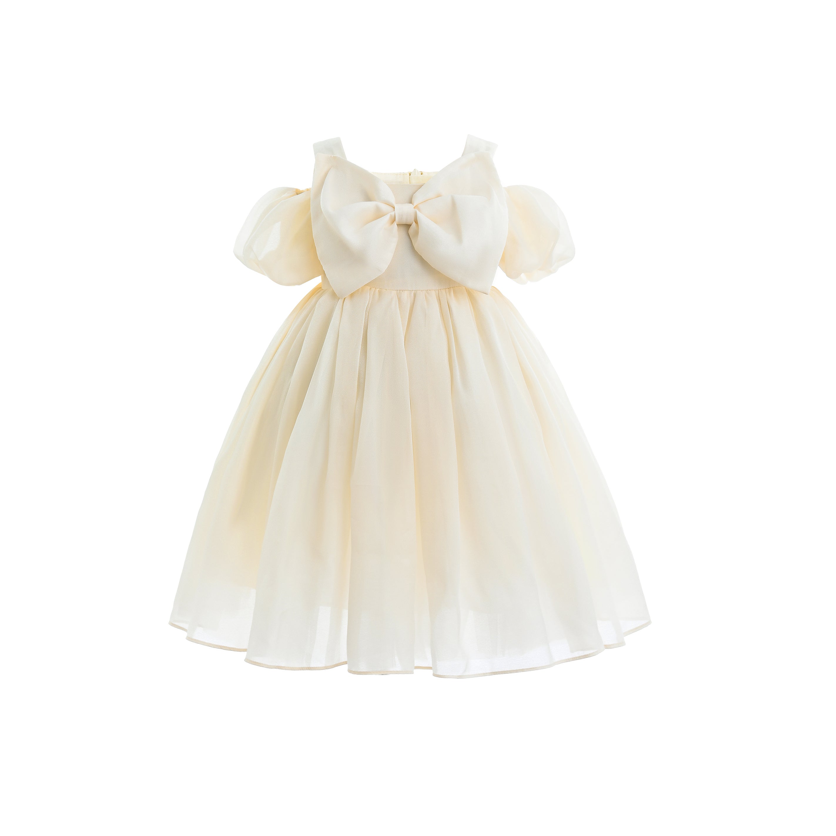 Crafted from light, breathable fabric, it ensures effortless comfort whether for dancing, photos, or special gatherings. The Ivory Bow Modenna Dress combines classic sophistication with a hint of playful charm, making every occasion feel extra memorable.