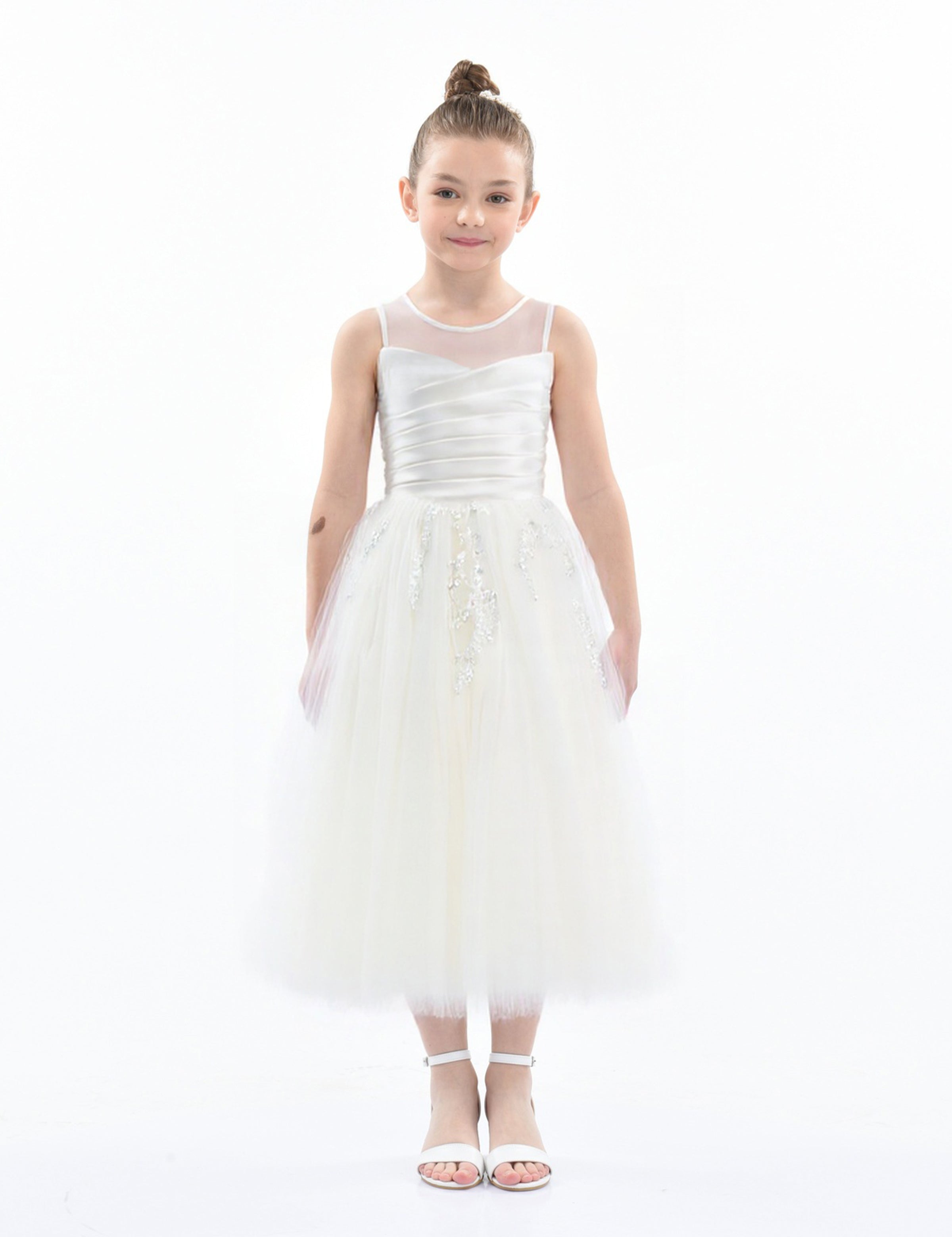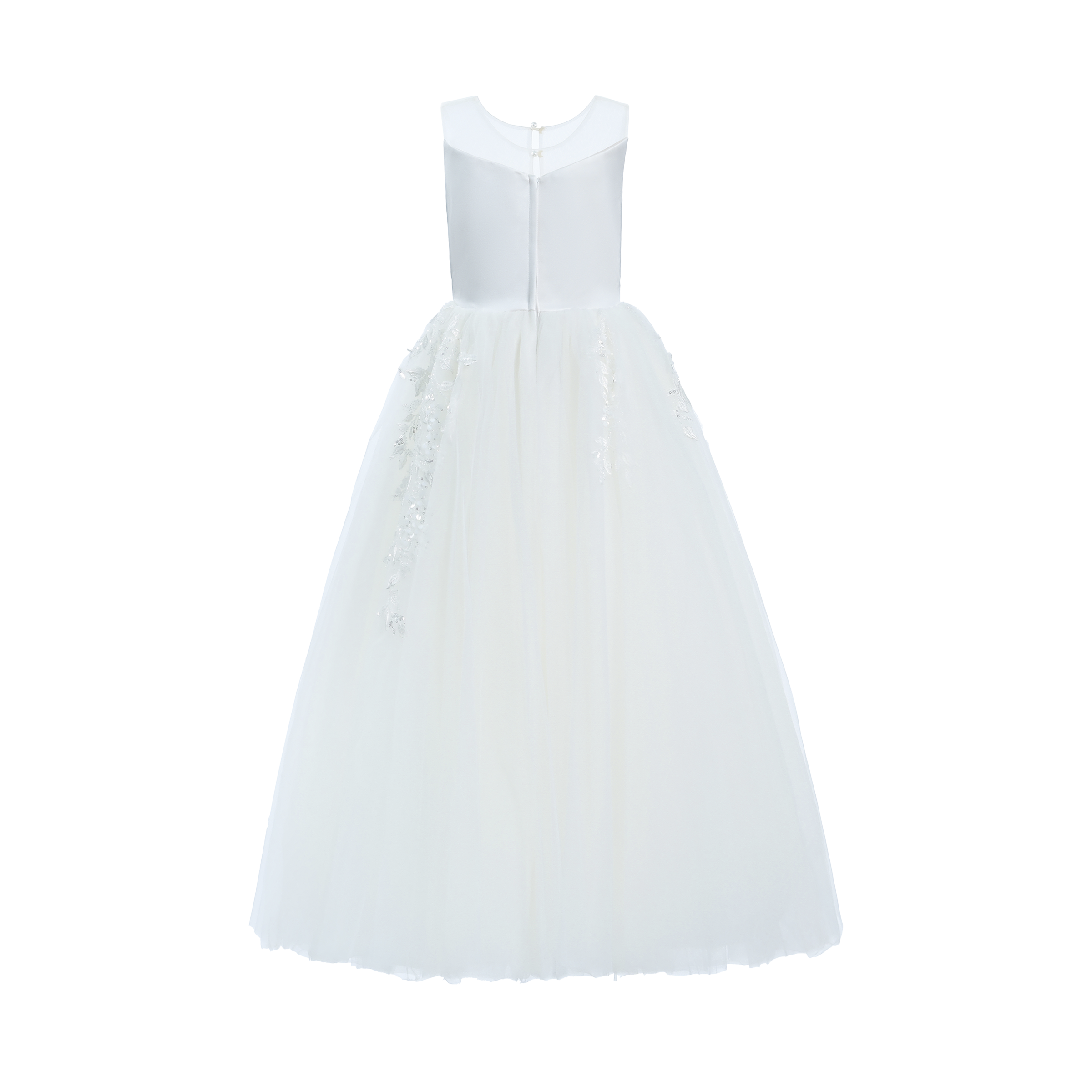 Introducing the elegant White Sleeveless Vivian Dress by Tulleen, a breathtaking blend of modern sophistication and timeless grace for little girls. Designed in a stunning white hue, this gown exudes purity and refinement, making it a perfect choice for special occasions.