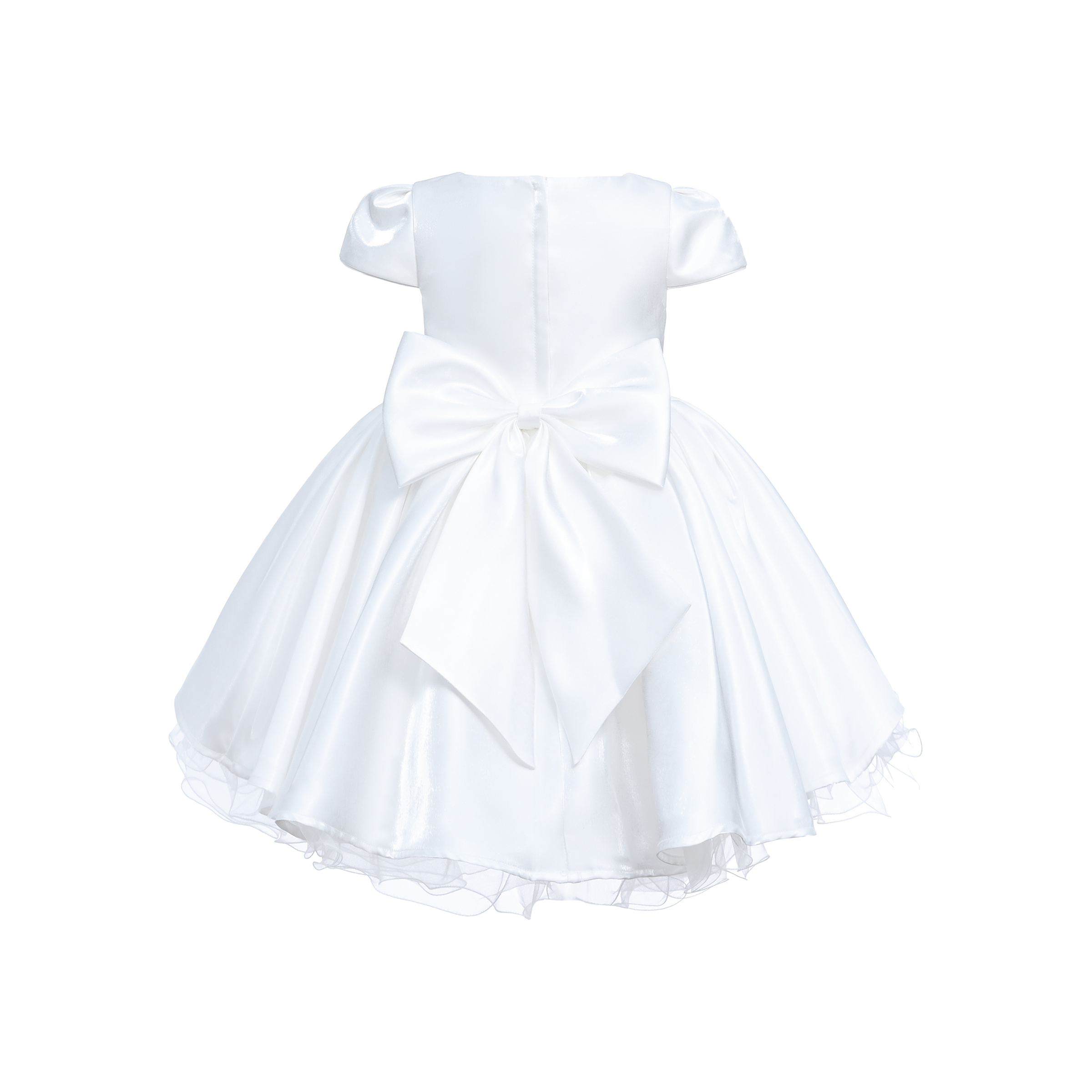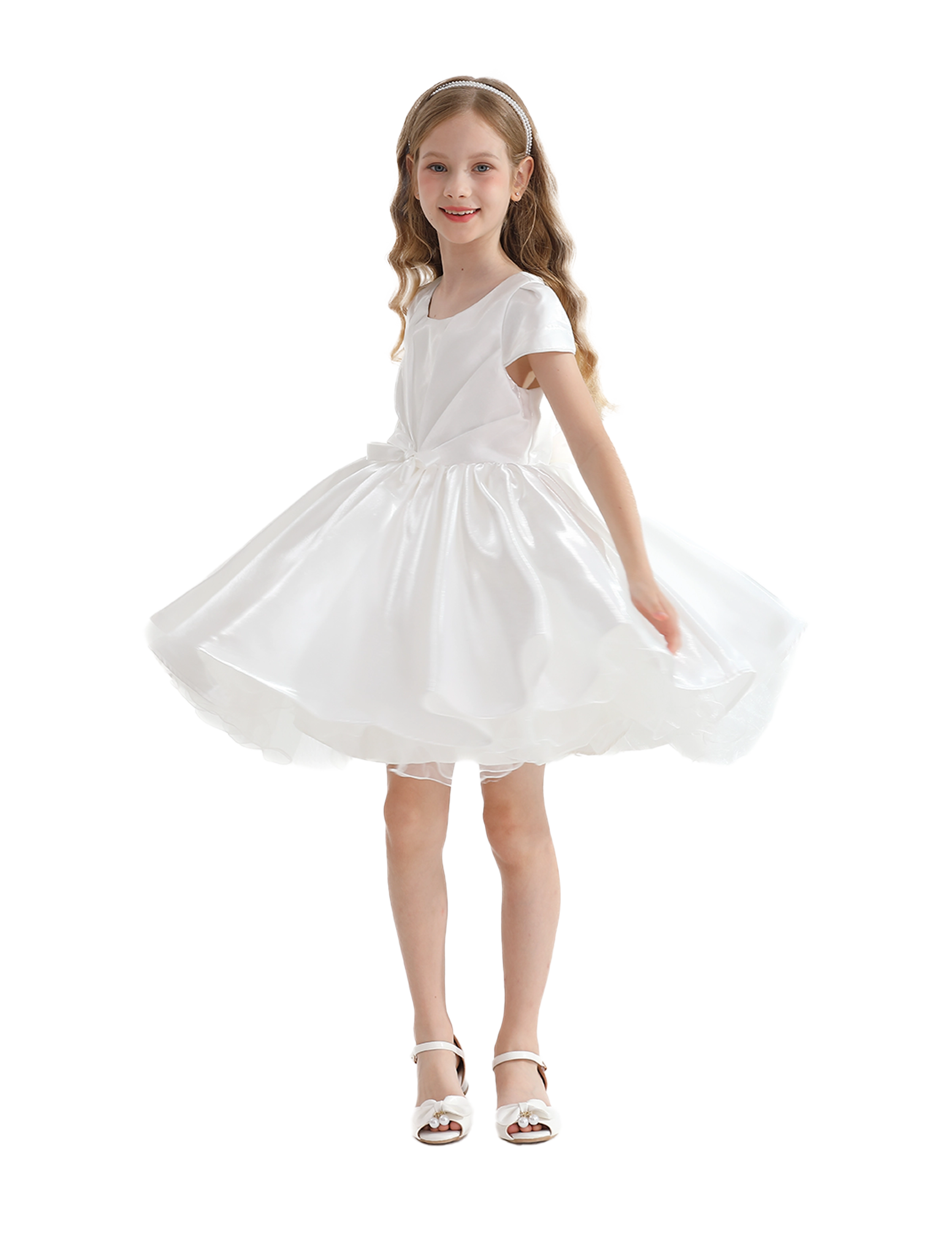 Introducing the White Bow Short Solera Dress by Tulleen, a graceful fusion of timeless elegance and youthful charm. Featuring a soft, lustrous white satin hue, this short dress radiates purity and sophistication, making it perfect for any occasion.