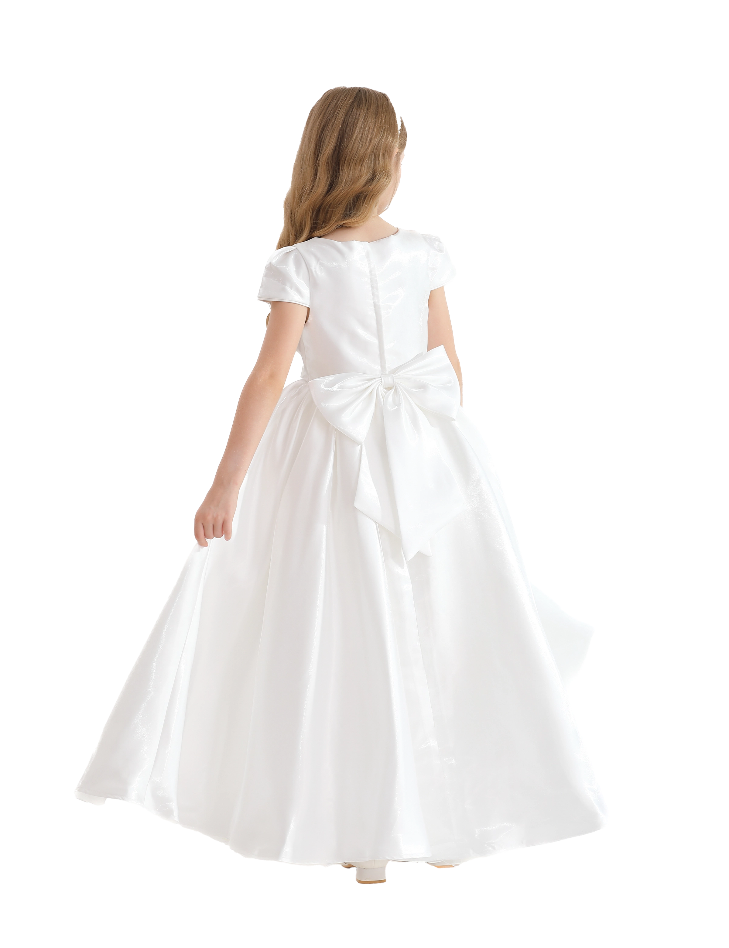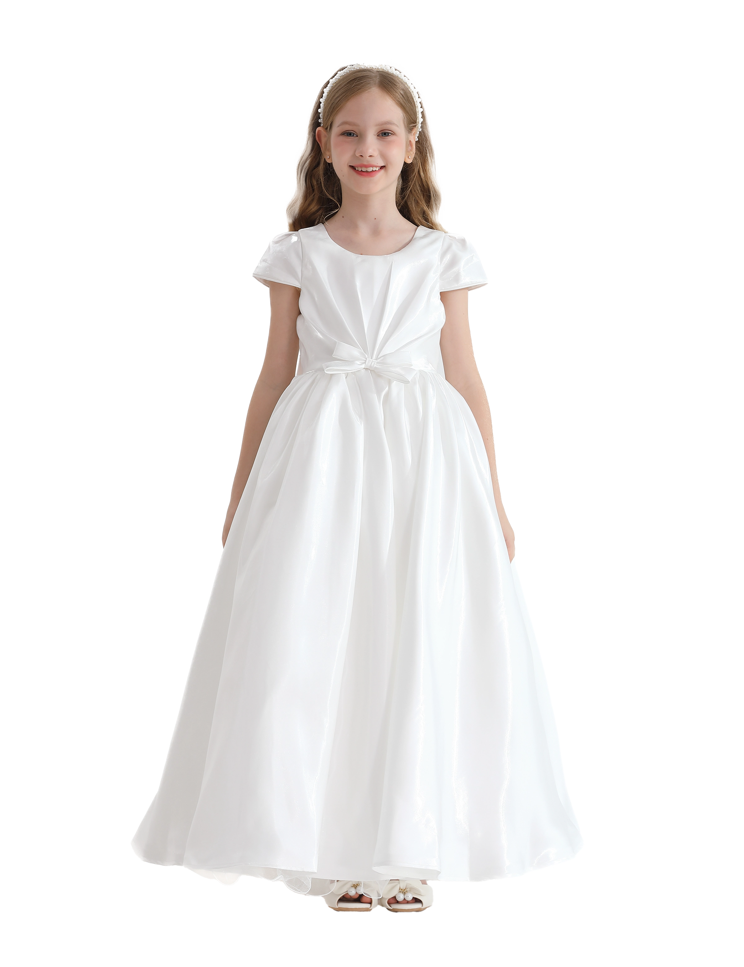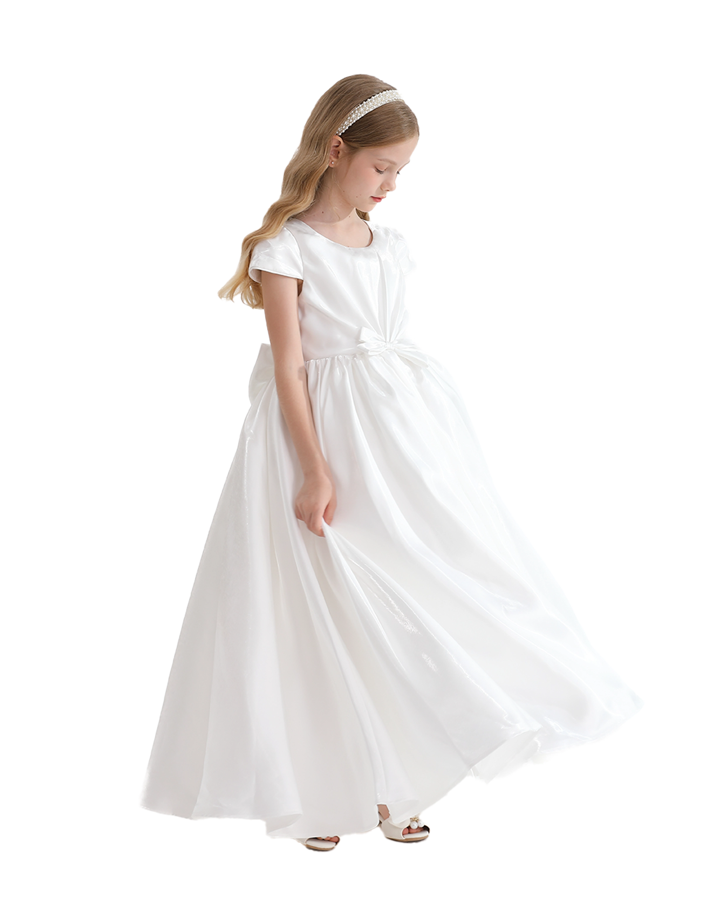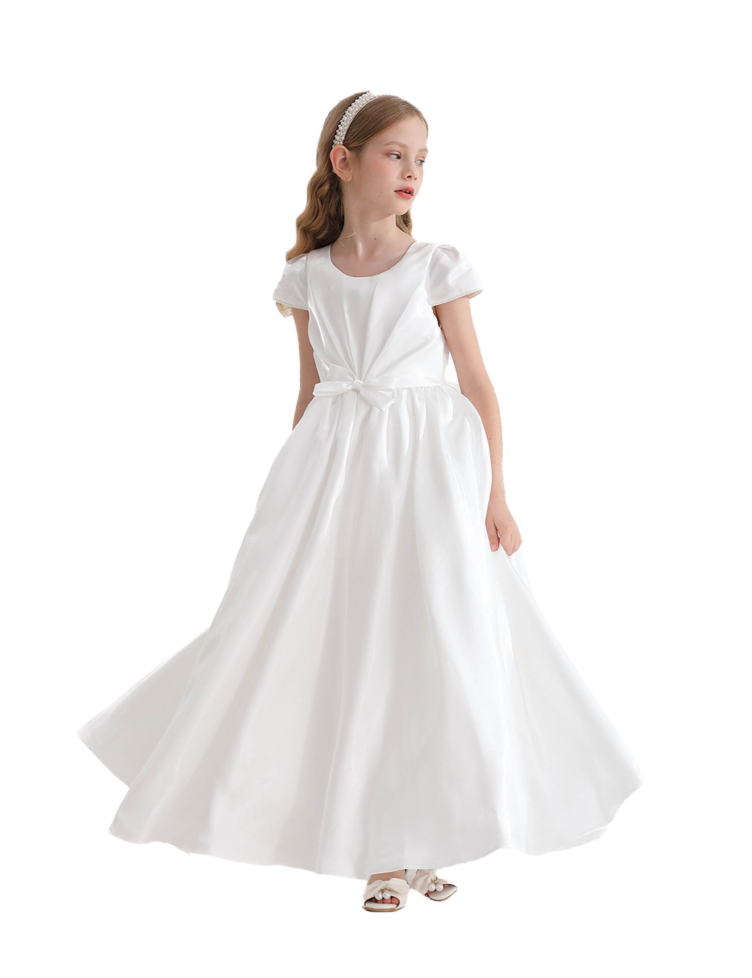 The White Bow Long Brea Dress by Tulleen is an essential piece for young girls who desire both beauty and comfort, making it the perfect choice for those who wish to stand out in a classic, stylish way.