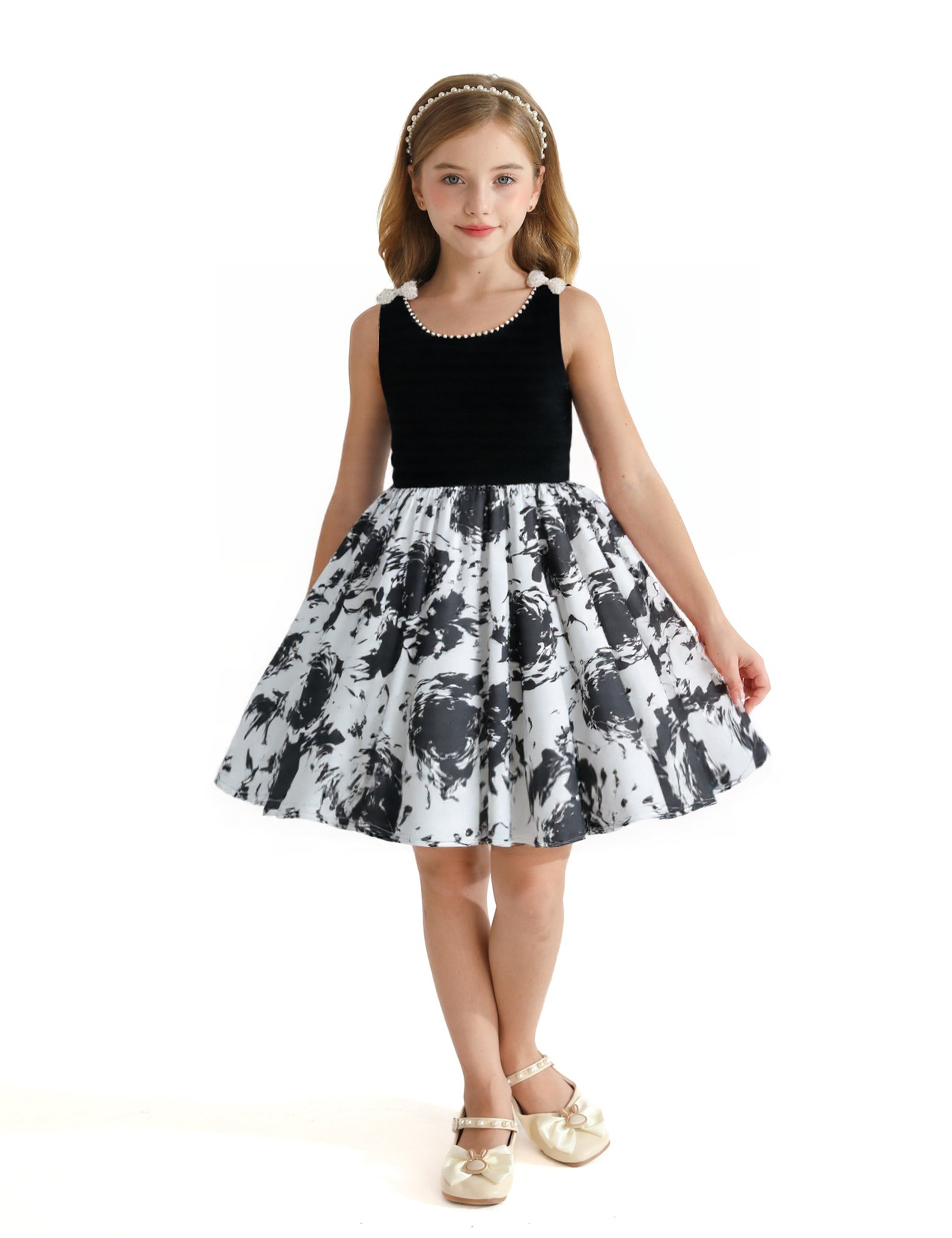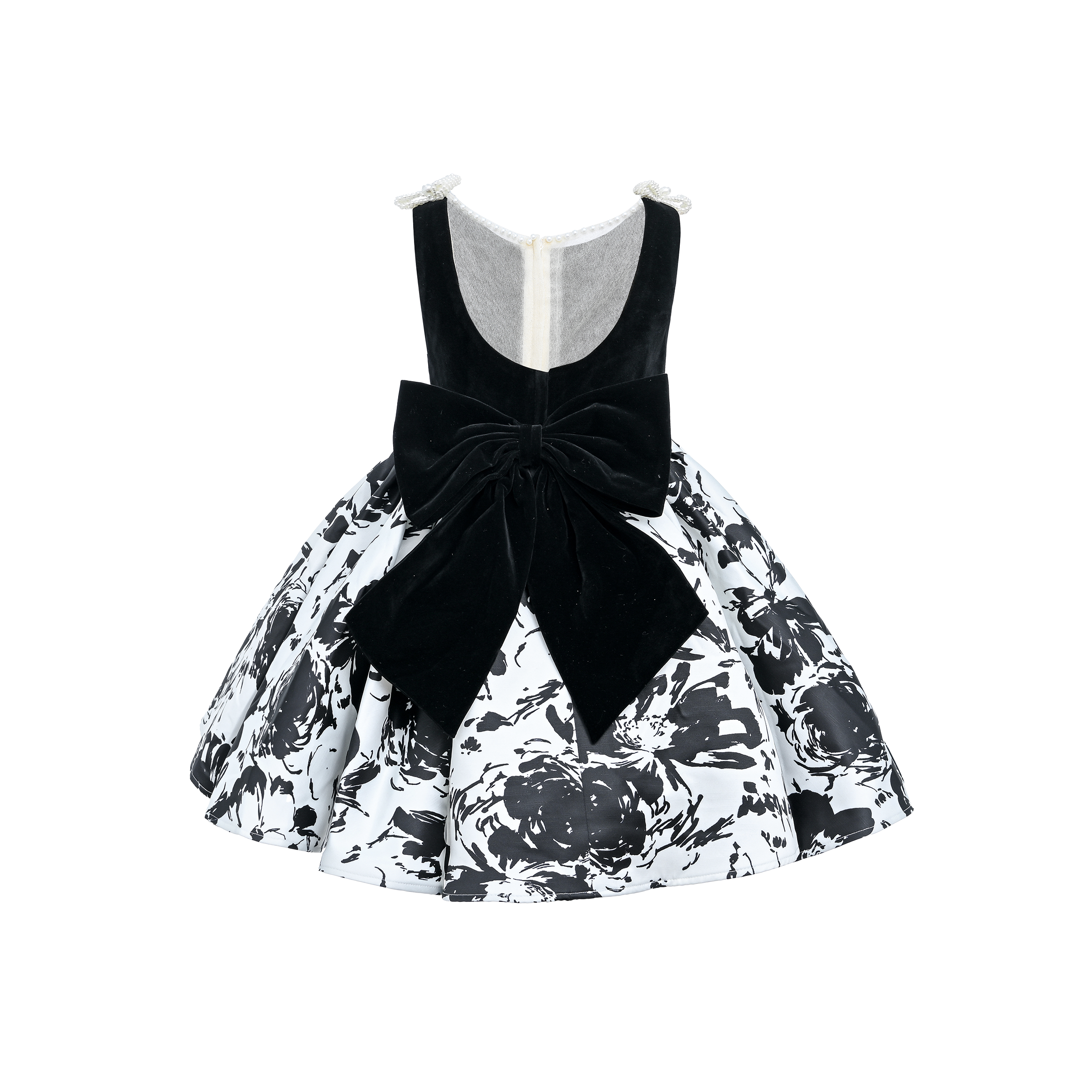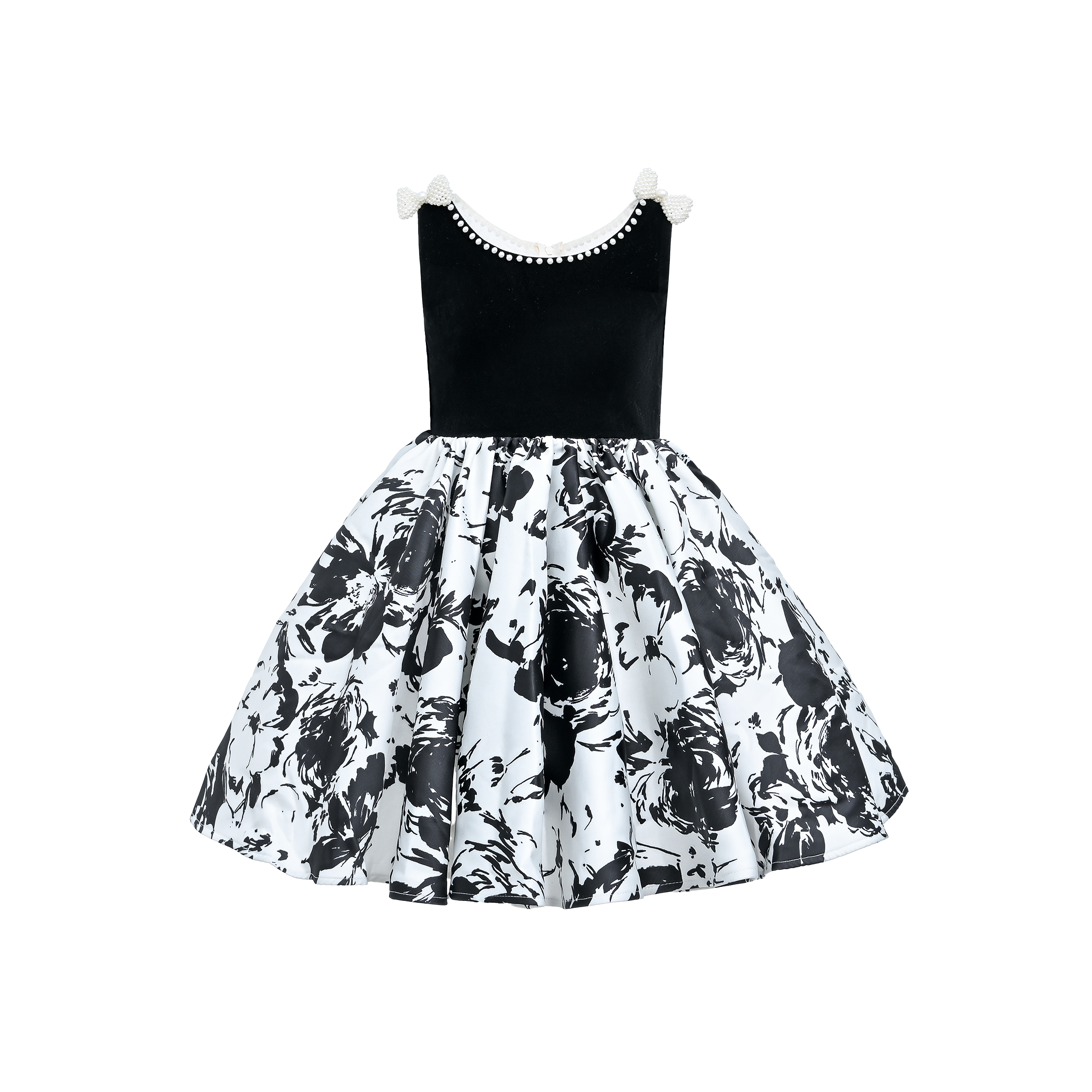 Introducing the striking Black and White Abstract Maitland Dress by Tulleen, a bold and artistic statement piece designed for young girls with a flair for fashion. Showcasing a timeless black and white palette, this dress features an abstract, modern art-inspired design that radiates creativity and individuality.
