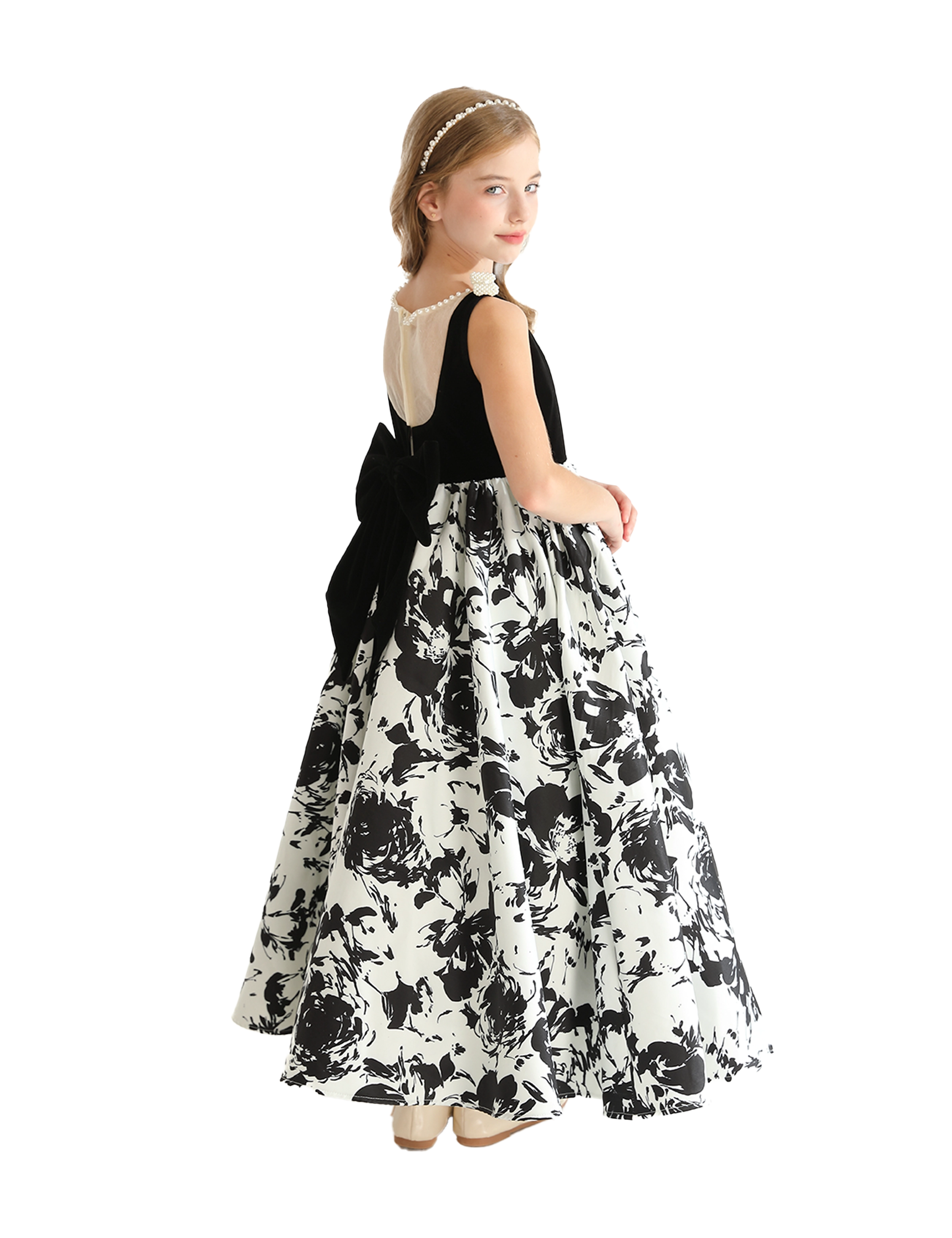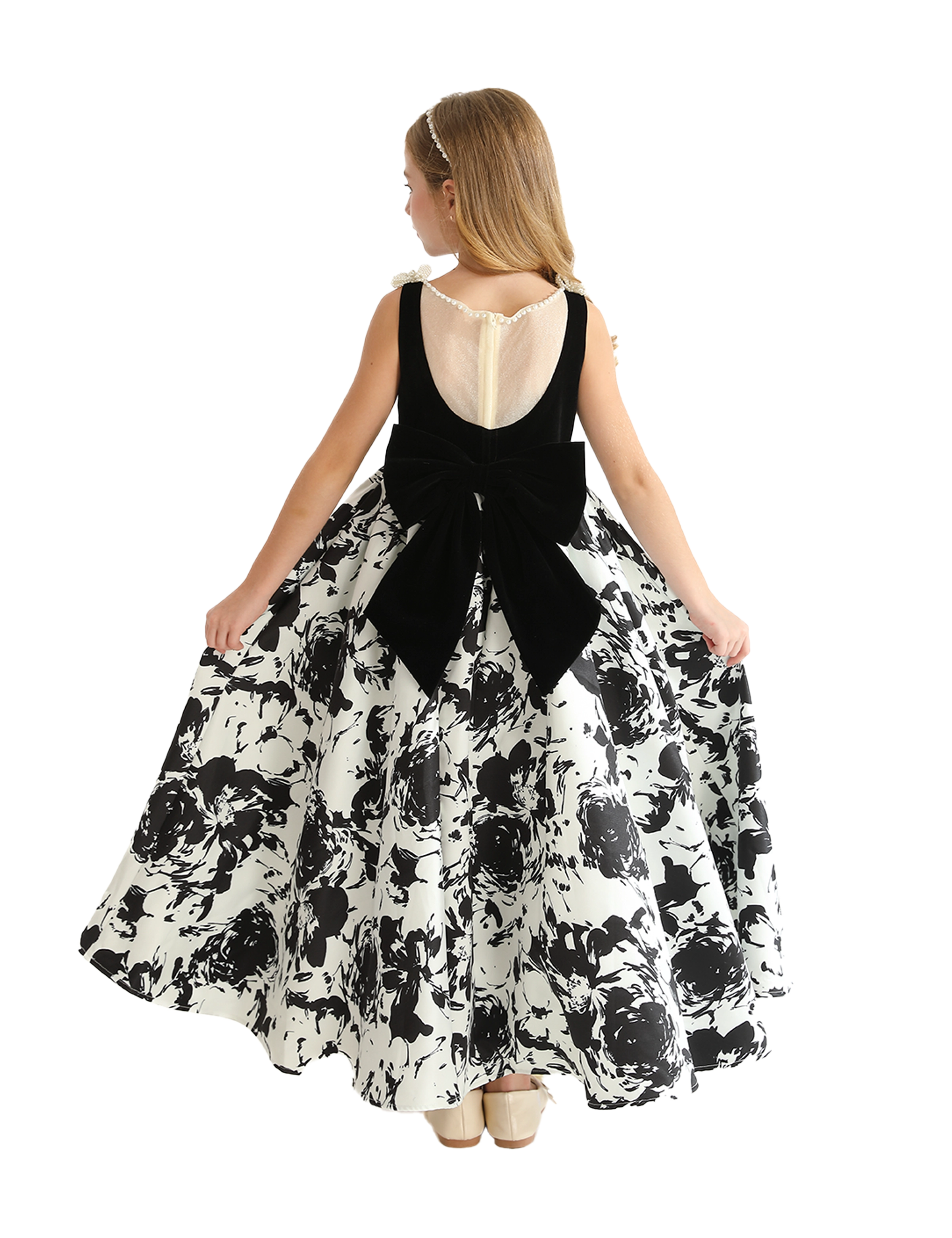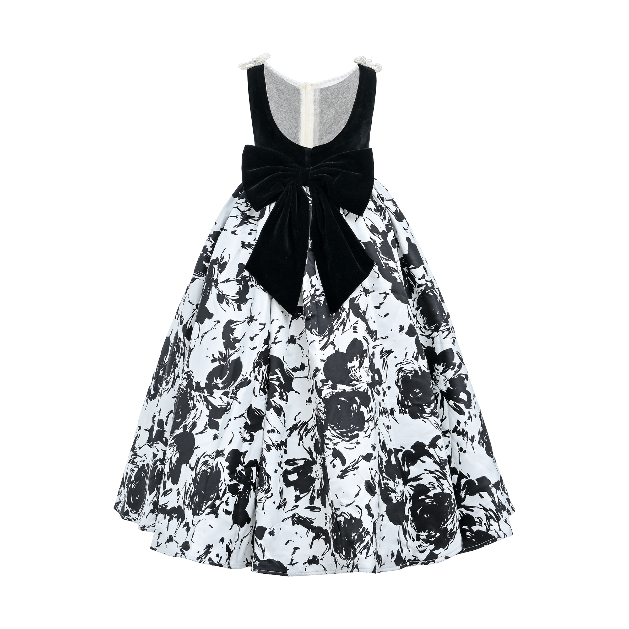 Introducing the captivating Black and White Abstract Dalmeny Dress by Tulleen, a striking piece designed to make a bold statement for young girls. This elegant dress features a timeless black and white color palette, enhanced by an abstract modern art-inspired silhouette that exudes creativity and flair.