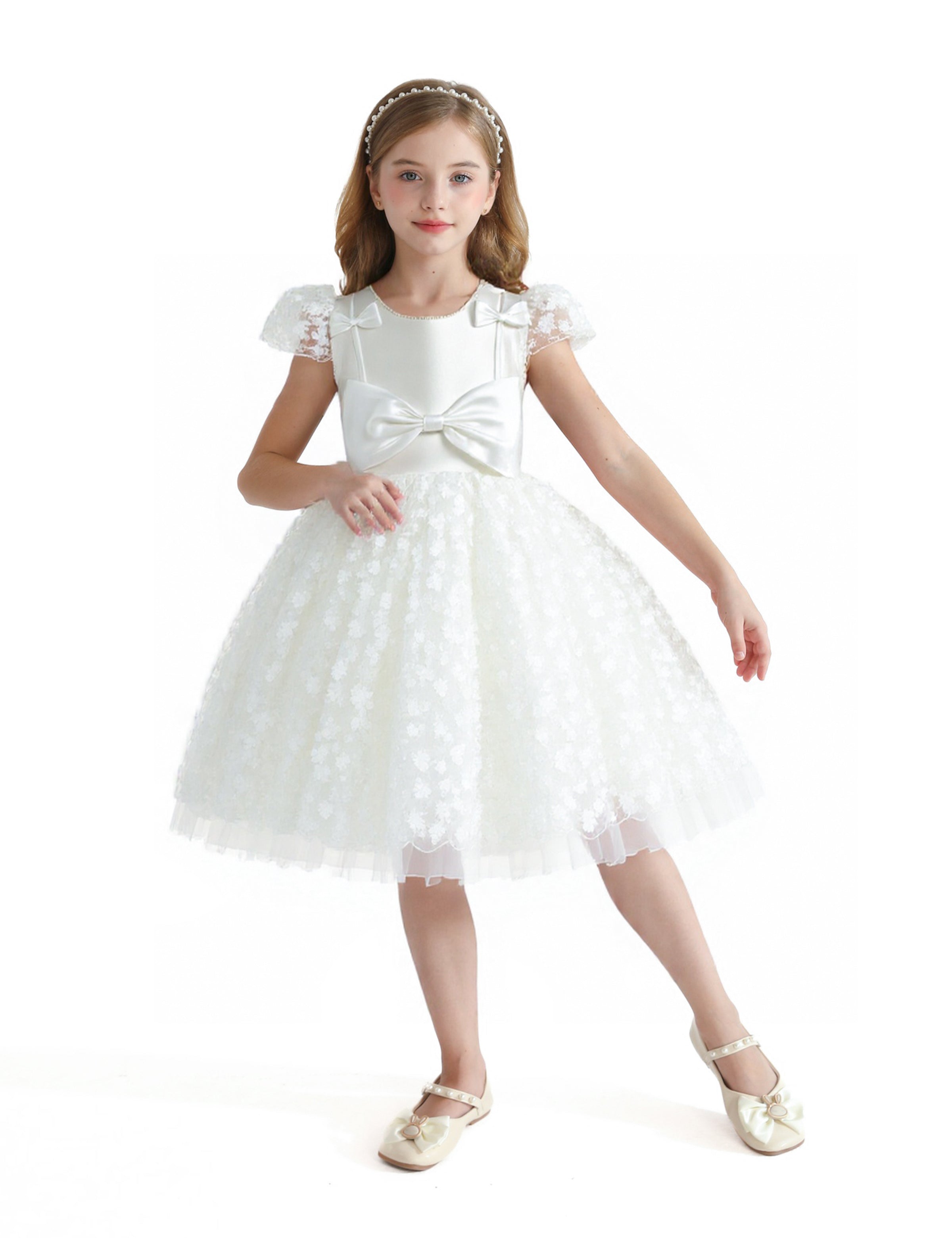 Designed for young fashionistas who adore elegance with a playful twist, the White Floral Bow Upton Dress by Tulleen is a stunning wardrobe essential, combining exquisite craftsmanship with effortless beauty.