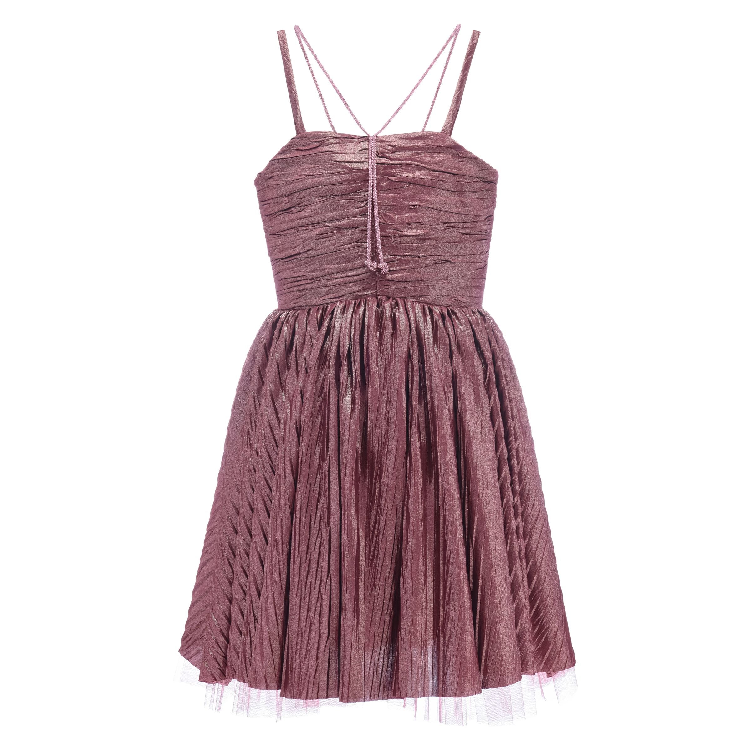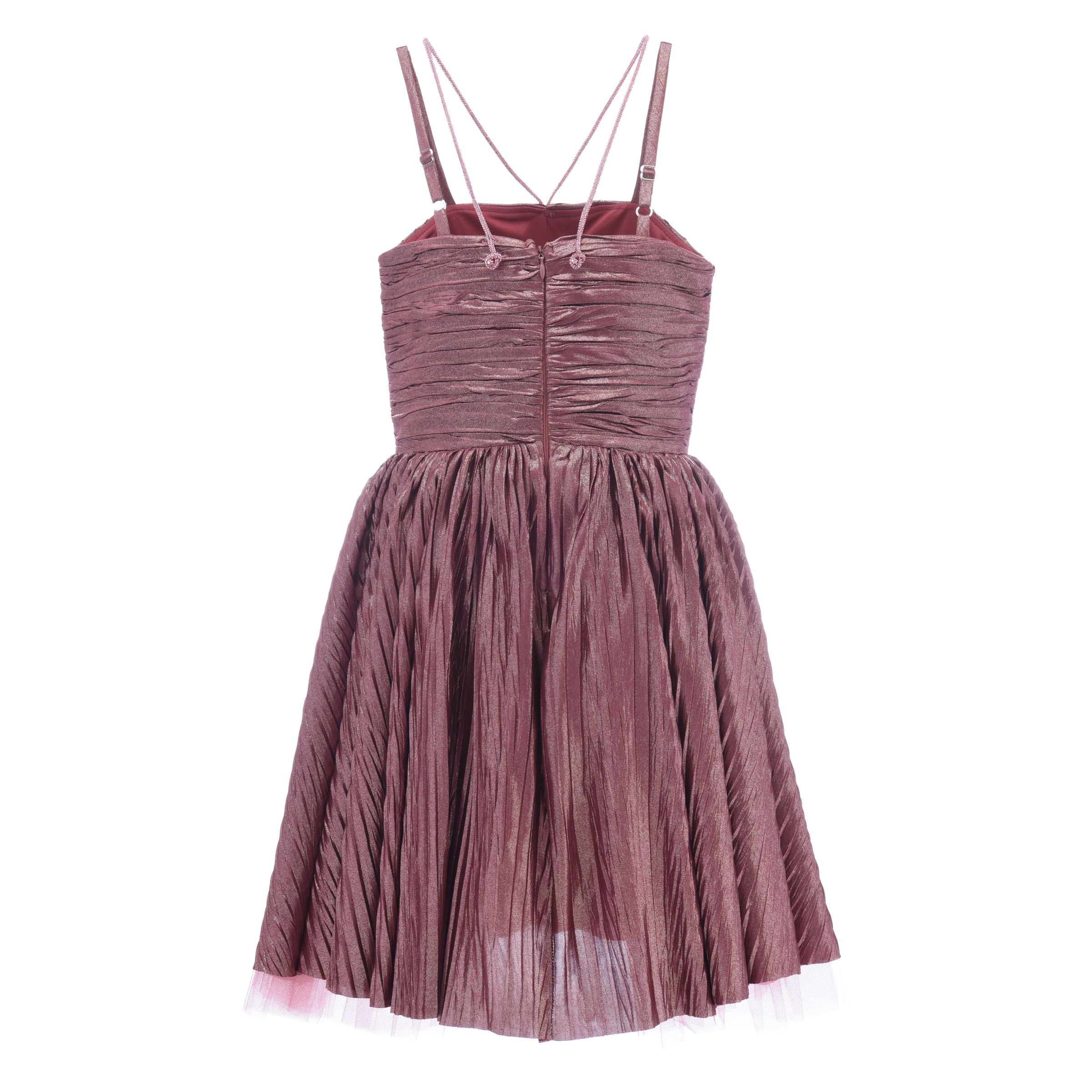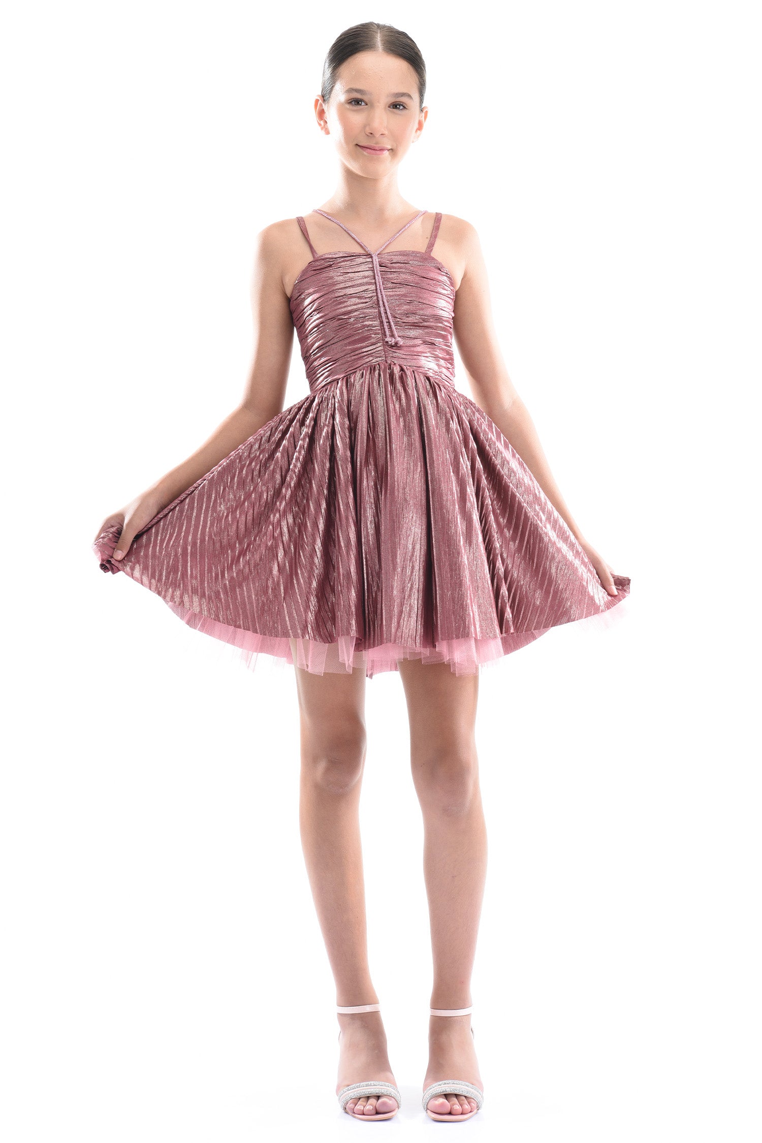 The Rose Gianotta Strapped Dress by Tulleen is a delightful addition to any teen girl’s wardrobe. Featuring a mauve pink hue with a subtle sheen, this dress radiates elegance with a playful twist. The layered design adds volume and movement, giving it a flirty, fresh look.