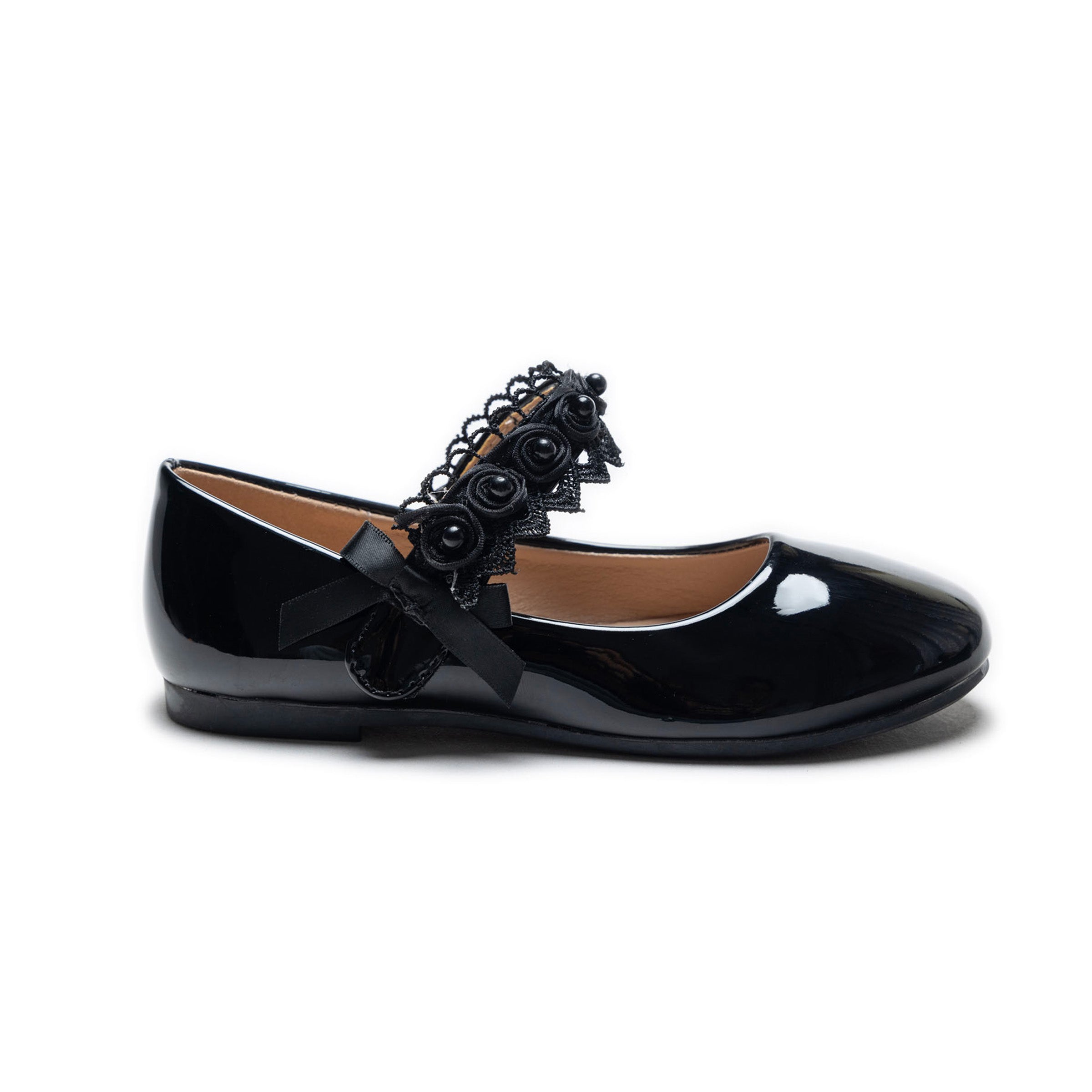 The Black Patent Rose Pearl Doily Flats by Tulleen are the ideal footwear for young girls who appreciate the balance of comfort and style. Whether it’s a birthday party, a family event, or a day out with friends, these flats bring a sophisticated yet playful touch to their wardrobe, making them a must-have piece for every little girl.
