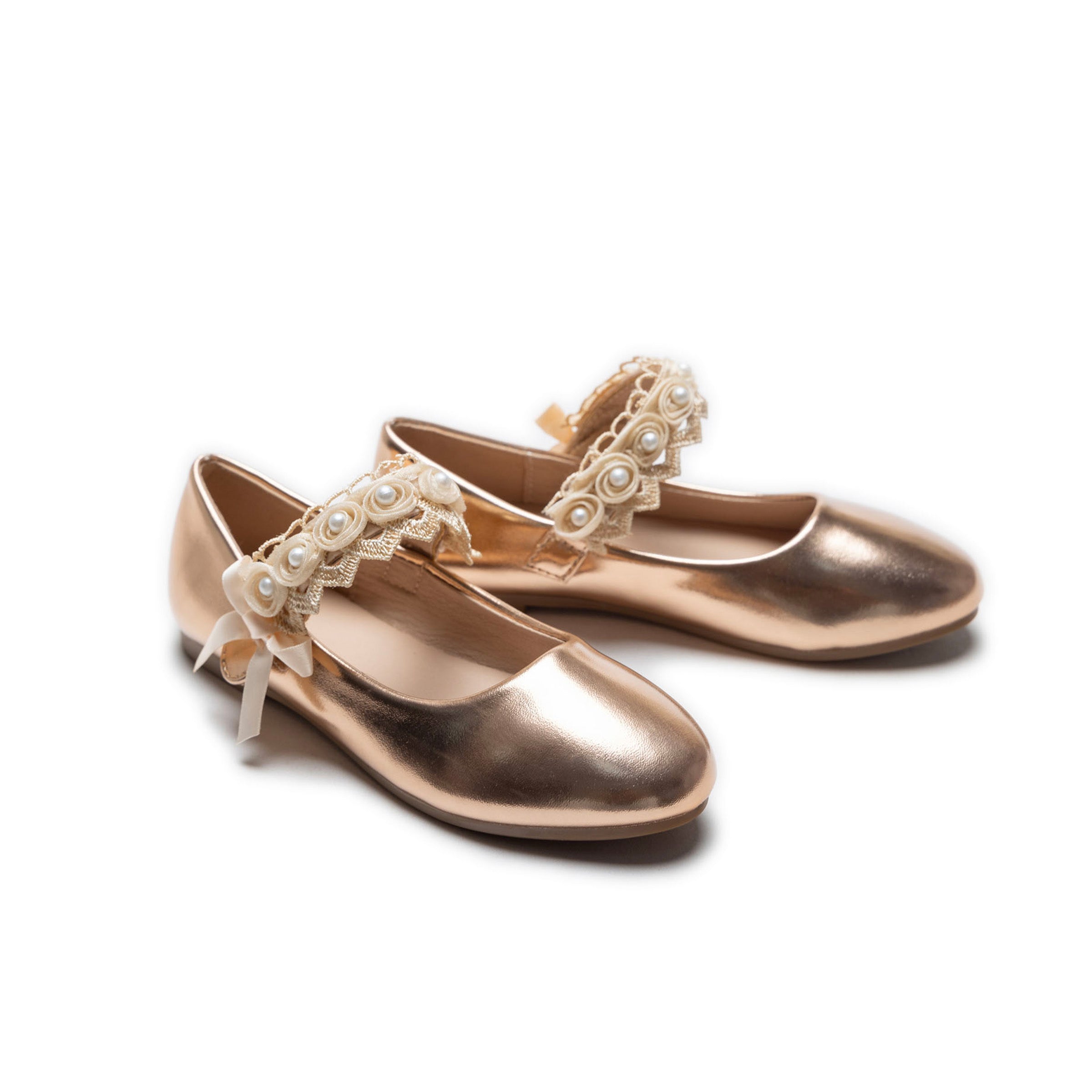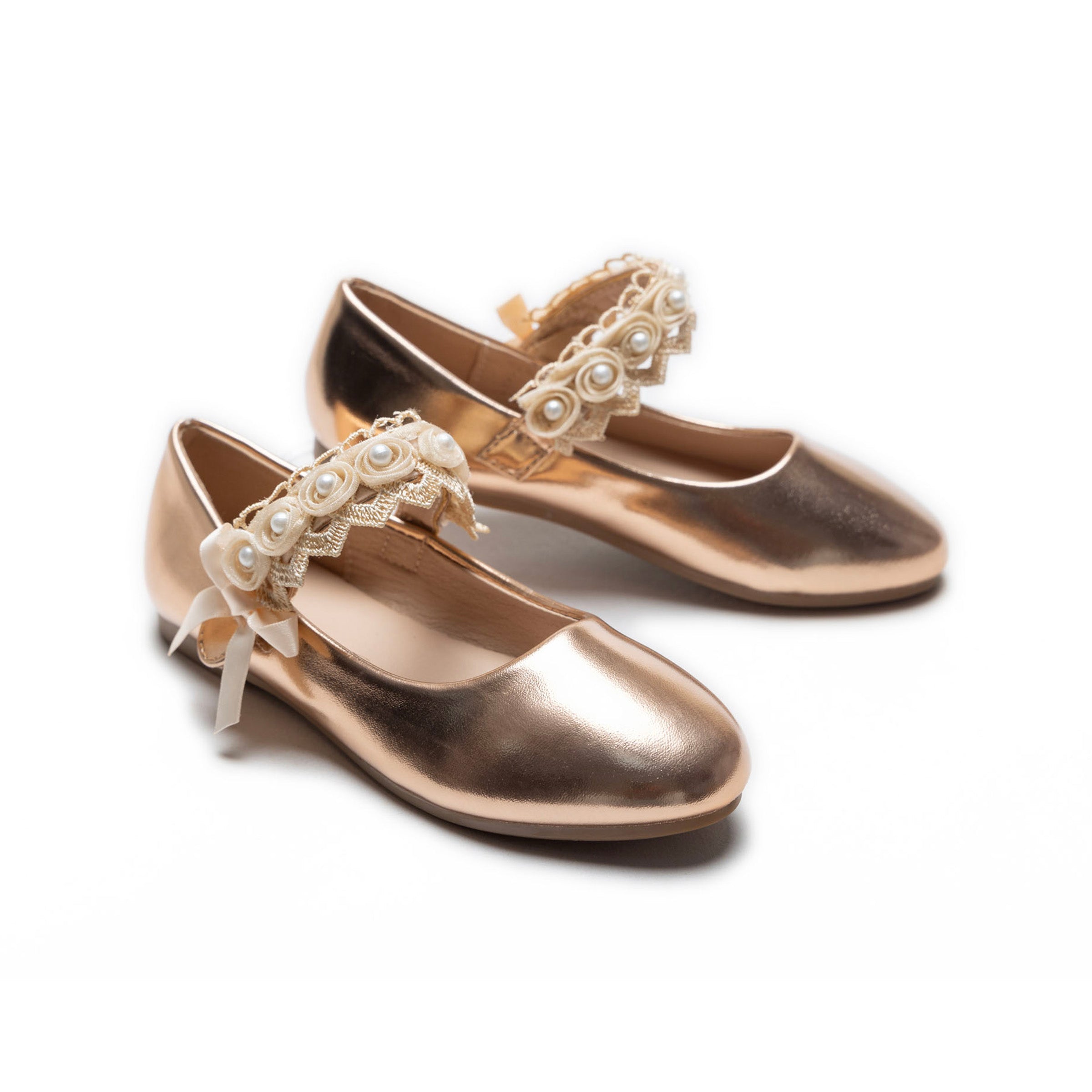 The Champagne Patent Rose Pearl Doily Flats by Tulleen are crafted for comfort and style, offering a chic look with every step. Perfect for parties, celebrations, or everyday wear, these flats add an elegant touch to any outfit, making them a must-have accessory for any young girl's wardrobe.