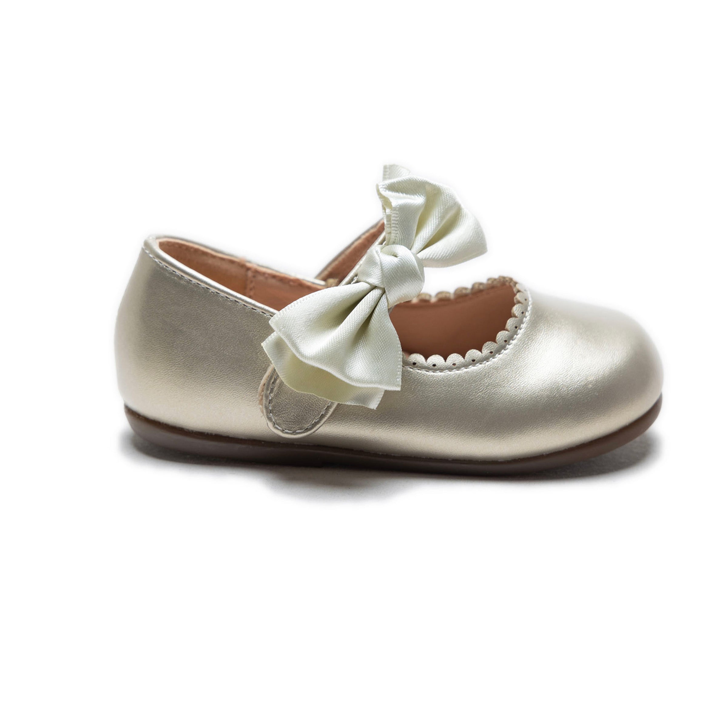 A charming cotton bow accent graces the front, enhancing the design with delicate femininity. The Elodie-styled doily opening adds intricate detail, creating a classic and polished look that makes these flats perfect for special occasions or everyday wear.