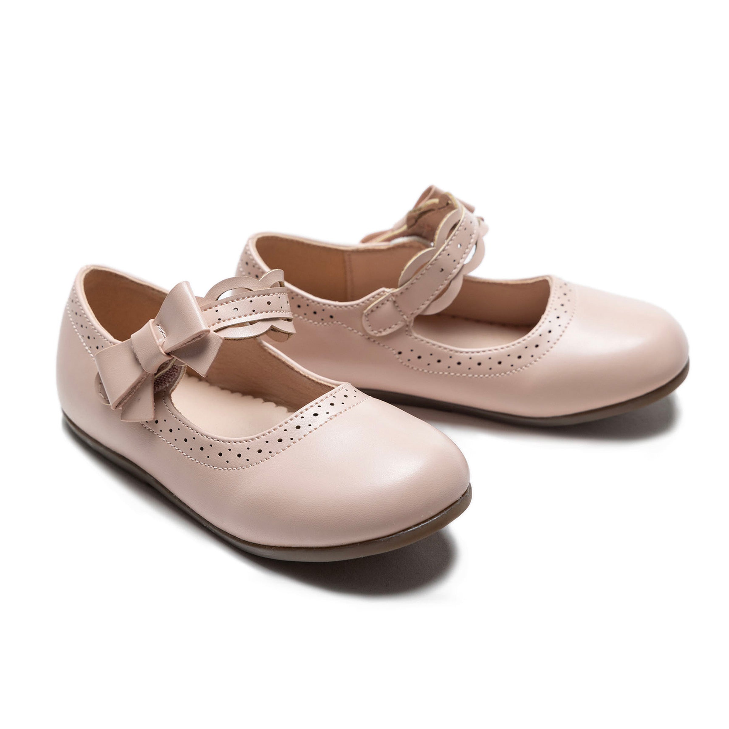 Introducing the Pink Ribbon Banded Flats by Tulleen, a perfect blend of elegance and charm designed for little girls who love a stylish touch. Crafted from high-quality leather, these flats offer a refined look with a soft and smooth finish, making them a versatile choice for any occasion.